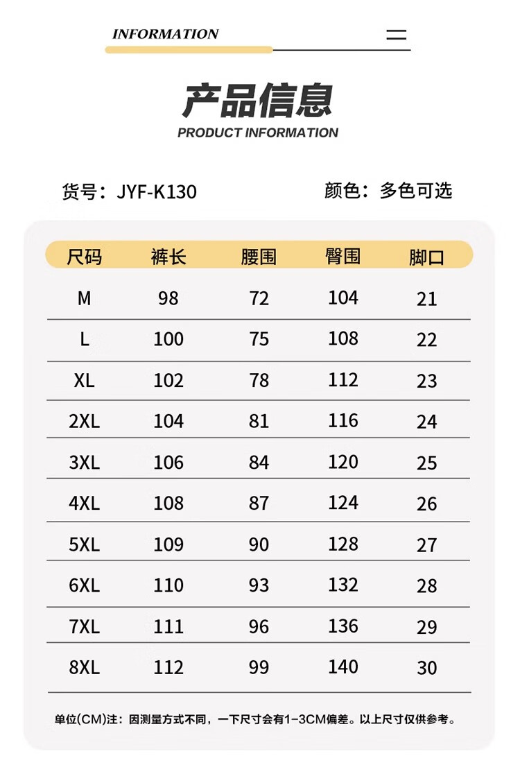 Outseam (cm) 99 cm 101.5 cm 104 cm 106.5 cm 109 cm