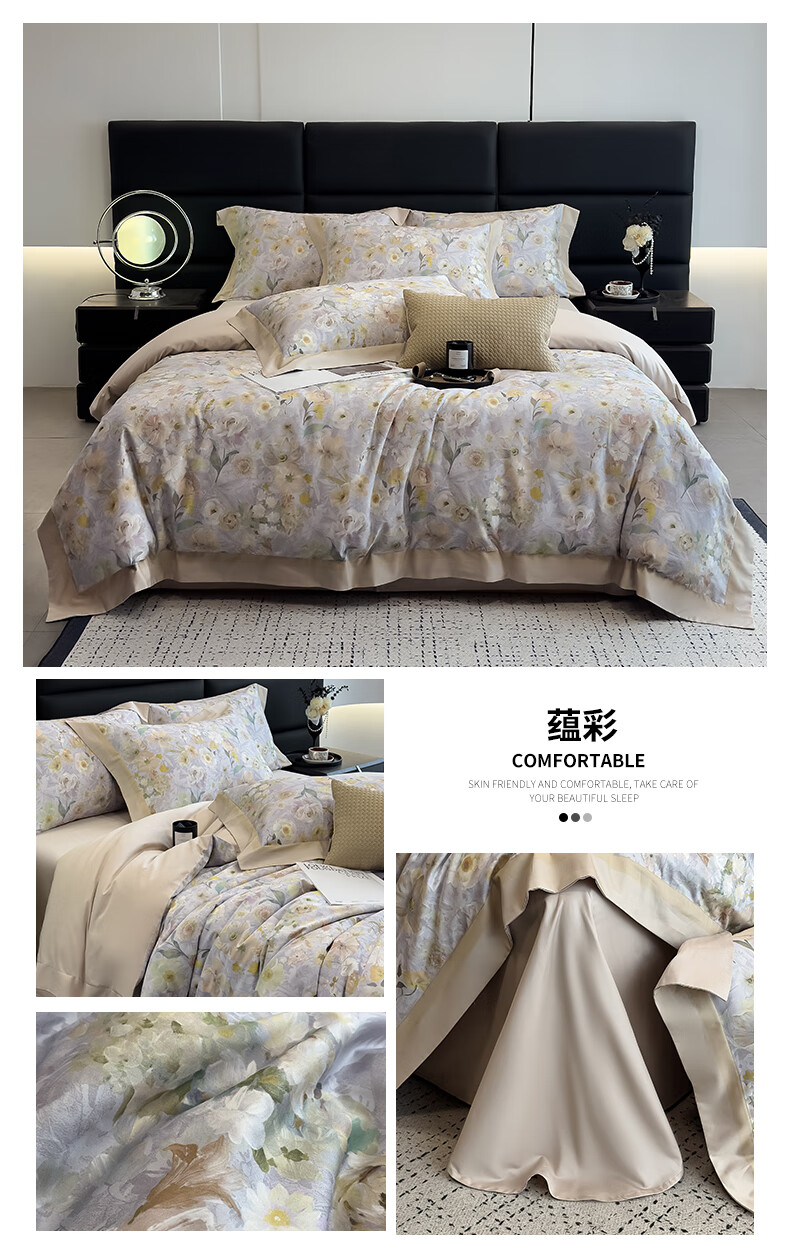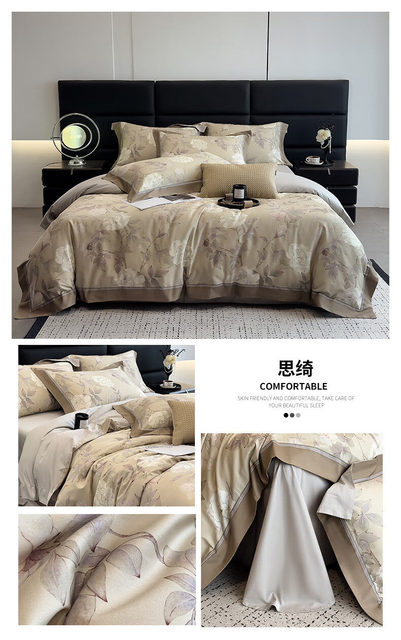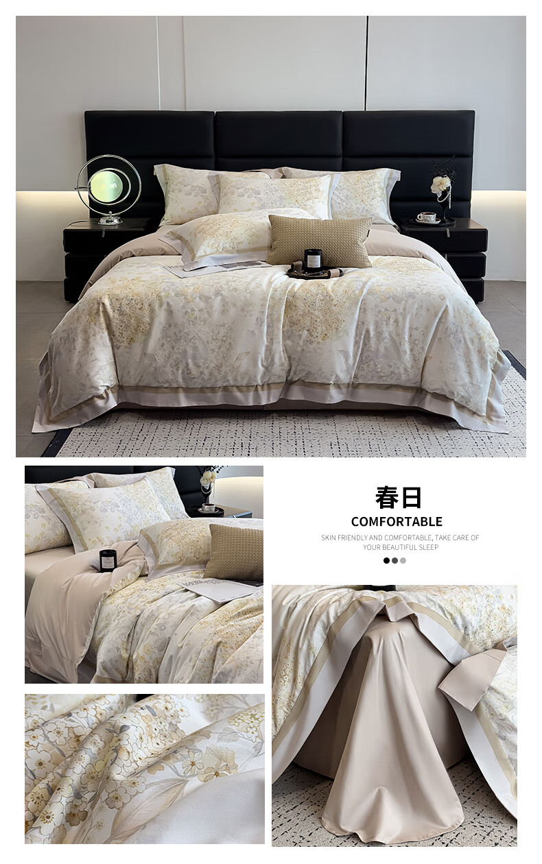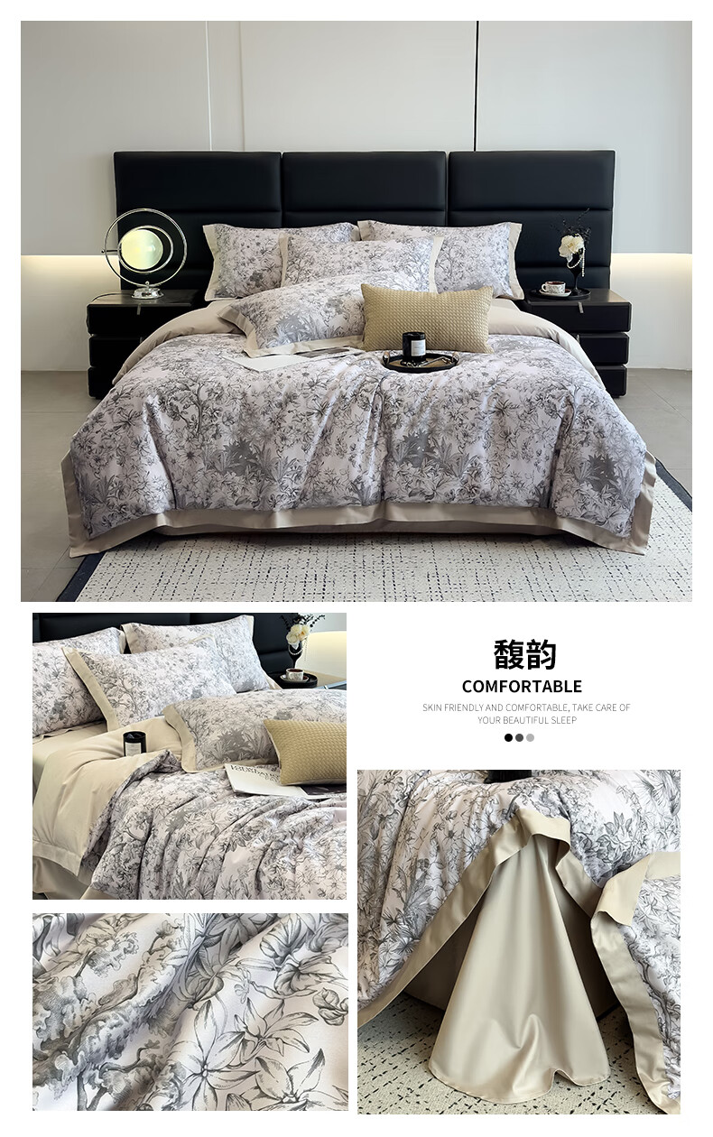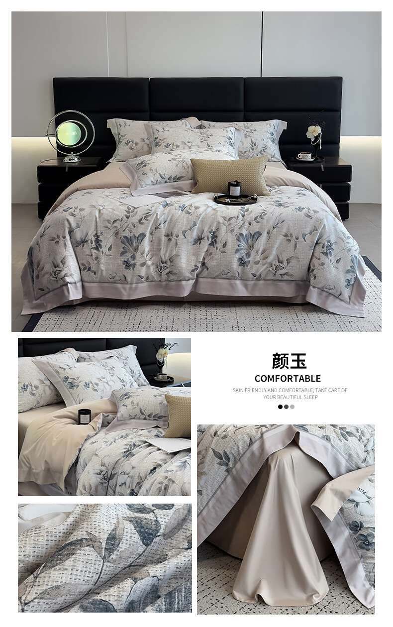 Hengyuan Hongxiang high-end 100% Xinjiang cotton satin four-piece set 200 count long-staple pure cotton jacquard naked sleeping sheet quilt cover Spring 100% cotton bed sheet style 1.8m four-piece set 100% cotton