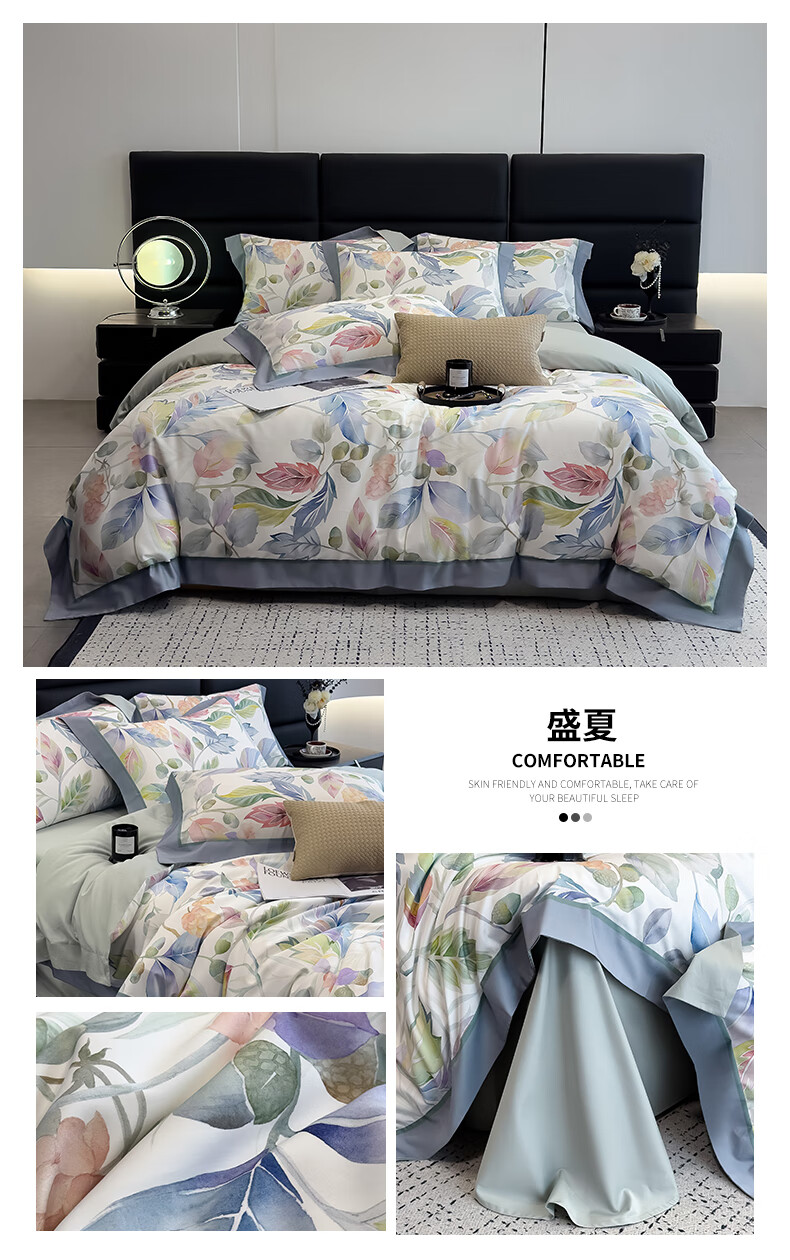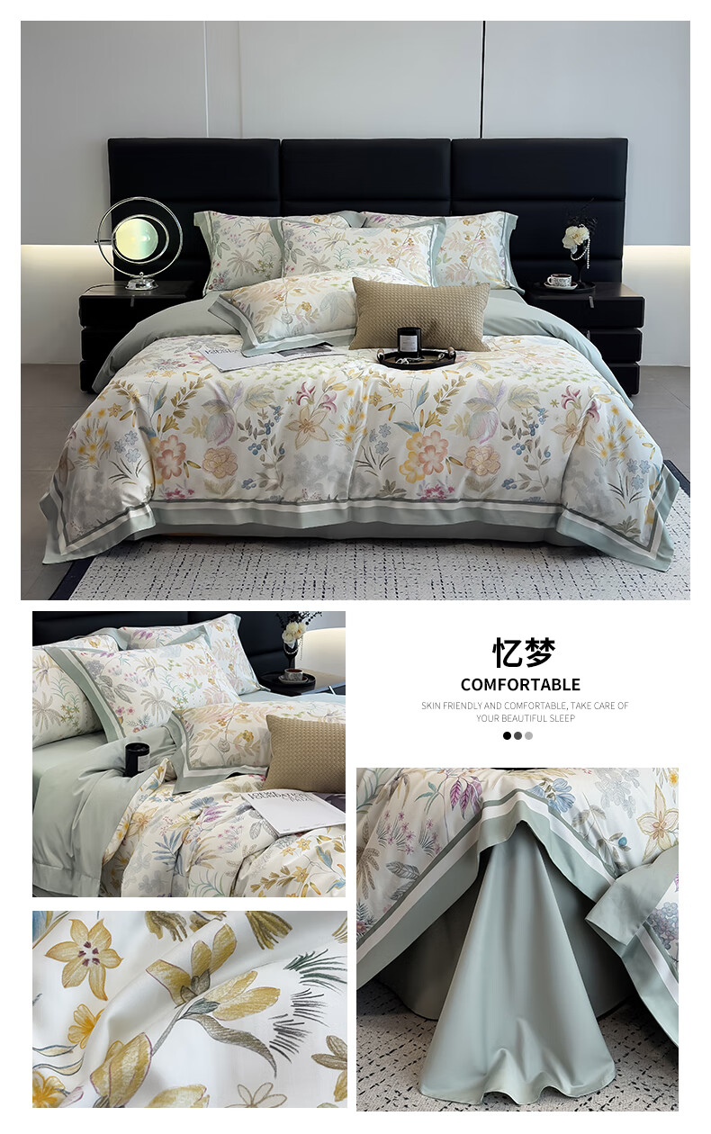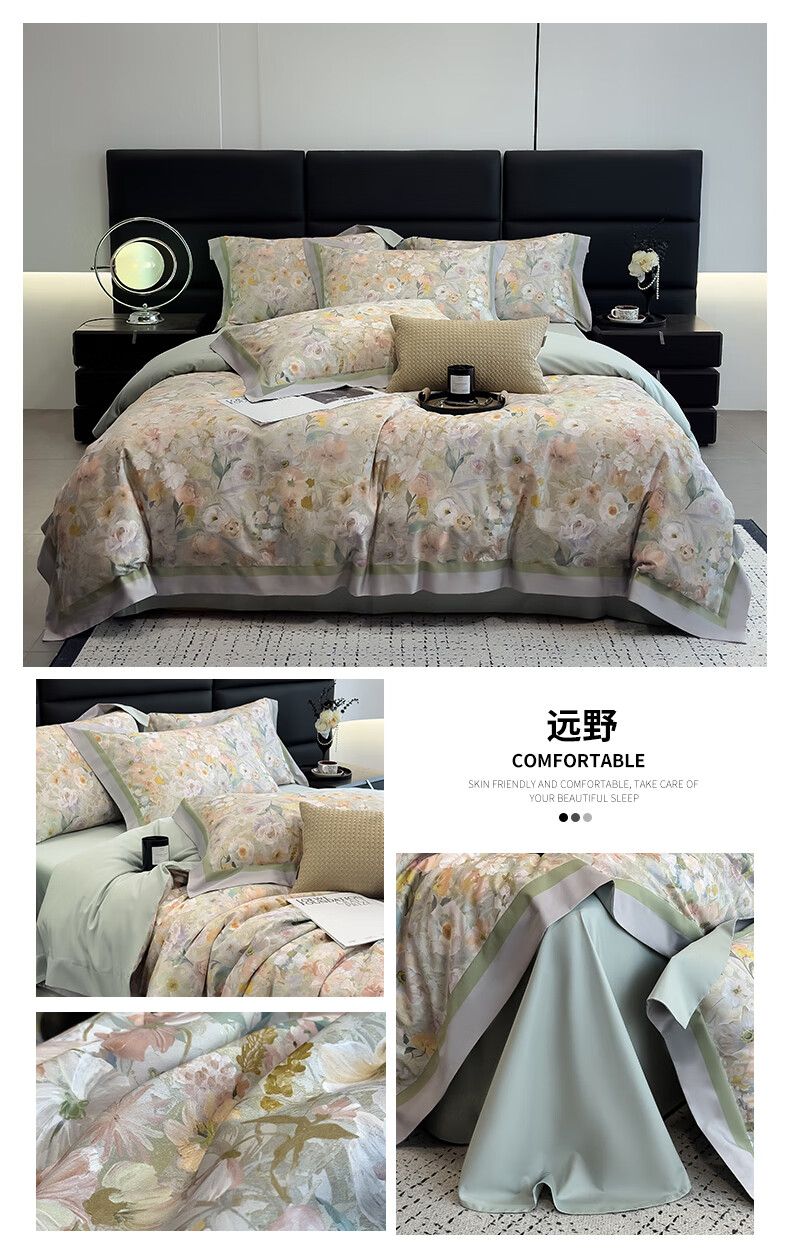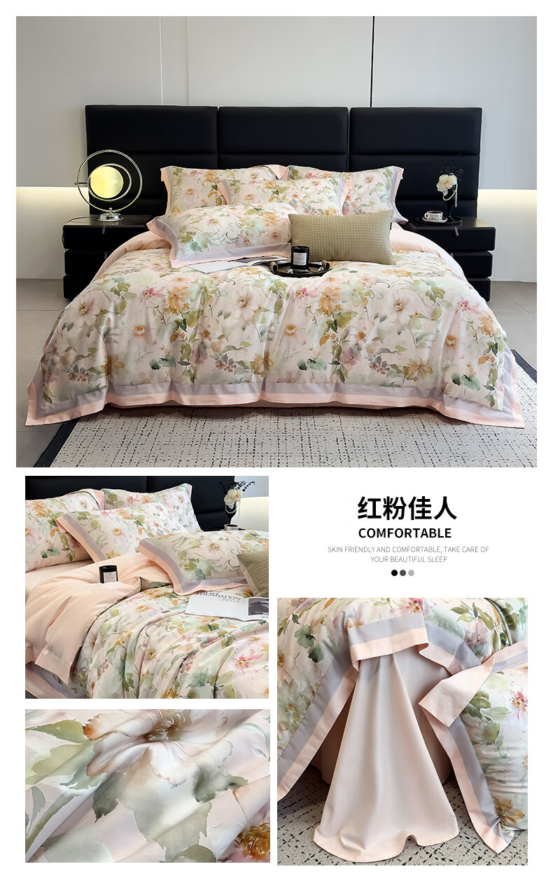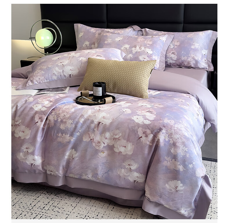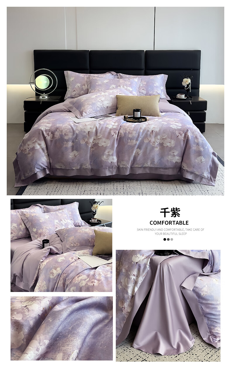 Hengyuan Hongxiang high-end 100% Xinjiang cotton satin four-piece set 200 count long-staple pure cotton jacquard naked sleeping sheet quilt cover Spring 100% cotton bed sheet style 1.8m four-piece set 100% cotton