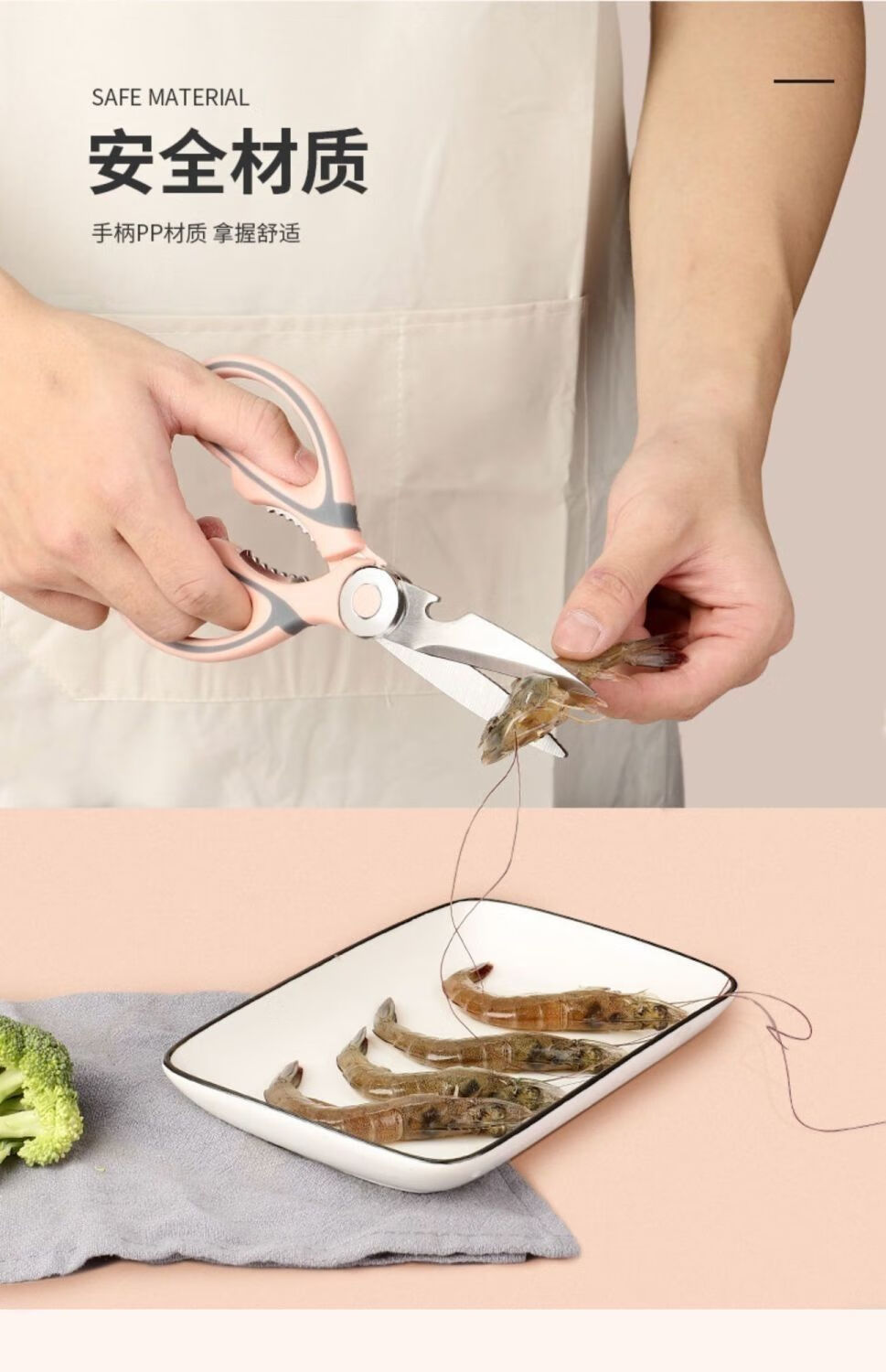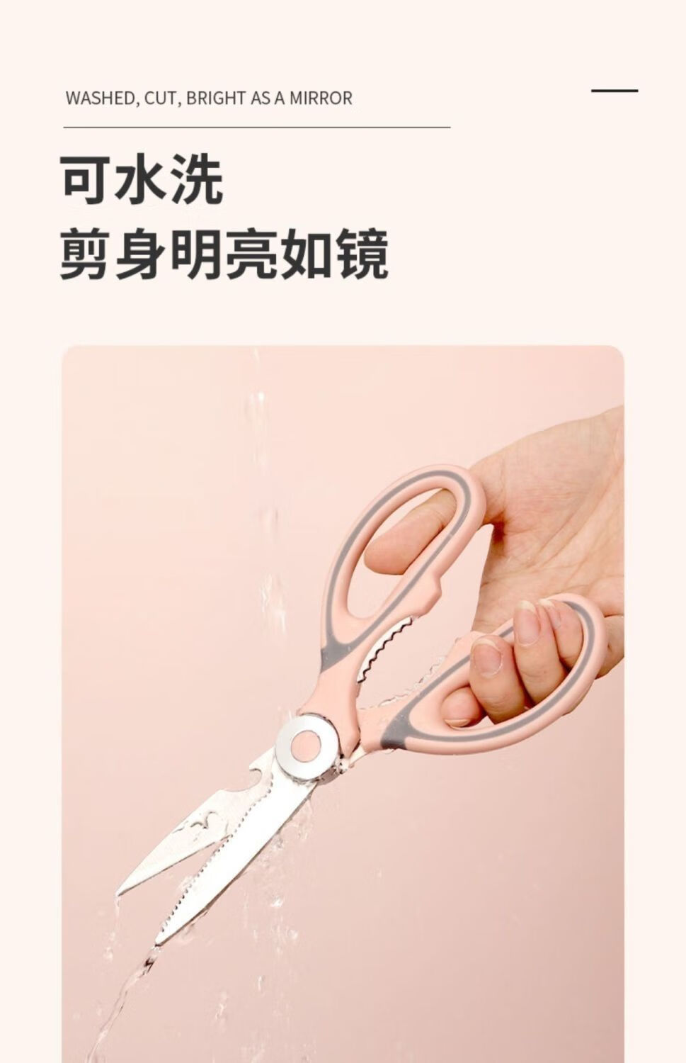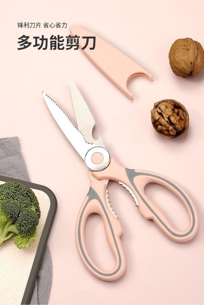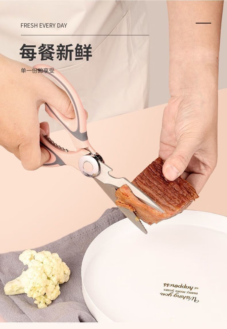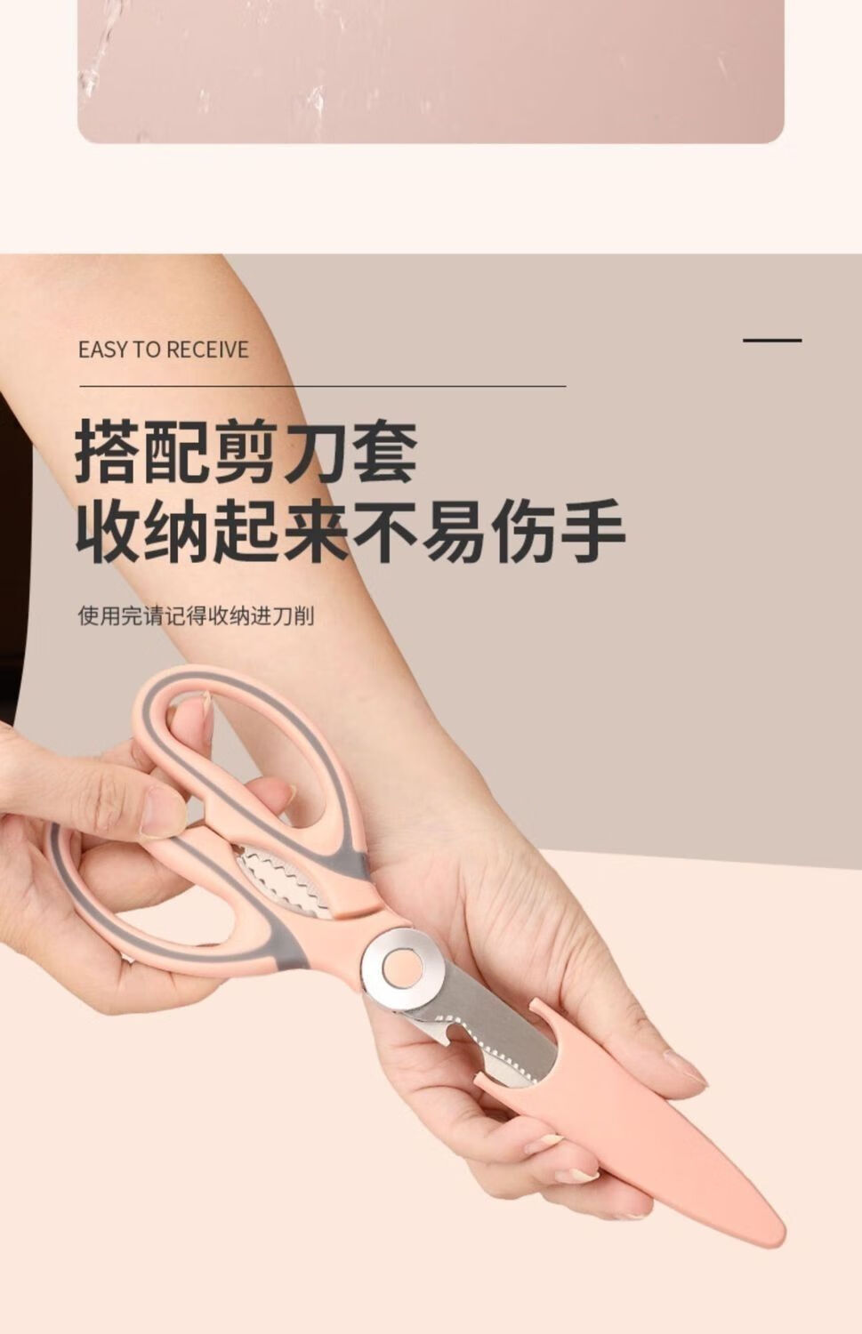 多功能锋利家用厨房剪刀强力食物鸡骨熊猫不锈钢多用剪肉剪子专用 【加厚】粉色厨用剪+剪鞘