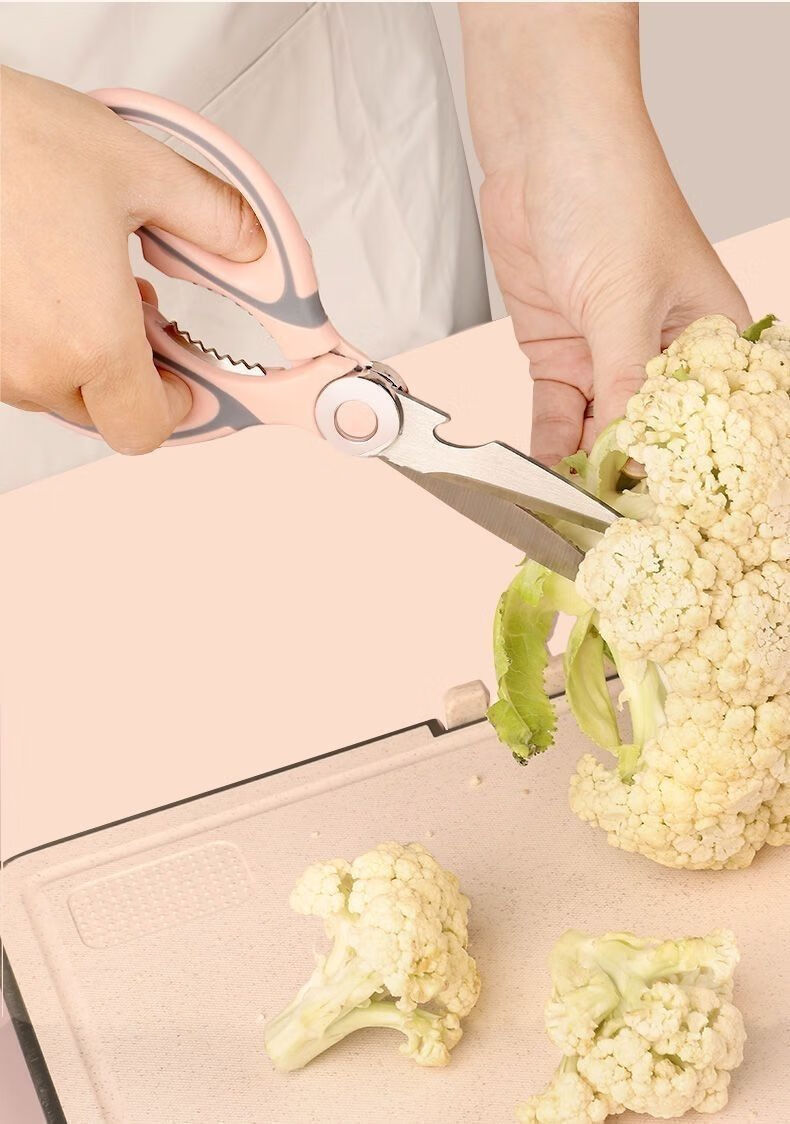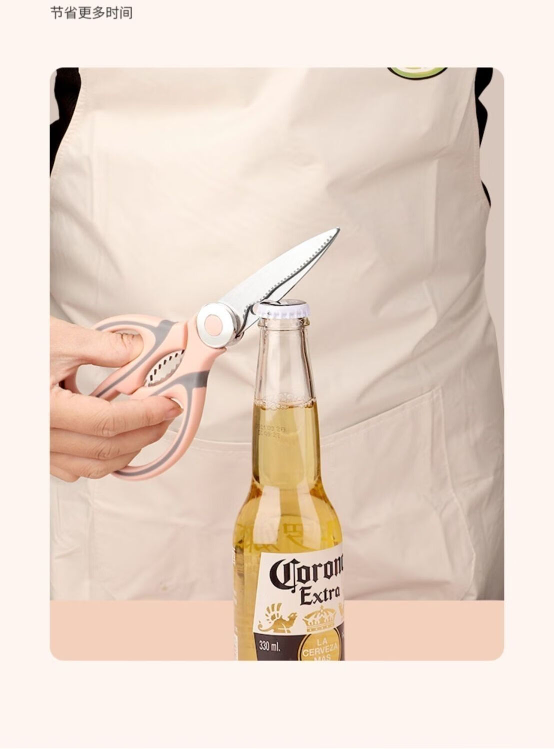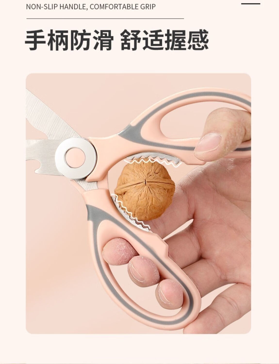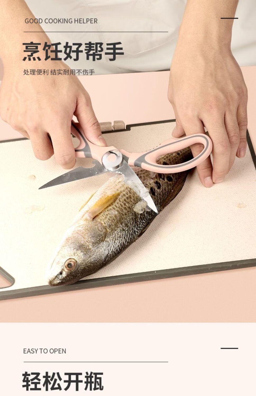 多功能锋利家用厨房剪刀强力食物鸡骨熊猫不锈钢多用剪肉剪子专用 【加厚】粉色厨用剪+剪鞘