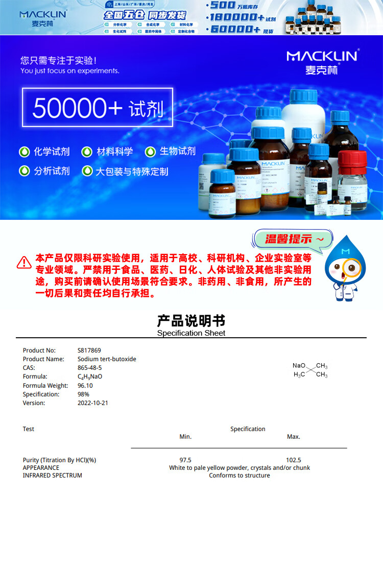 Macklin sodium tert-butoxide CAS 865-48-5 S817869-10kg