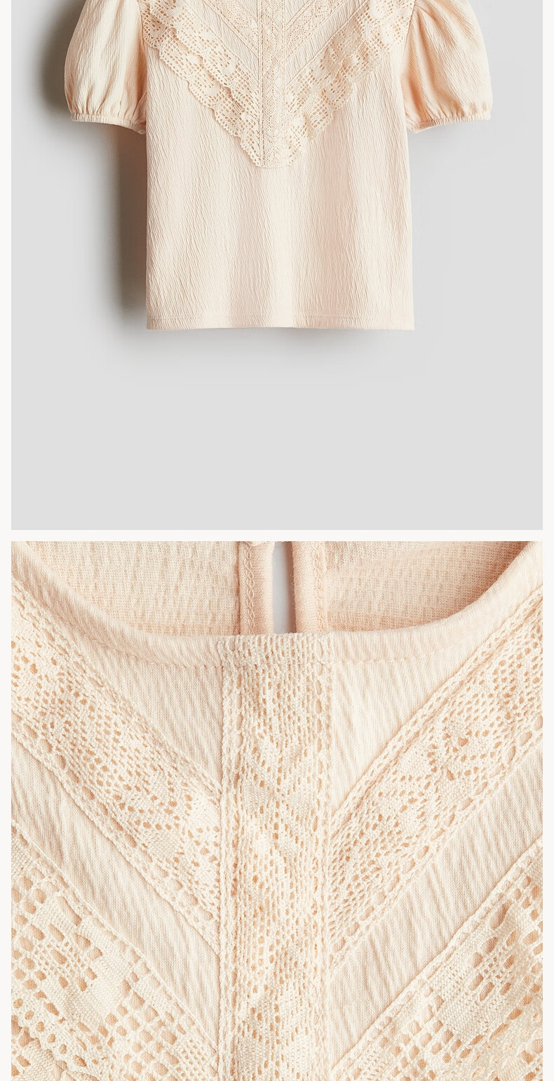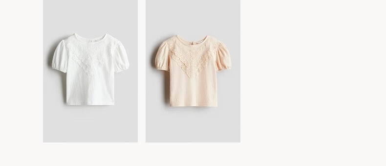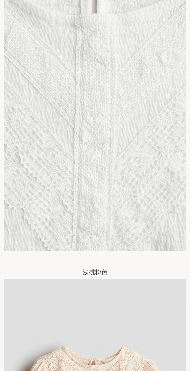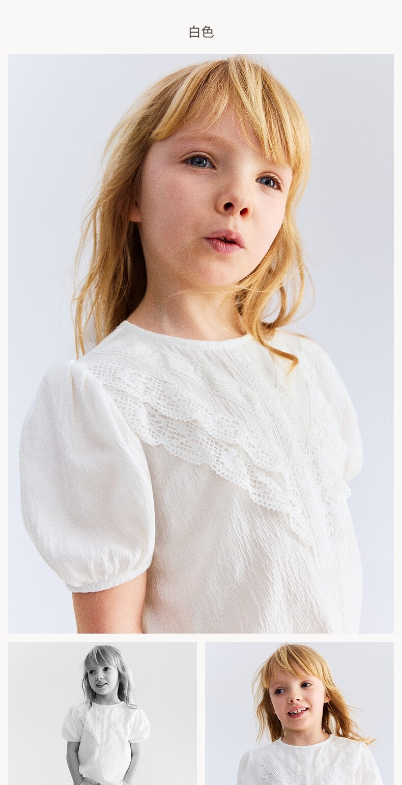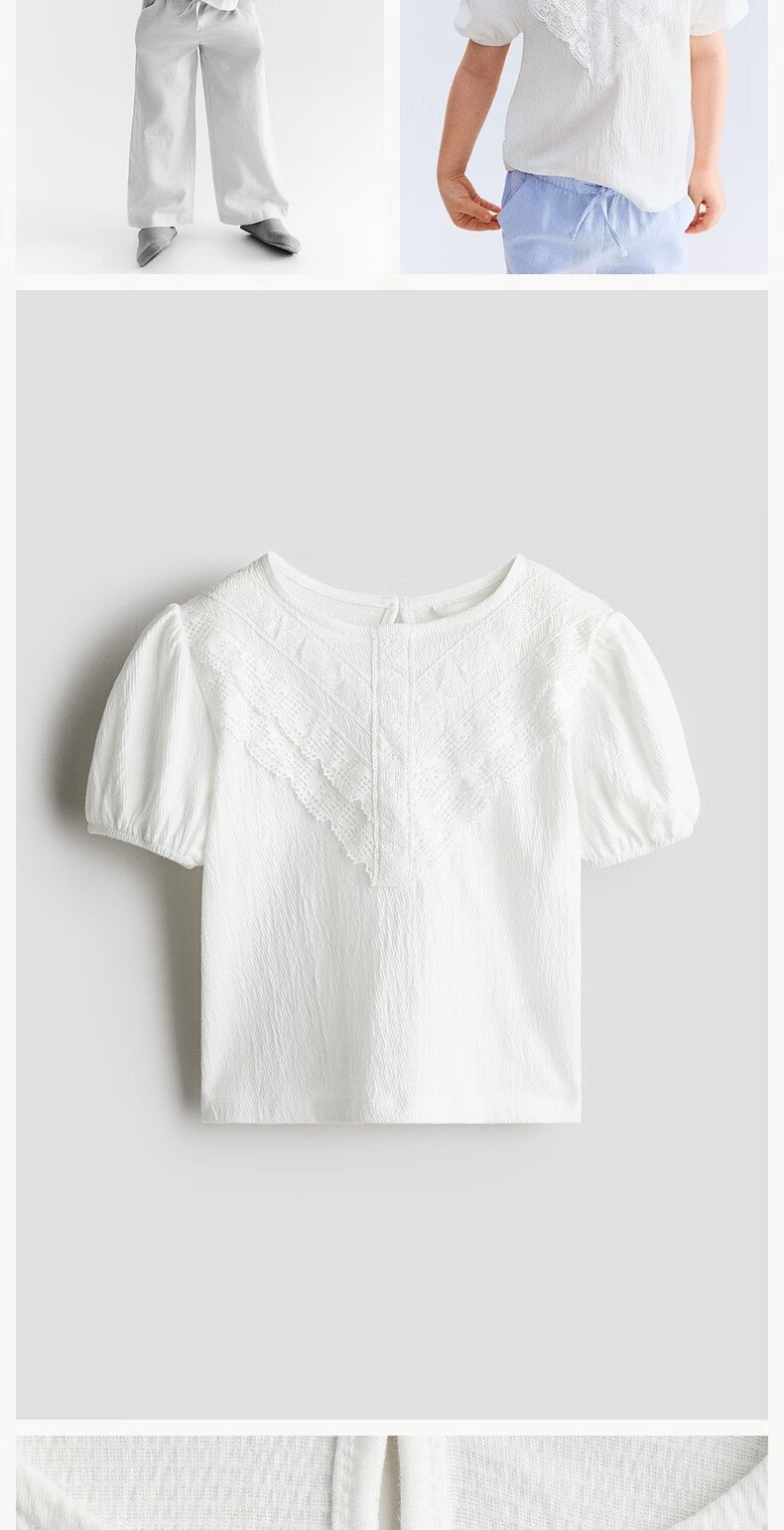 H&M children's clothing children's girls' shirt spring texture strap lace puff short-sleeved top 1286188 white 110 110/56