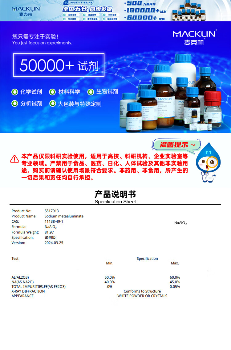 Macklin sodium metaaluminate CAS 11138-49-1 S817913-500g