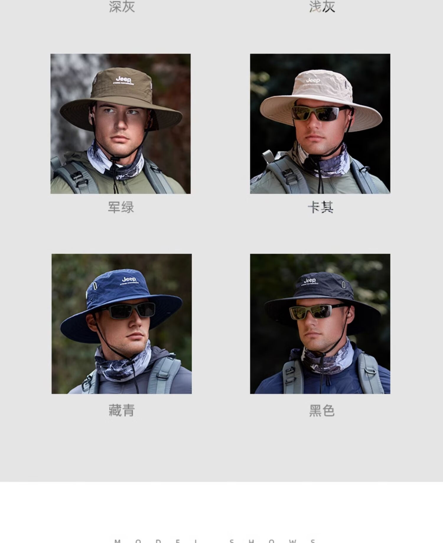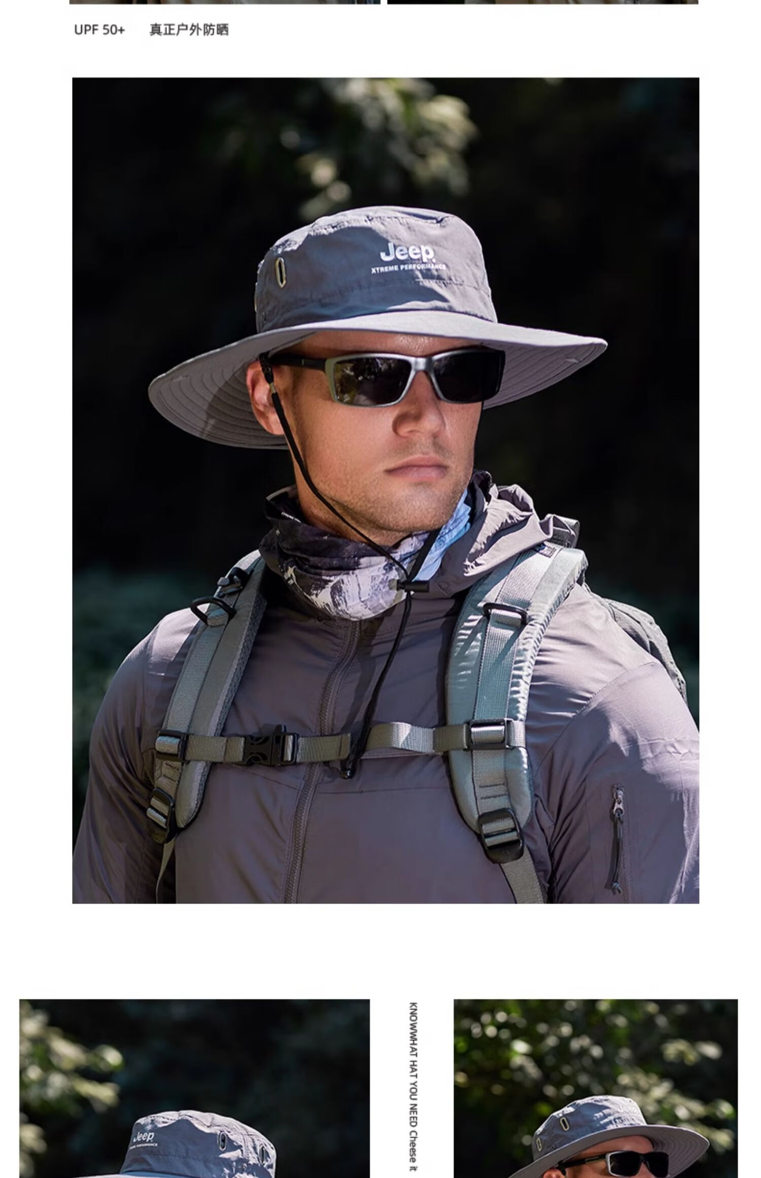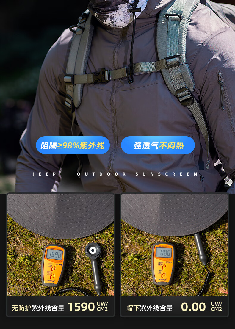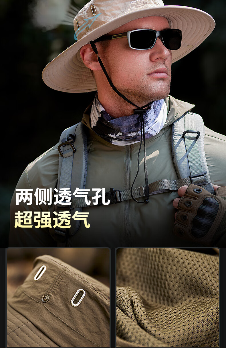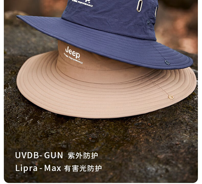 JEEP Jeep Hat Men's Summer Fisherman Hat Large Brim Breathable Mountaineering Outdoor Cycling Fishing Sun Protection Hat Far Mountain Gray-Set