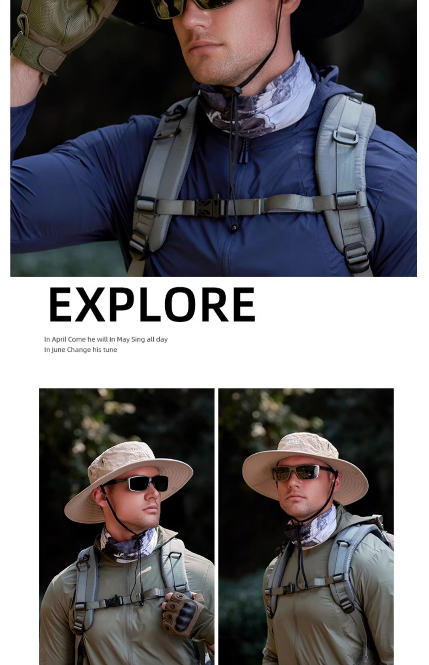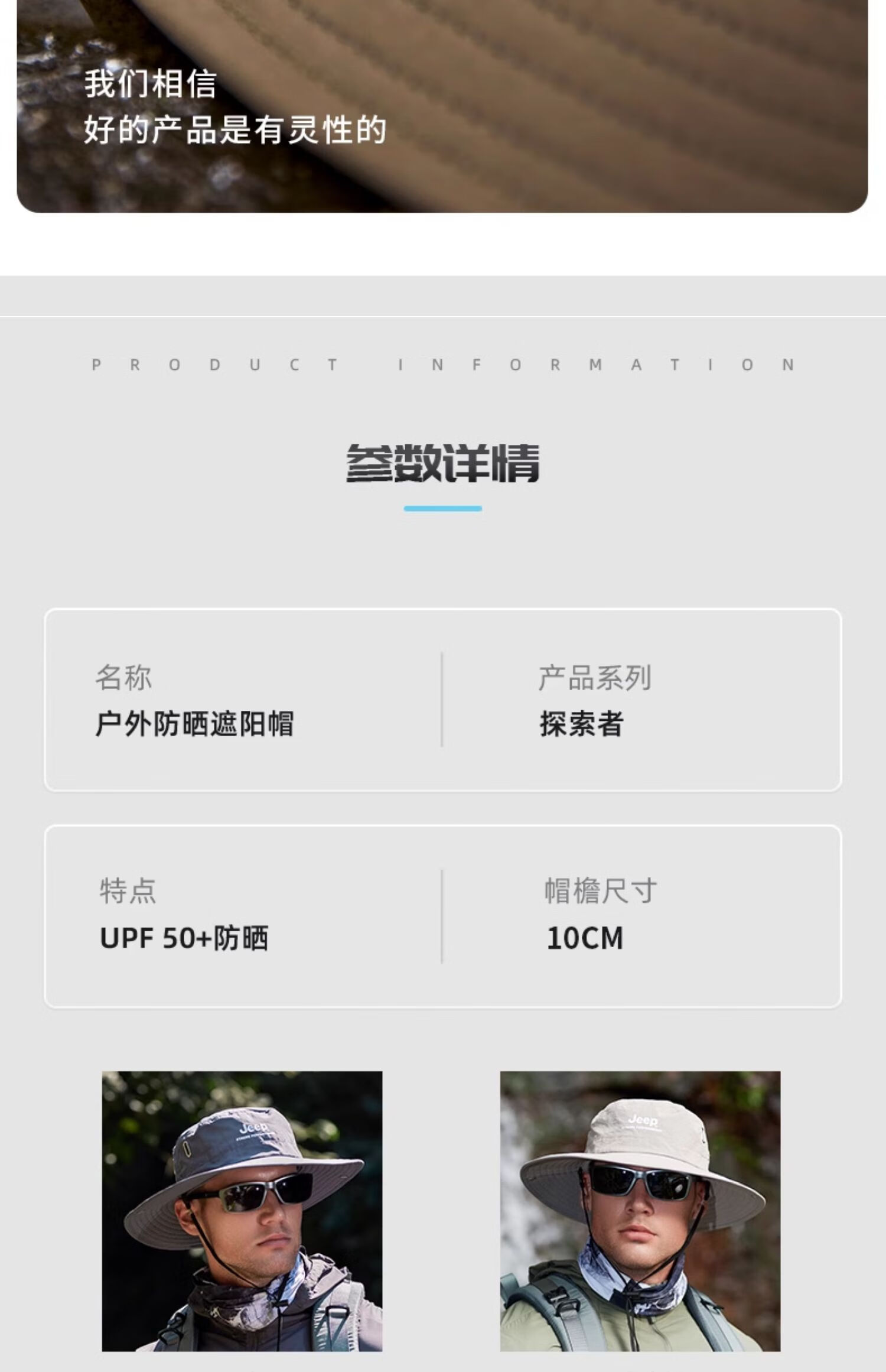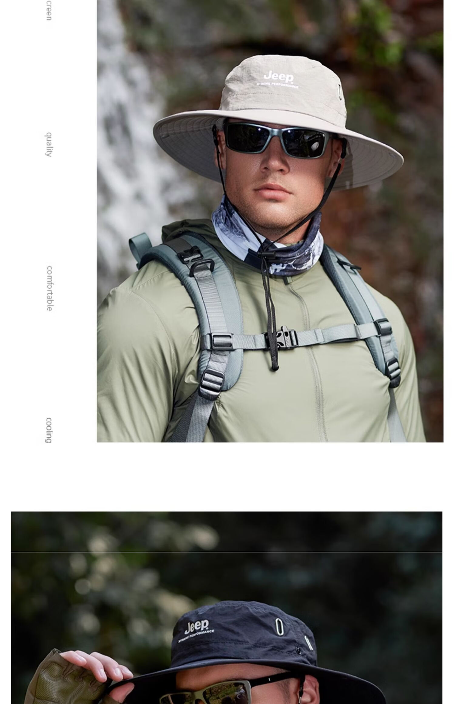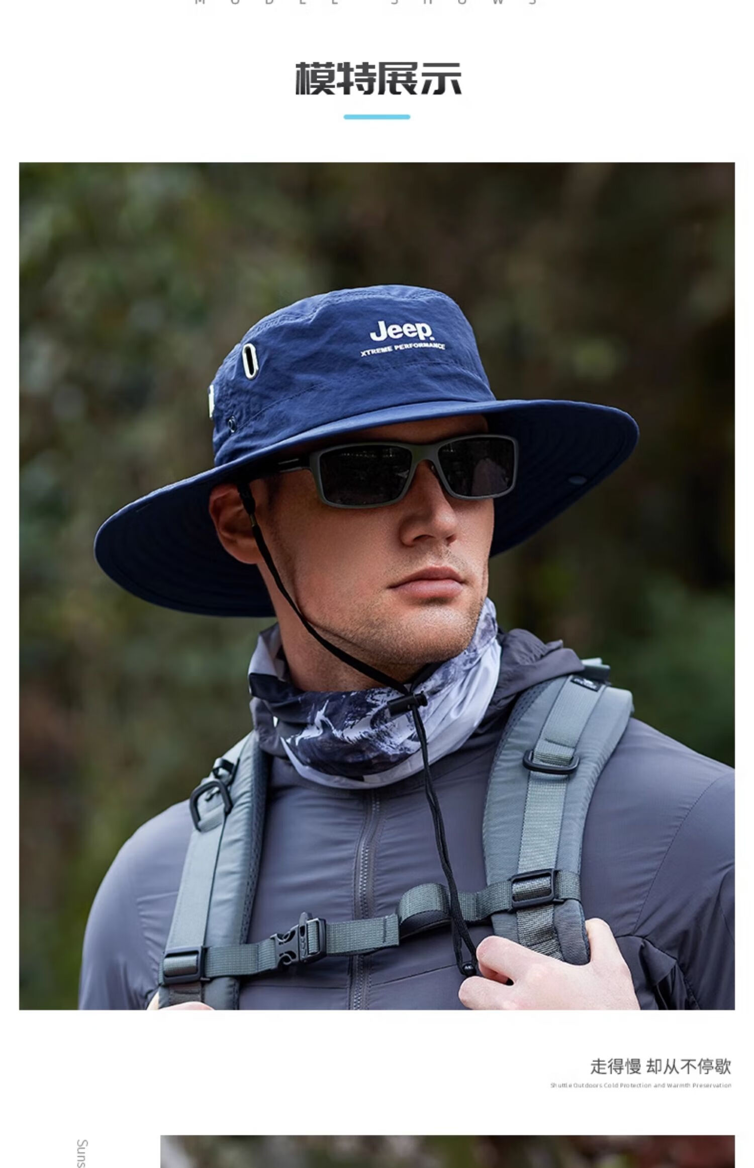 JEEP Jeep Hat Men's Summer Fisherman Hat Large Brim Breathable Mountaineering Outdoor Cycling Fishing Sun Protection Hat Far Mountain Gray-Set