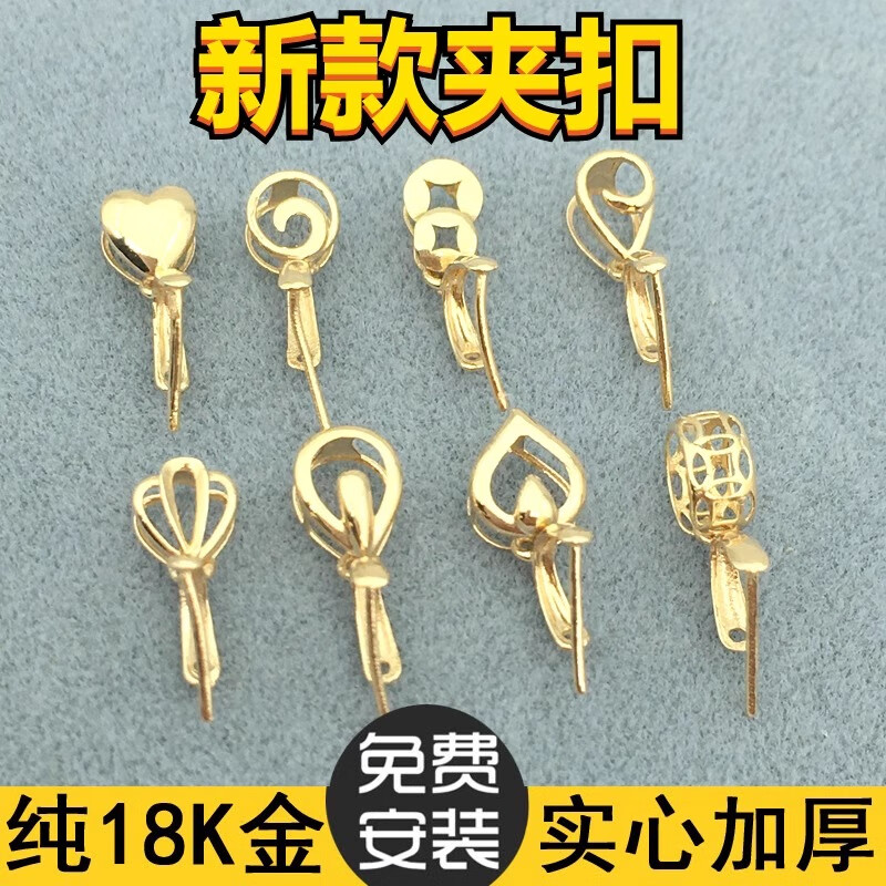 Pure 18K gold buckle head thickened universal clip melon seed buckle jade jade inlaid K gold pendant buckle necklace pendant for women 18K gold (full gold) No. 1 single-minded