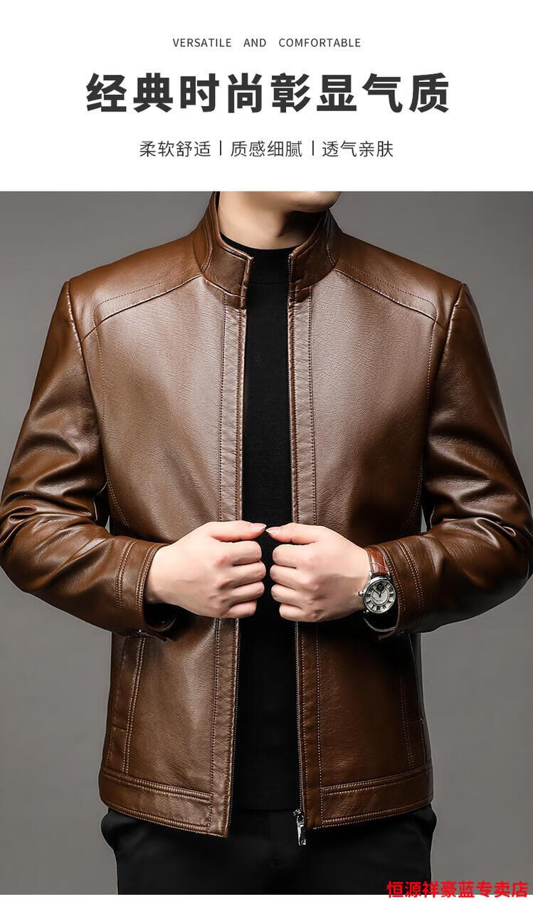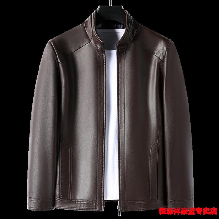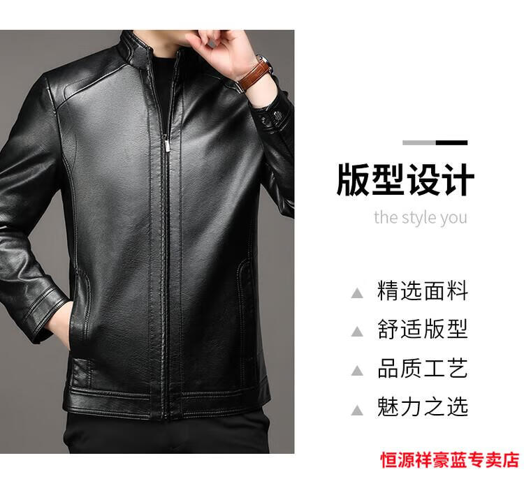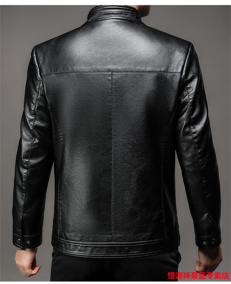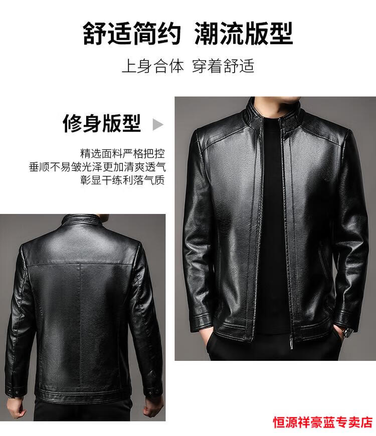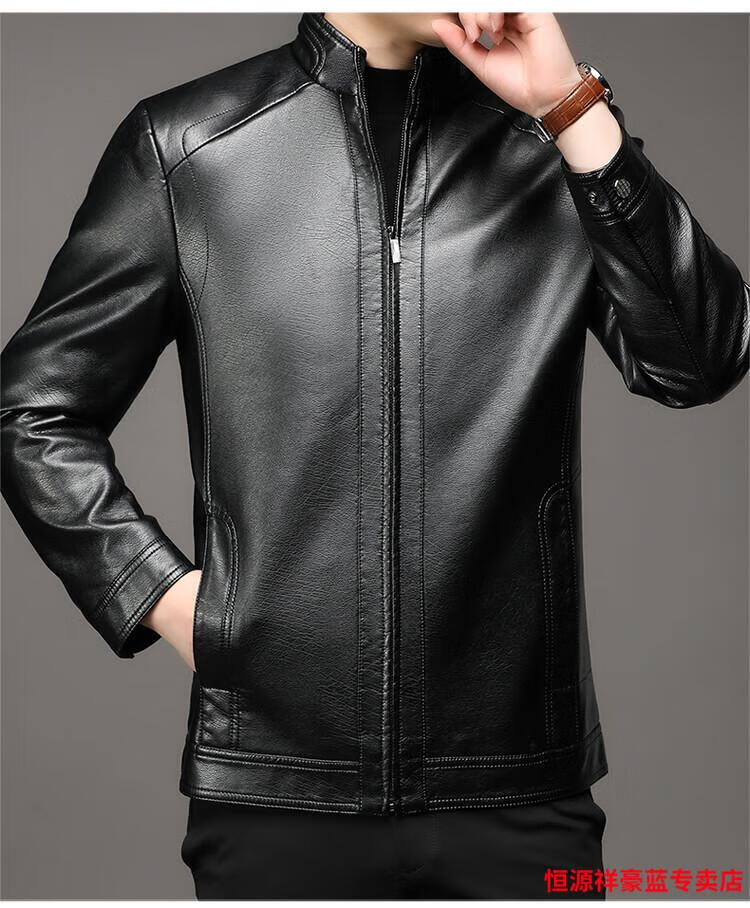 Hengyuanxiang simulated leather soft leather jacket for men spring and autumn pu leather jacket for middle-aged and elderly men motorcycle casual leather jacket black M 170