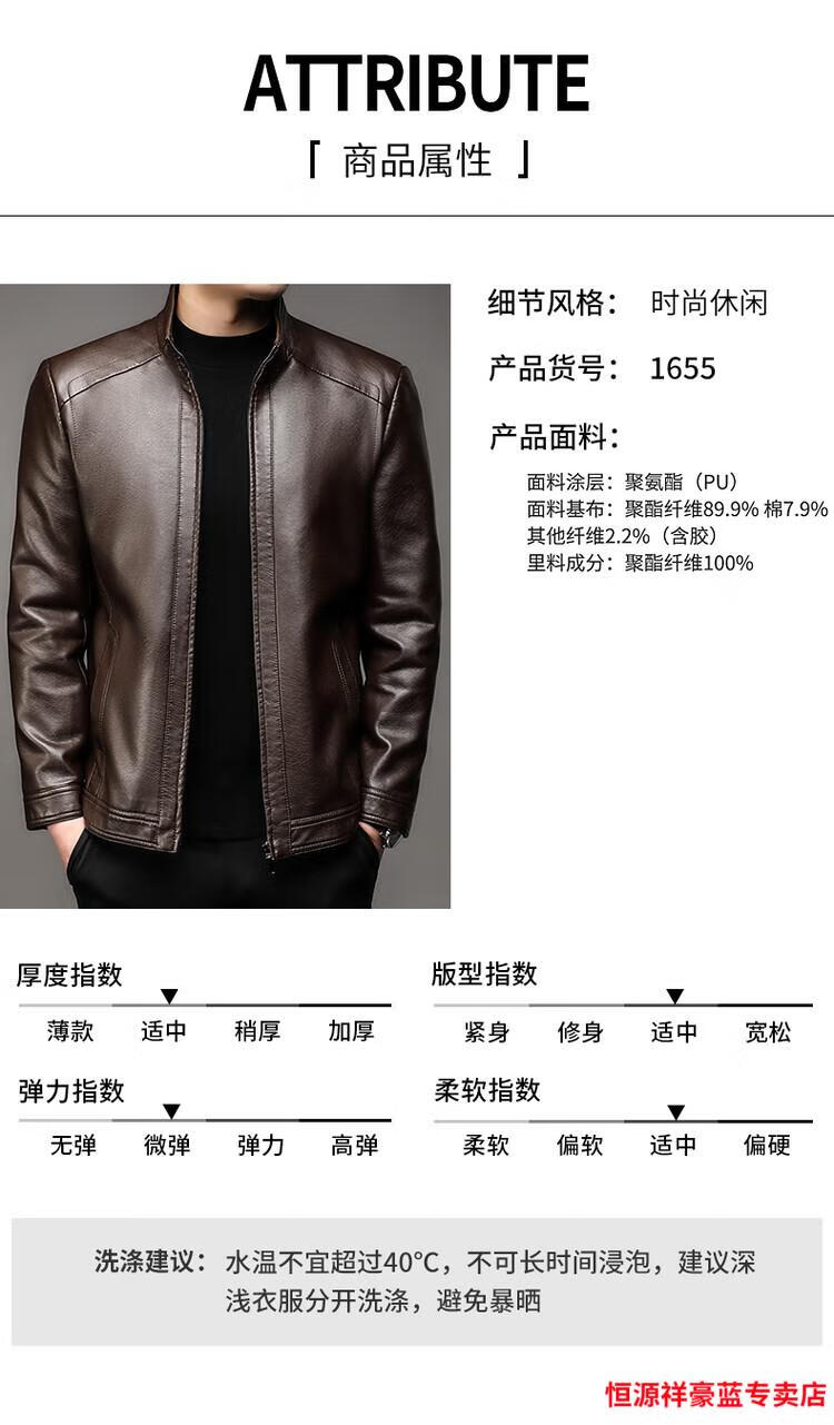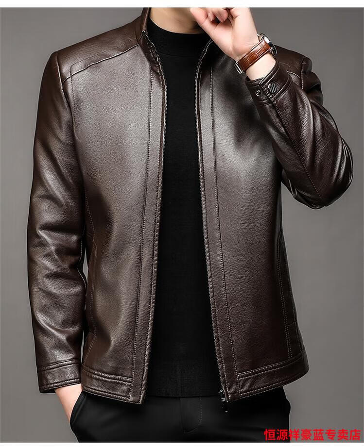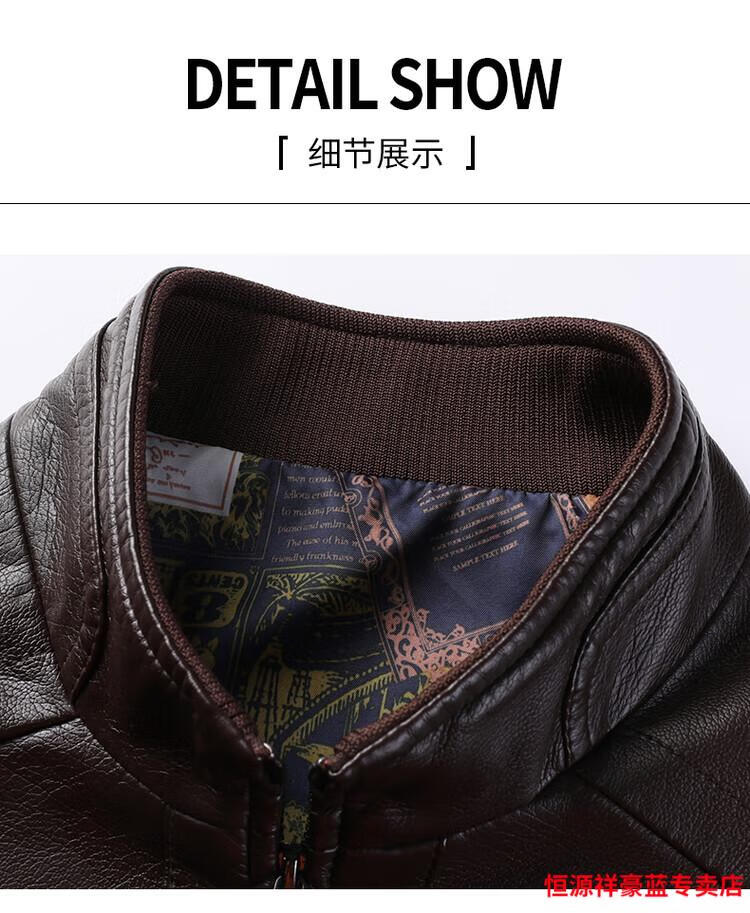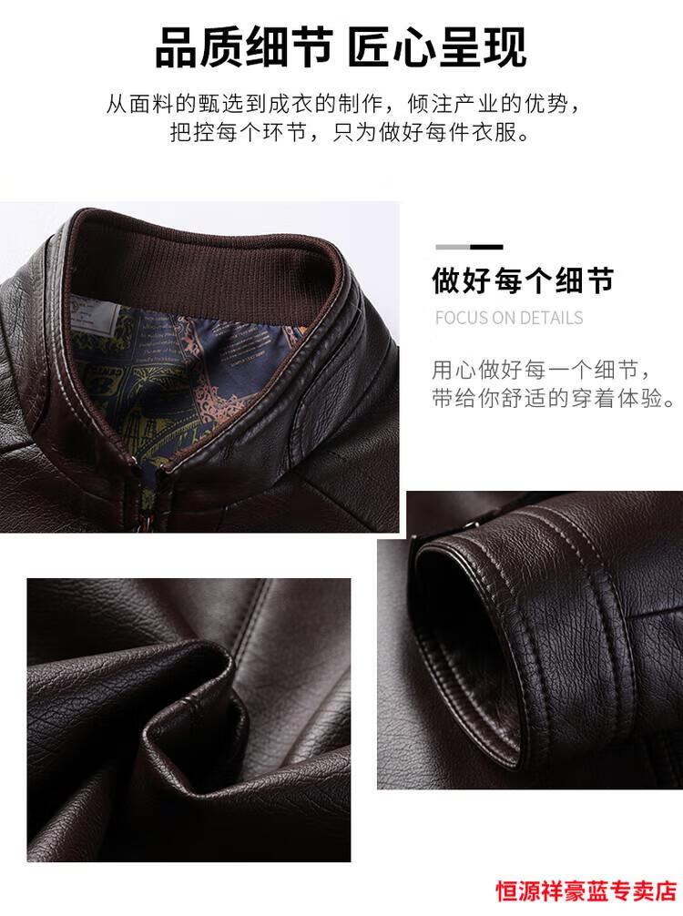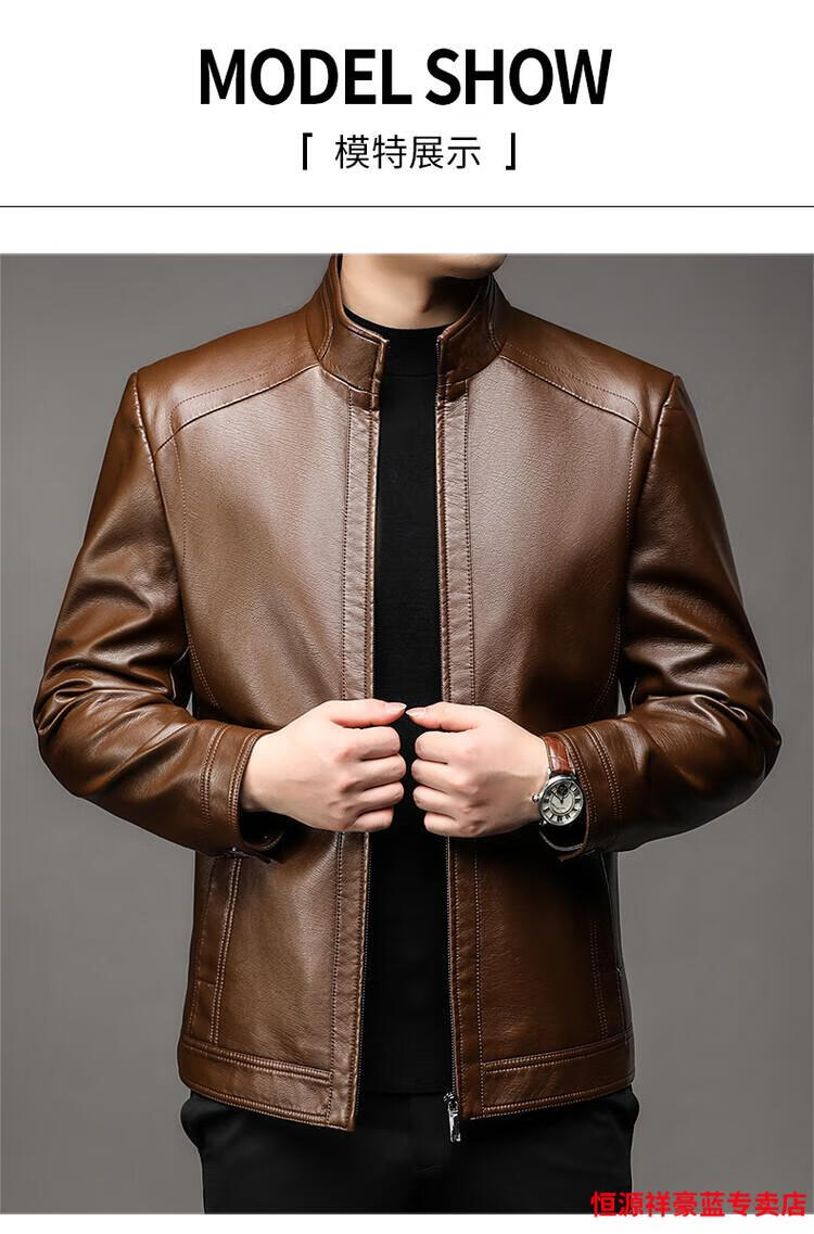 Hengyuanxiang simulated leather soft leather jacket for men spring and autumn pu leather jacket for middle-aged and elderly men motorcycle casual leather jacket black M 170