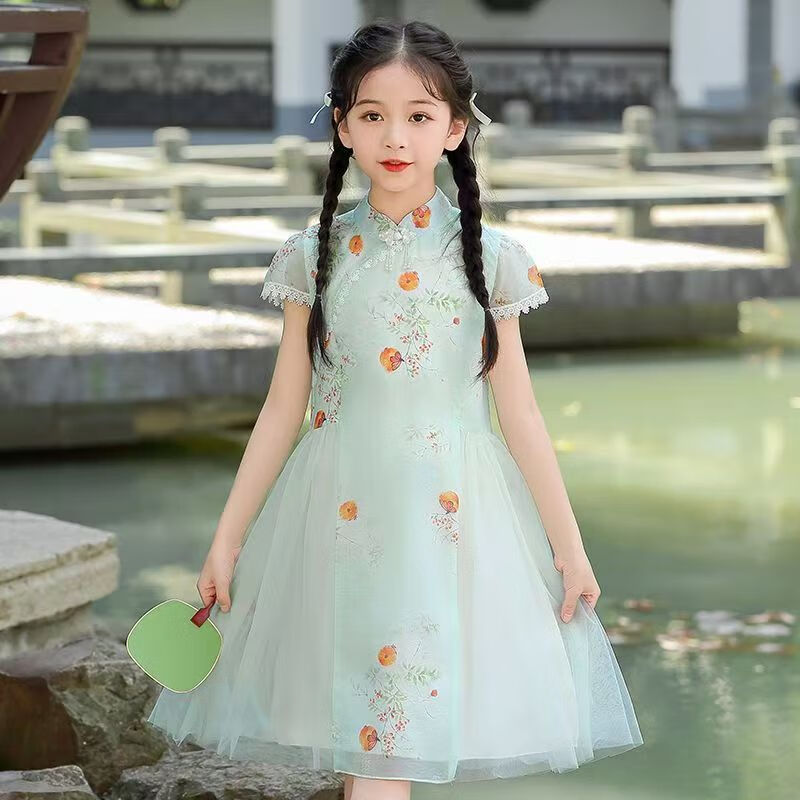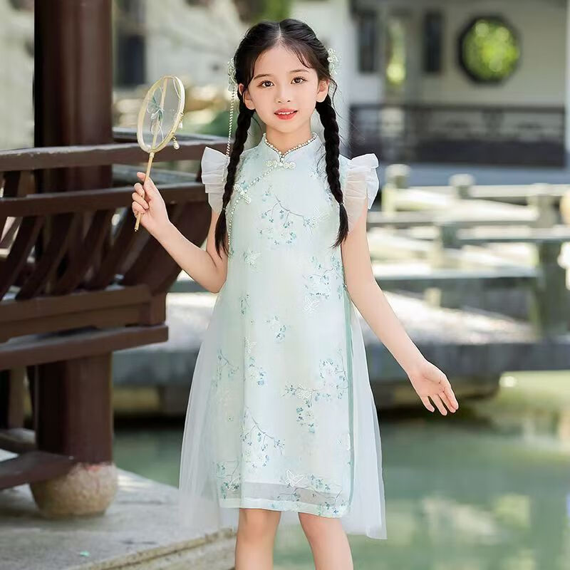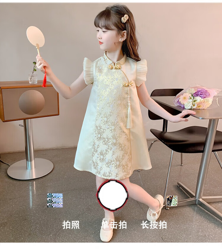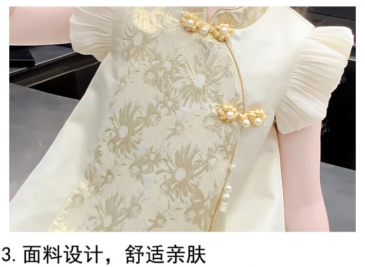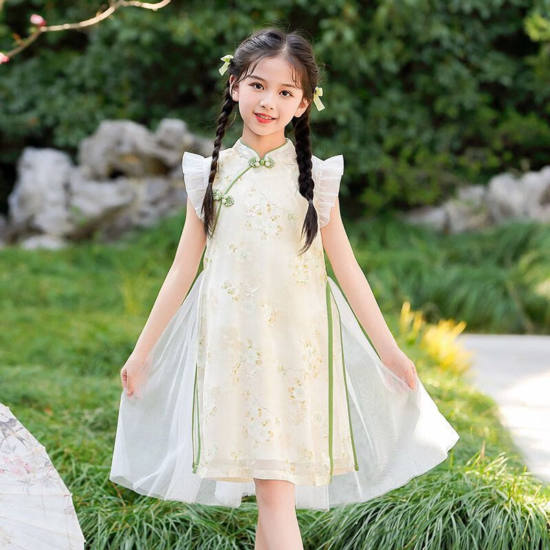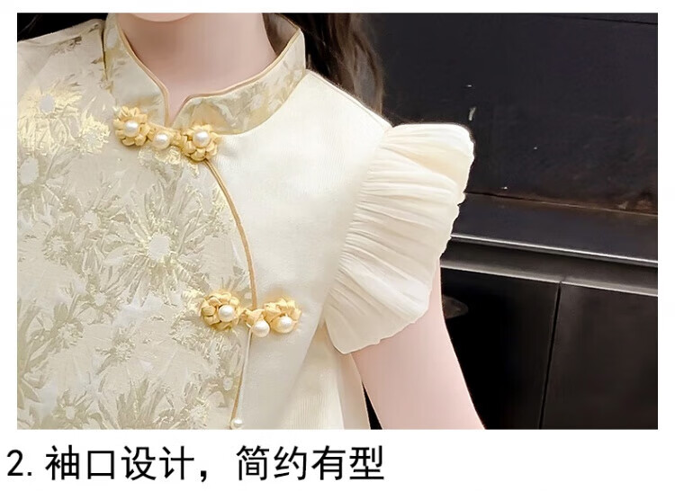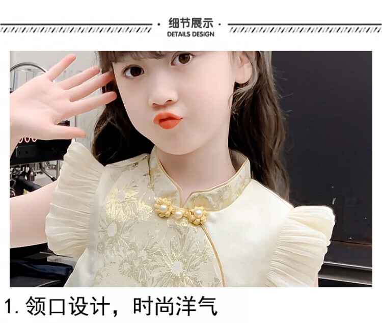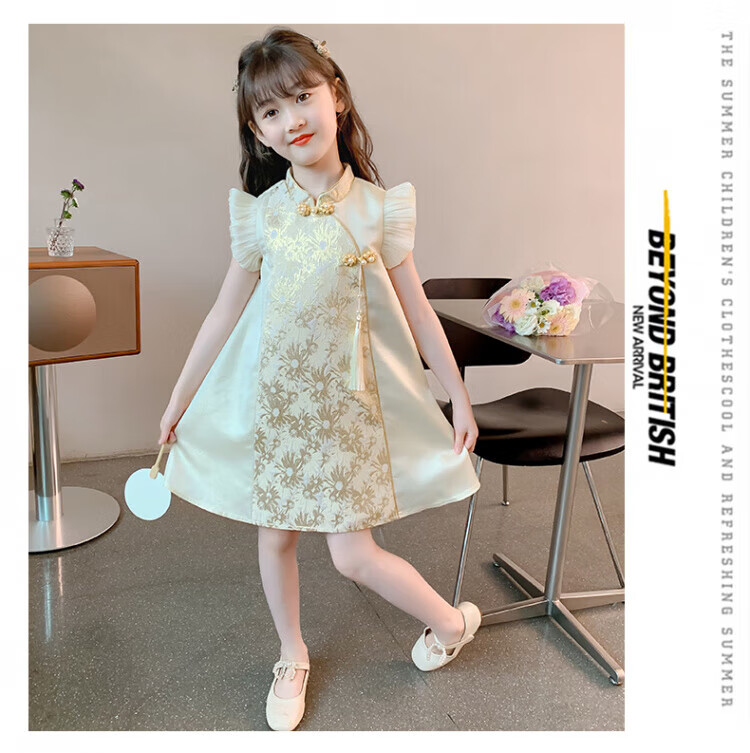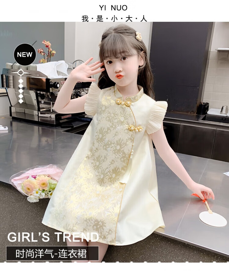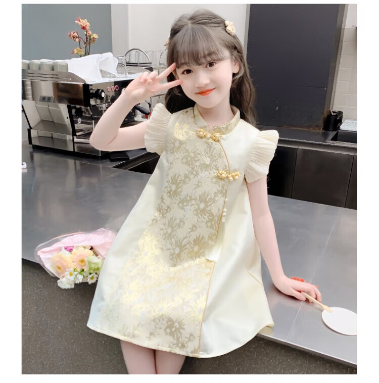 G.duck girls Hanfu dress 2026 new summer little girl Chinese style cheongsam princess dress summer children's dress thin gold 120