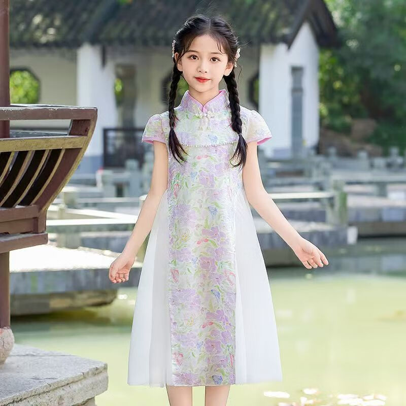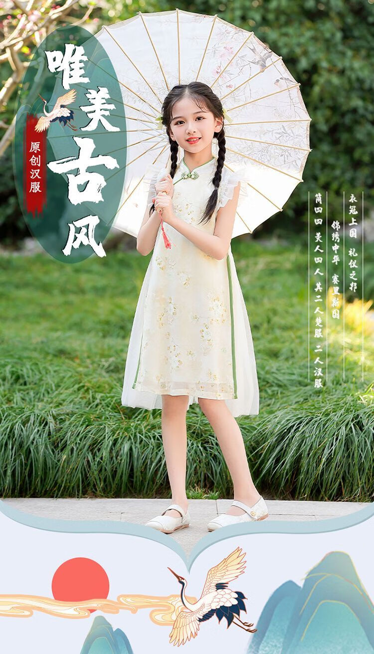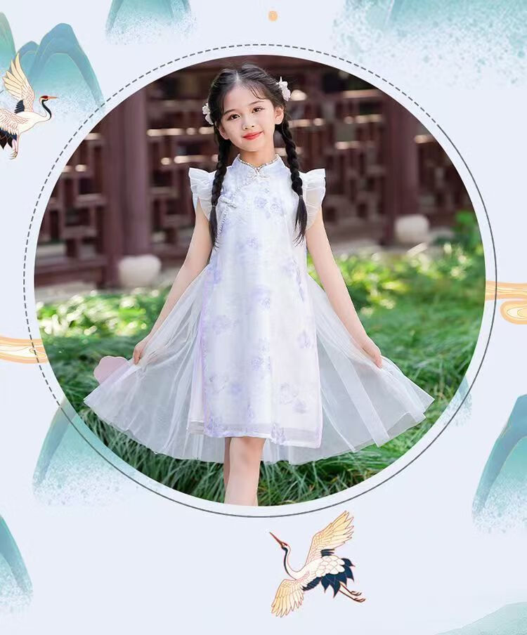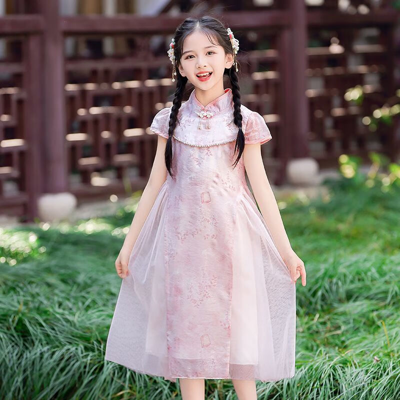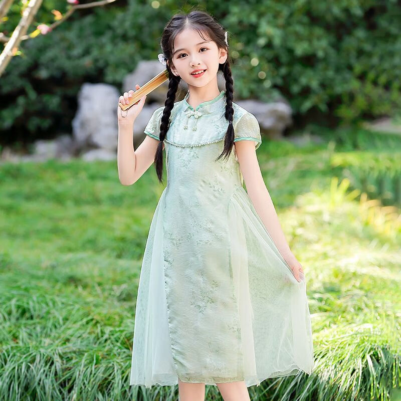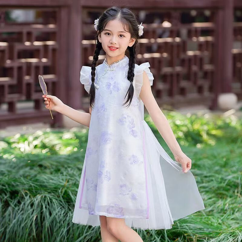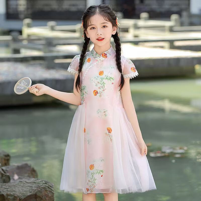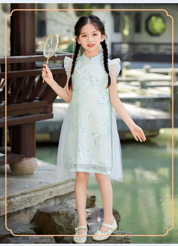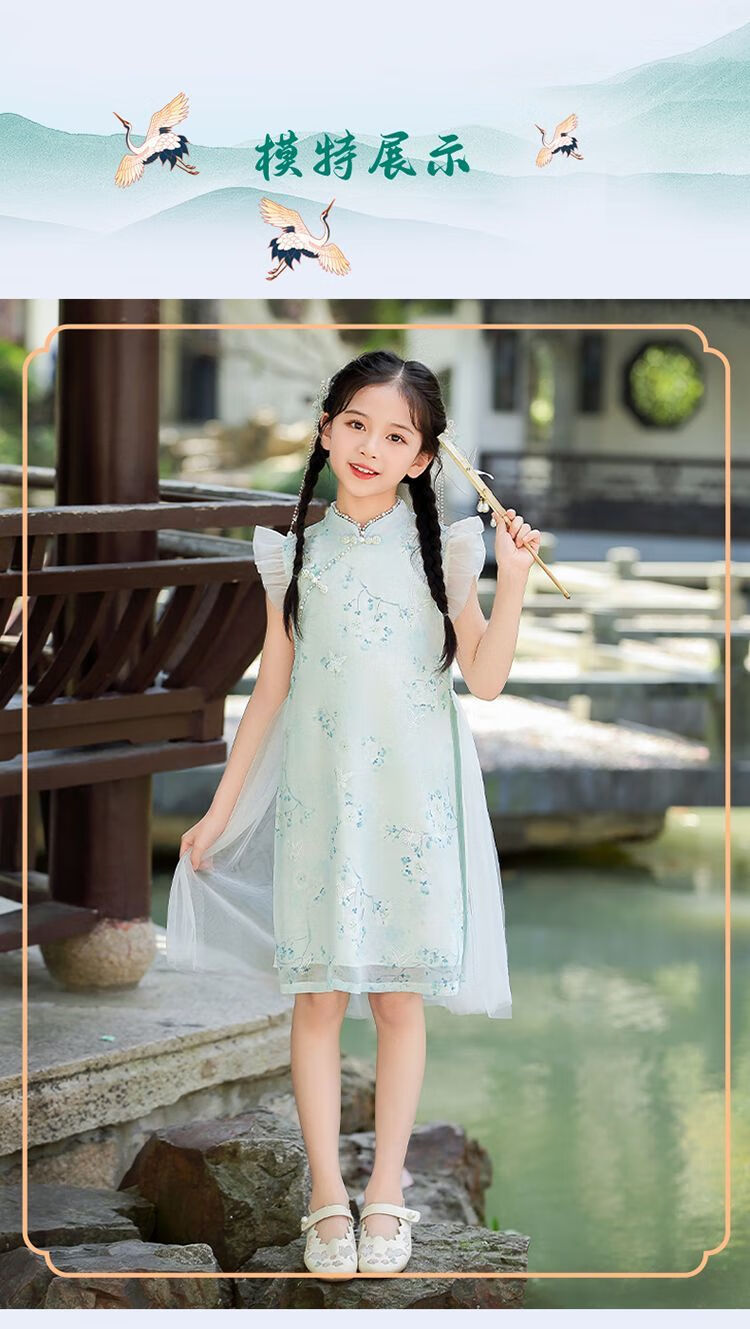 G.duck girls Hanfu dress 2026 new summer little girl Chinese style cheongsam princess dress summer children's dress thin gold 120