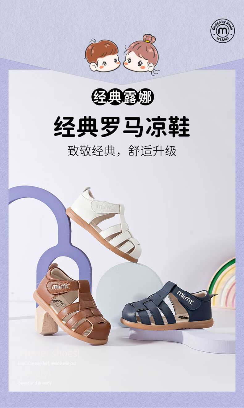 M1&M2 Spanish children's shoes children's sandals summer boys and girls breathable non-slip retro fashion comfortable casual Roman shoes white size 20 suitable for feet 12~12.5cm long