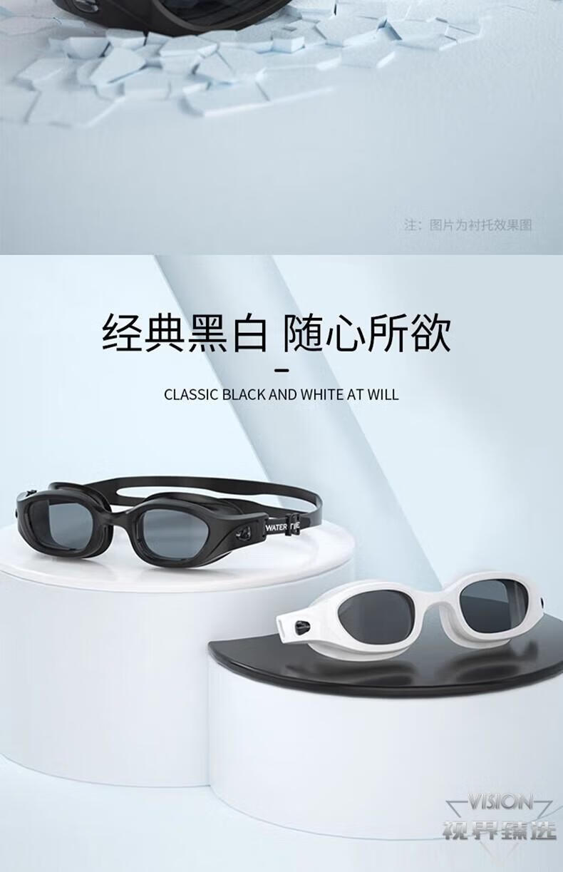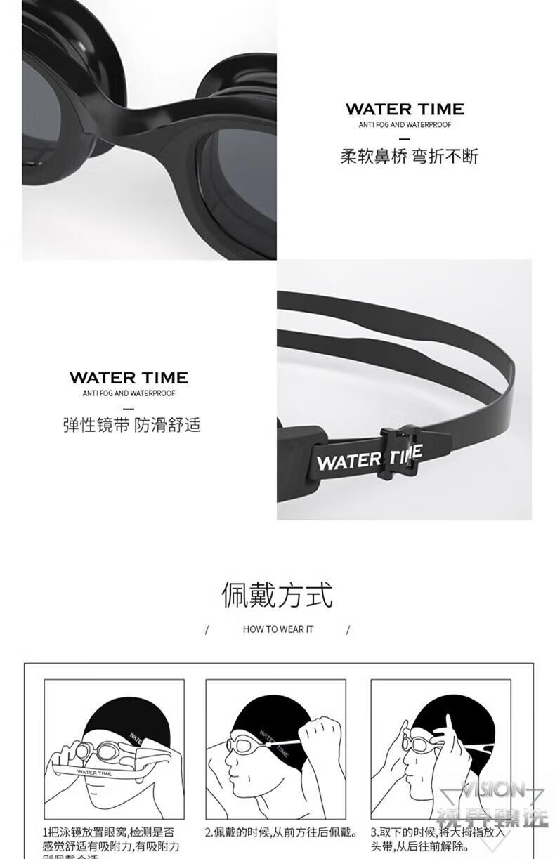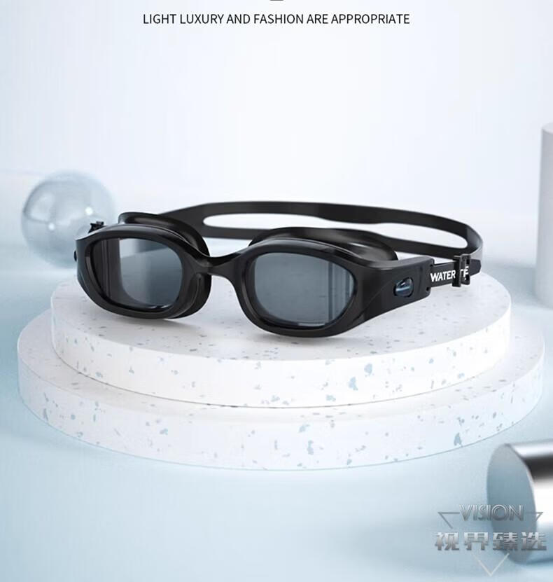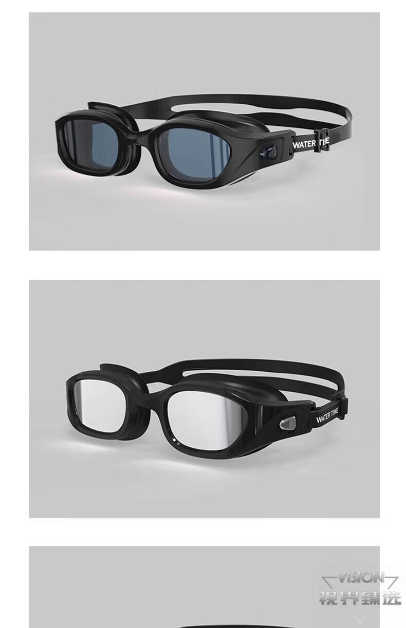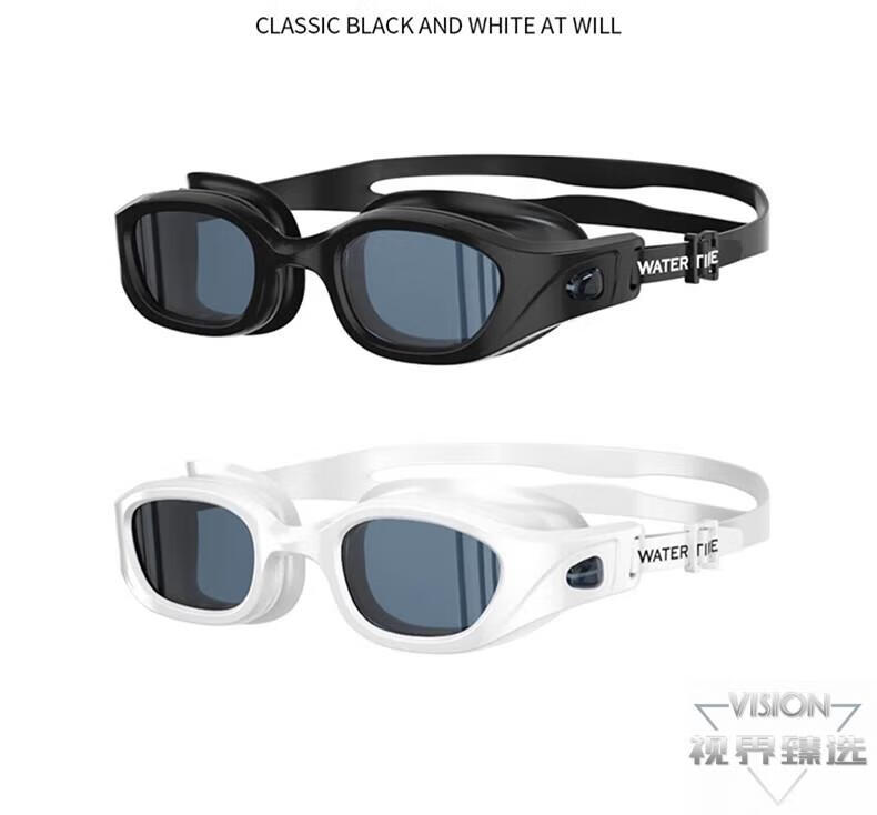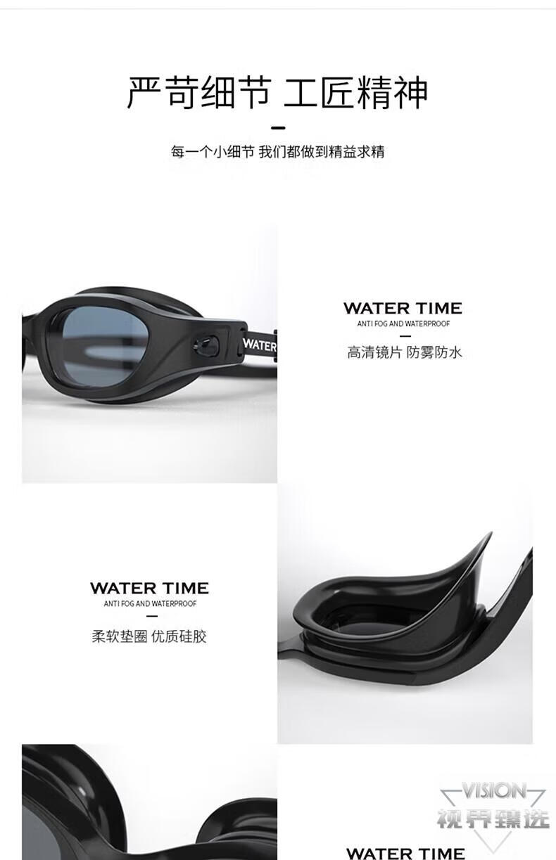 WATERTIME swimming goggles for men and women, waterproof and anti-fog, high-definition, men's myopia, women's large-frame professional diving and swimming goggles equipment, black, imported silicone/waterproof and anti-fog, flat light