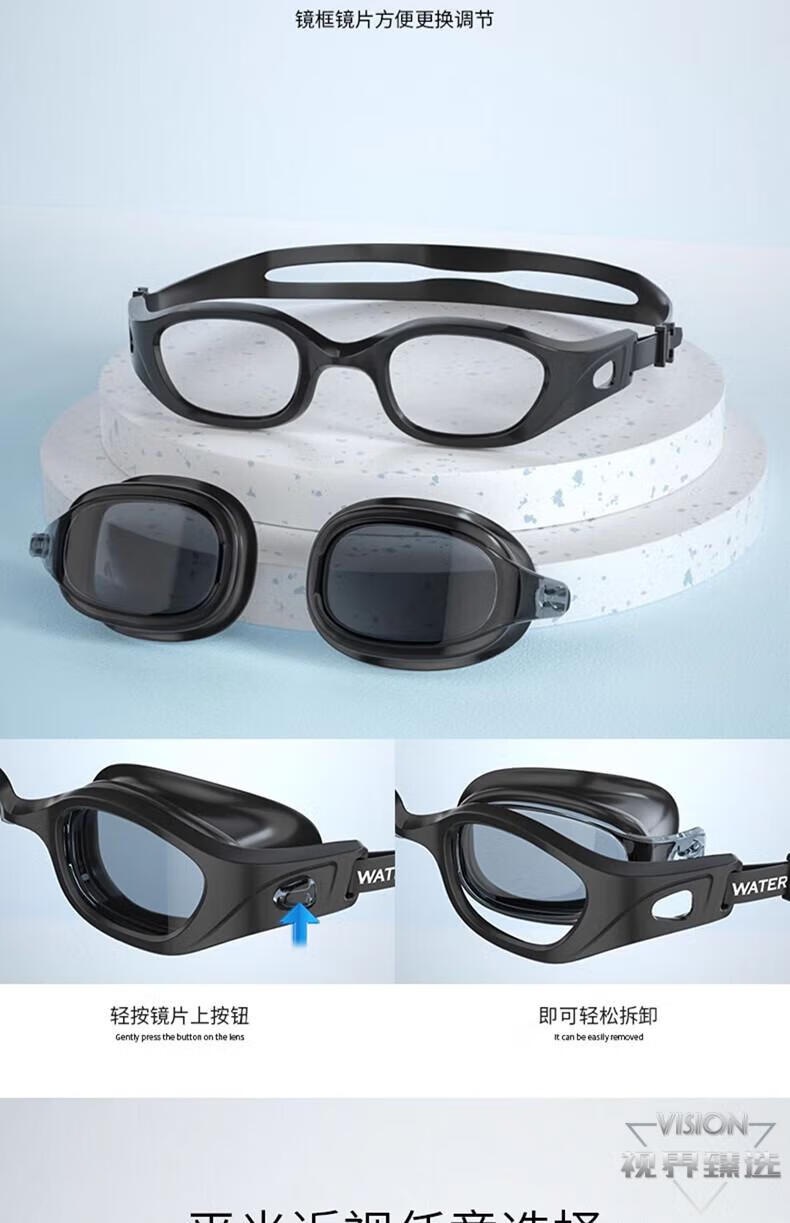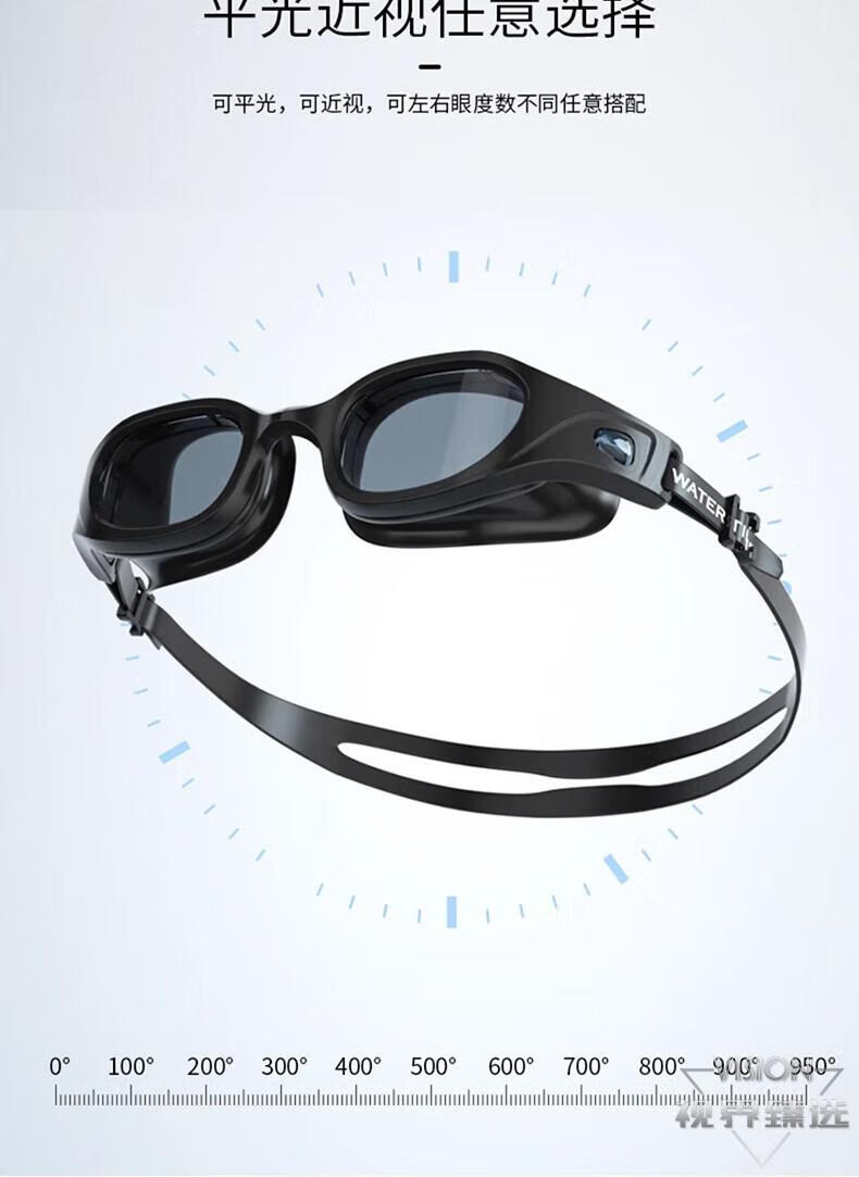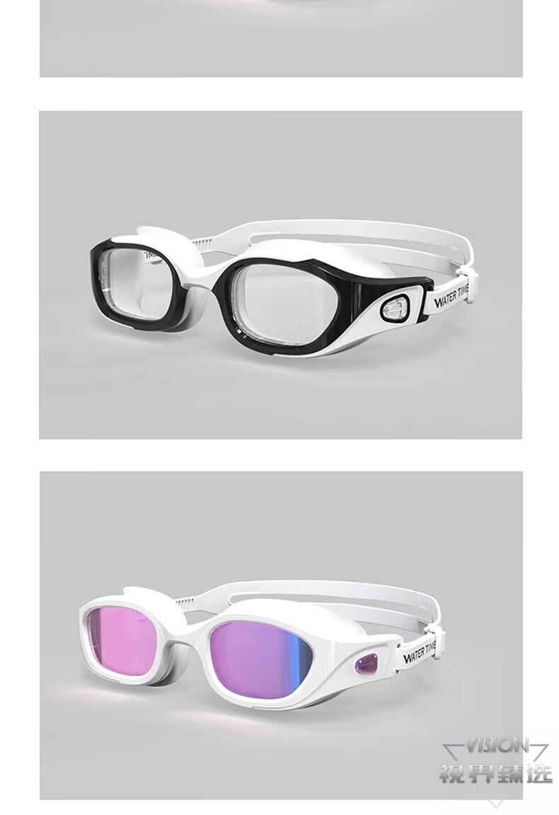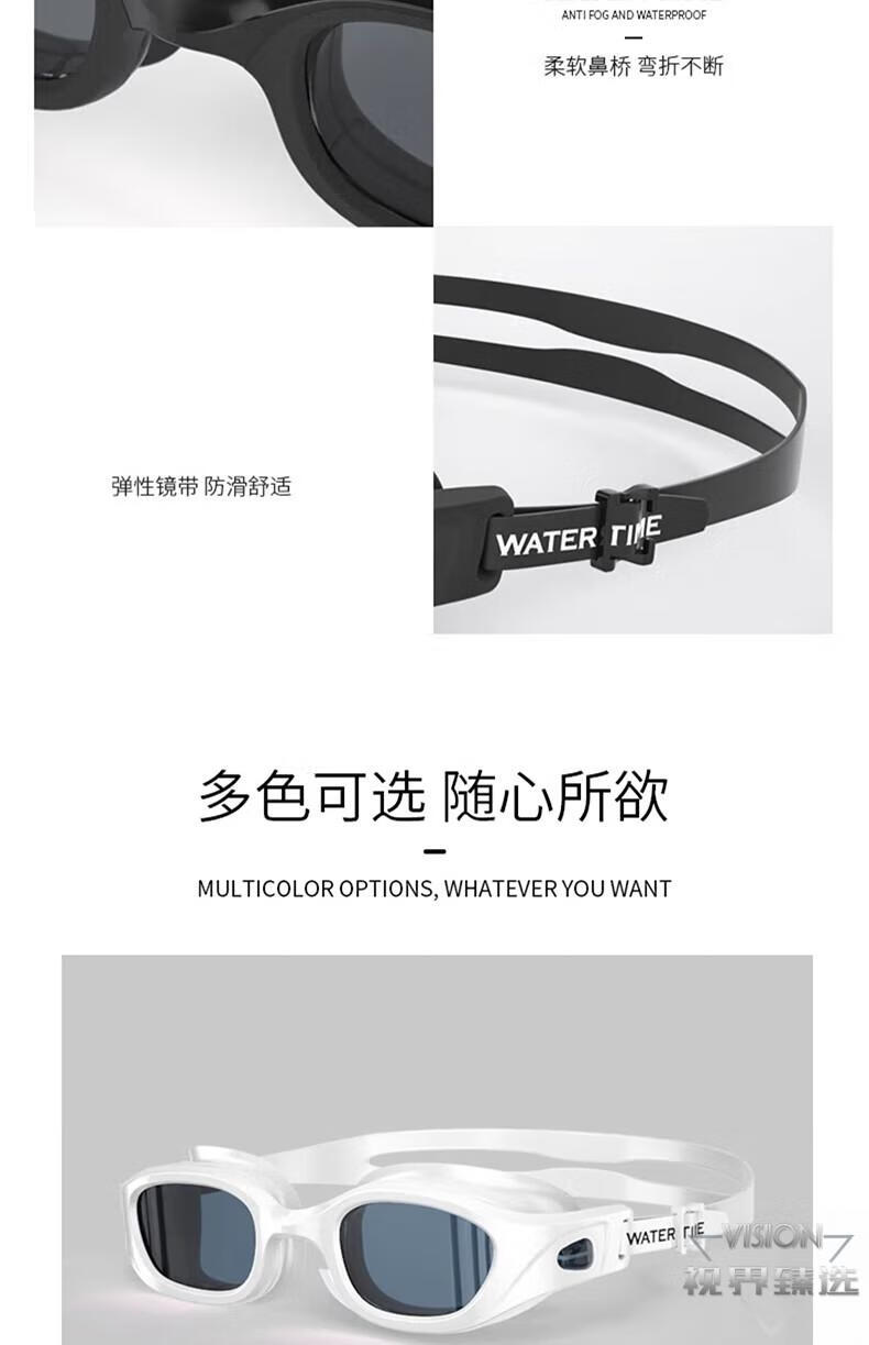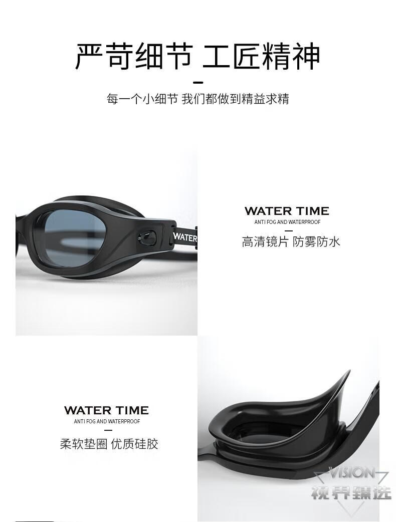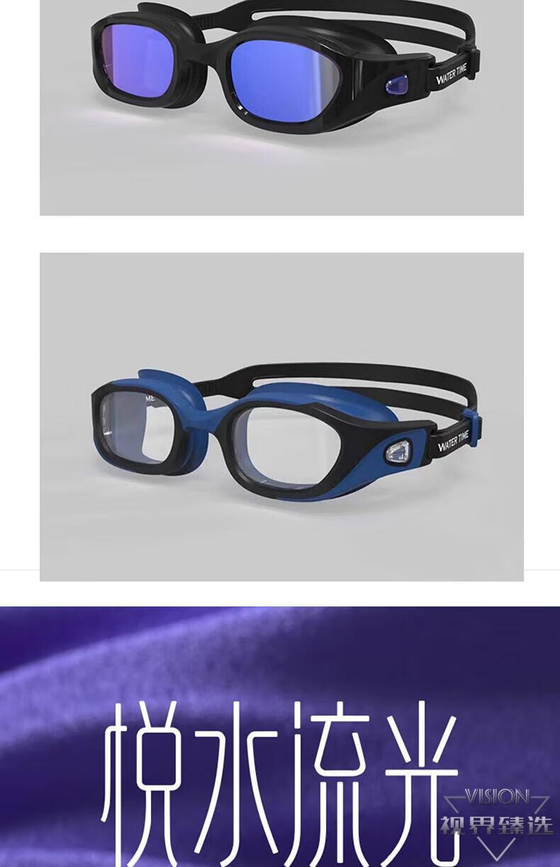 WATERTIME swimming goggles for men and women, waterproof and anti-fog, high-definition, men's myopia, women's large-frame professional diving and swimming goggles equipment, black, imported silicone/waterproof and anti-fog, flat light