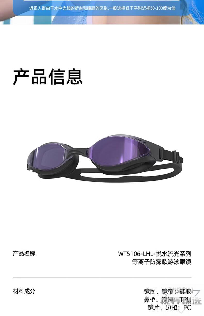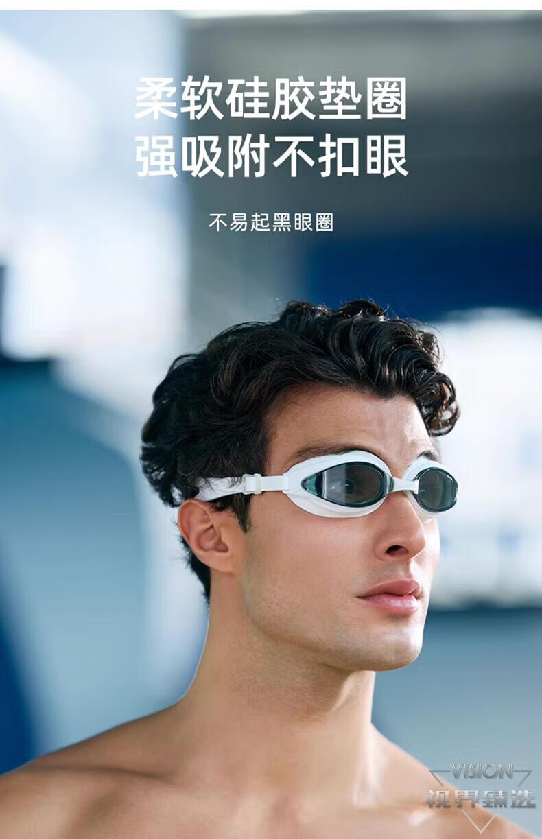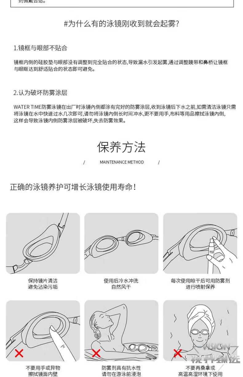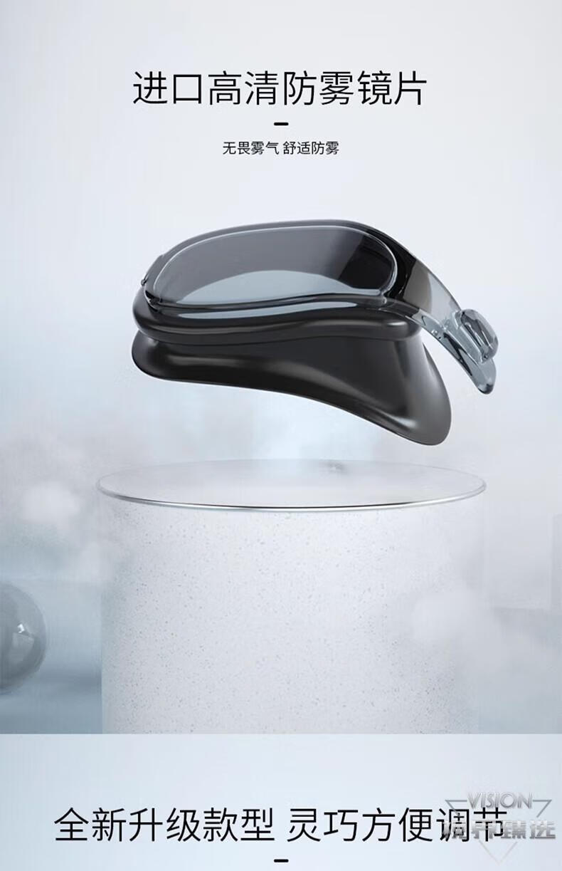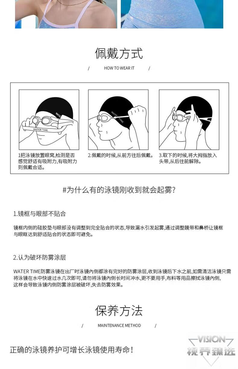WATERTIME swimming goggles for men and women, waterproof and anti-fog, high-definition, men's myopia, women's large-frame professional diving and swimming goggles equipment, black, imported silicone/waterproof and anti-fog, flat light