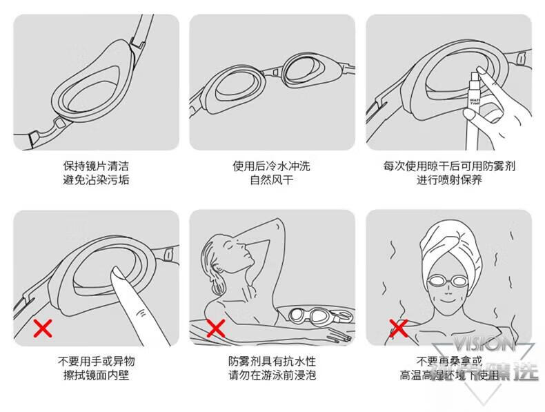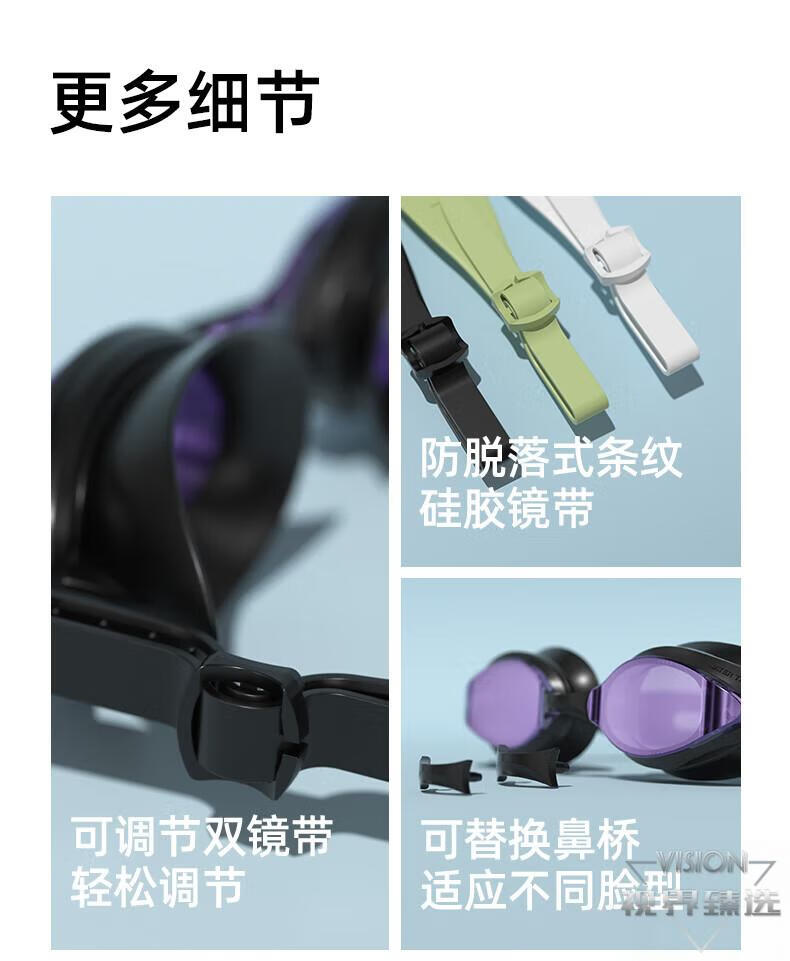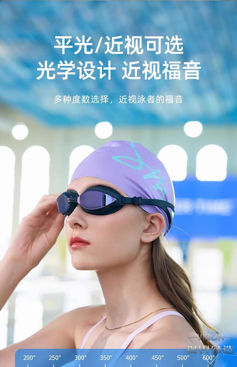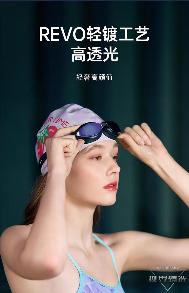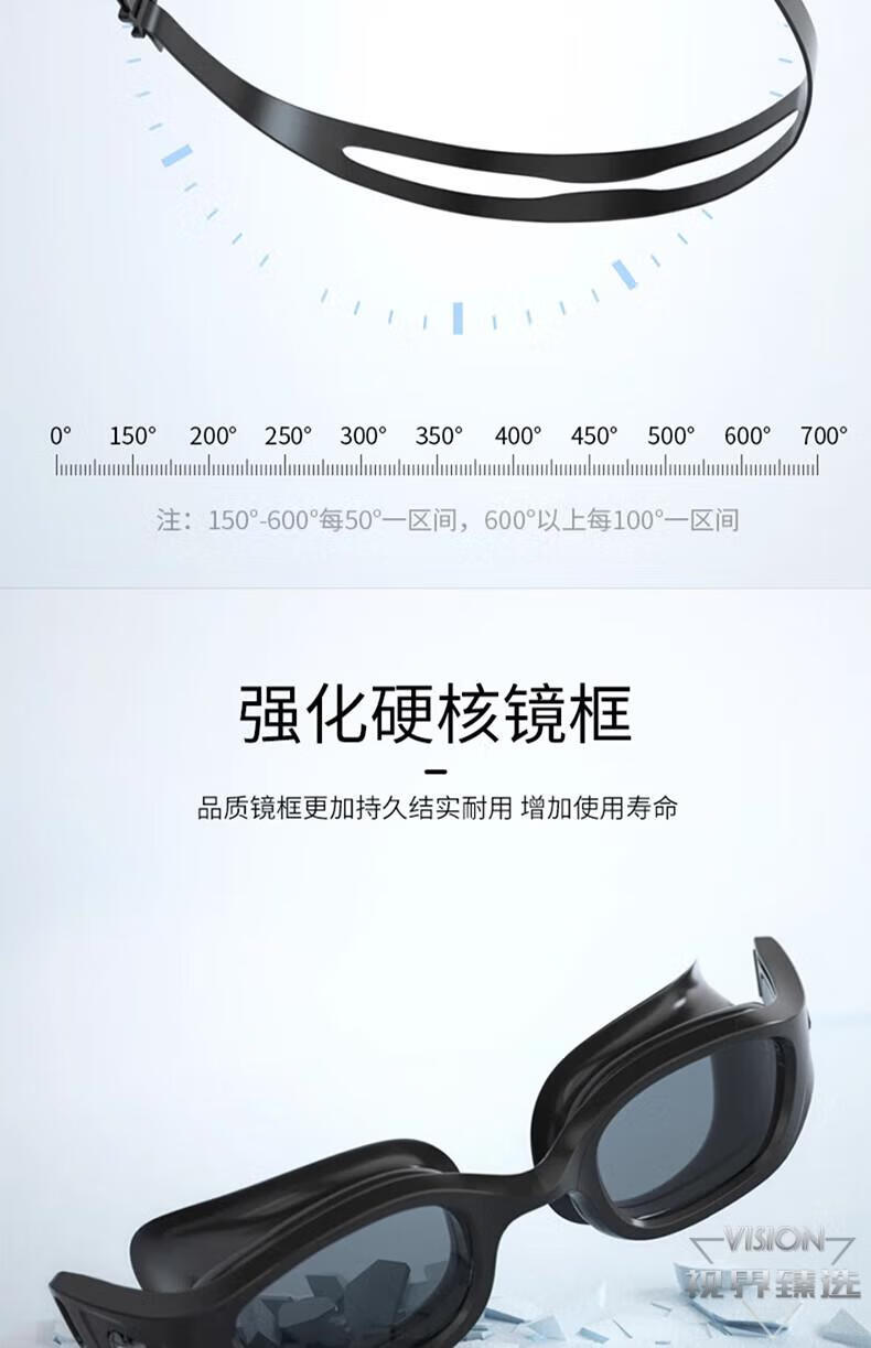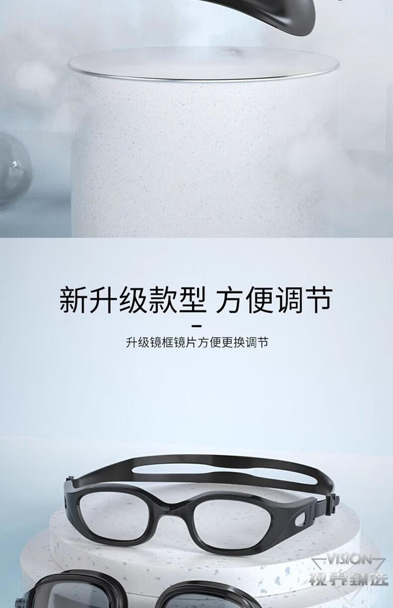 WATERTIME swimming goggles for men and women, waterproof and anti-fog, high-definition, men's myopia, women's large-frame professional diving and swimming goggles equipment, black, imported silicone/waterproof and anti-fog, flat light
