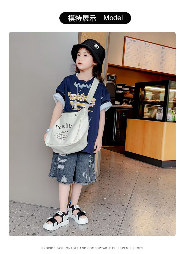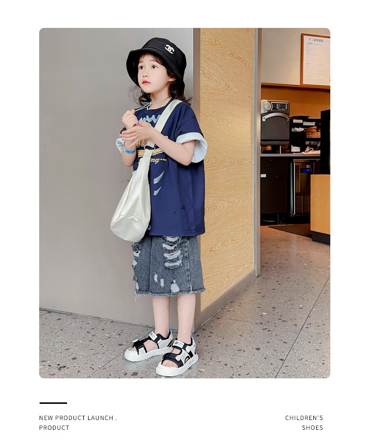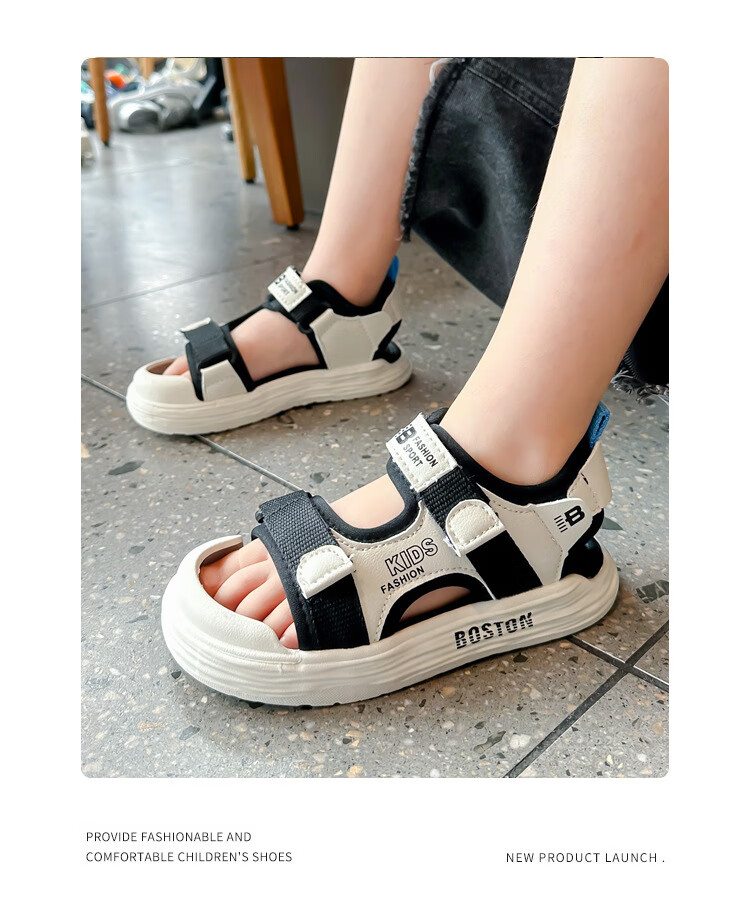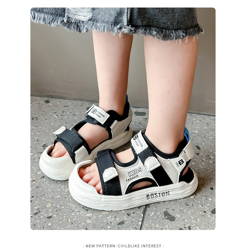 G.duck children's sandals 2025 summer new style boys' sports non-slip sandals Korean style casual baby beach sandals DHXS27 black 24 inner length/15cm