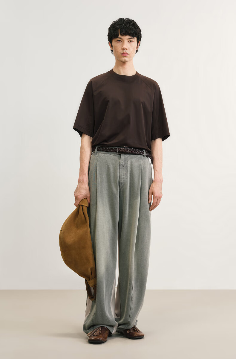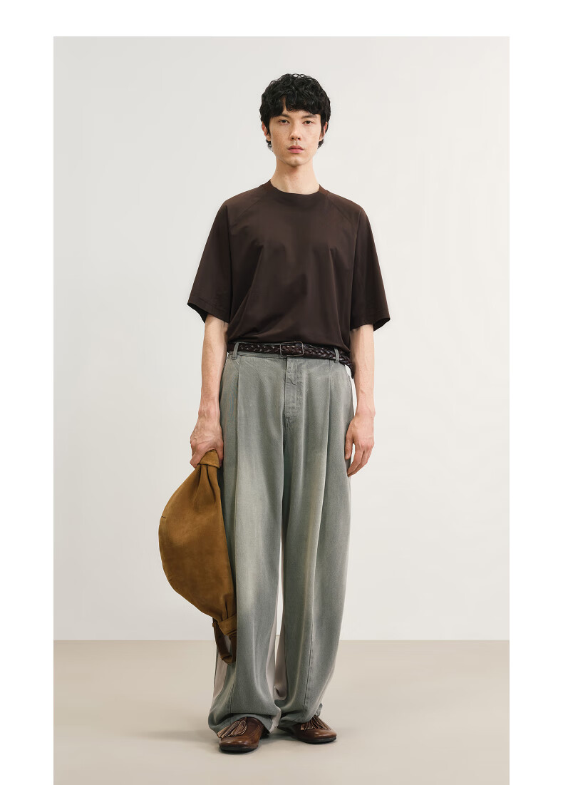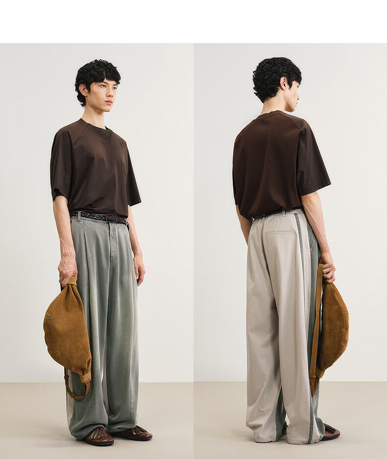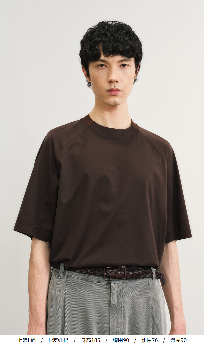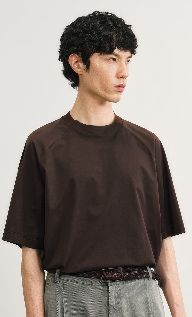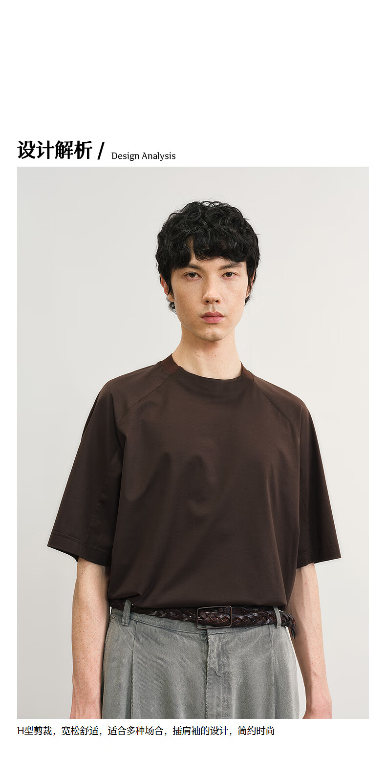 Sketch men's 2025 summer new arrival solid color short-sleeved sweater H-shaped loose round neck simple fashion 9P4311210 227 dry brown L