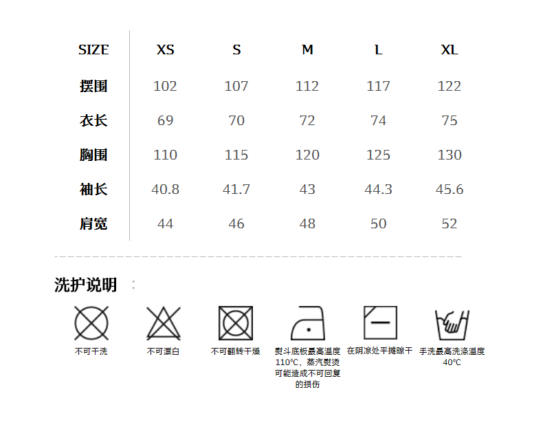China(cm) 72-76 76-81 81-87 87-93 93-98