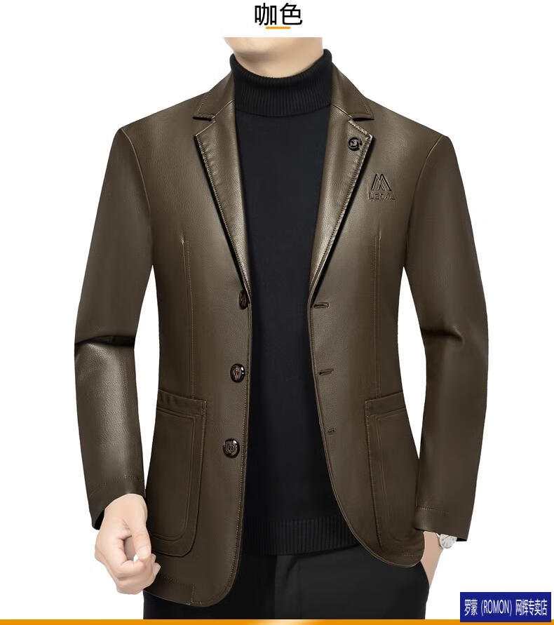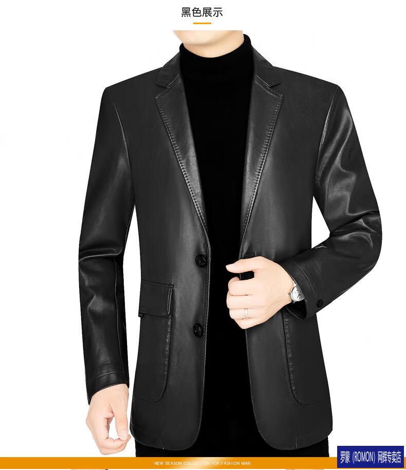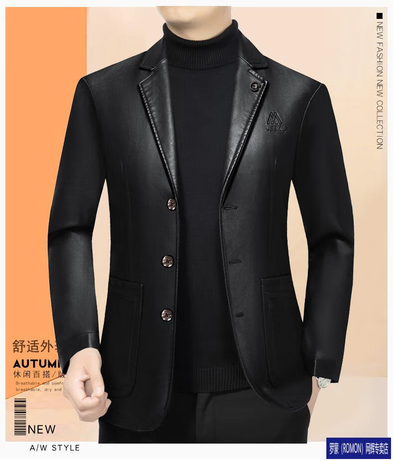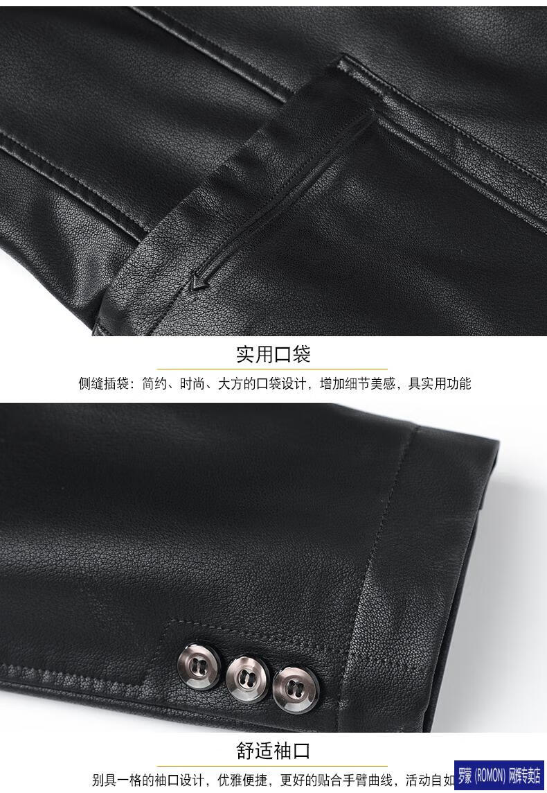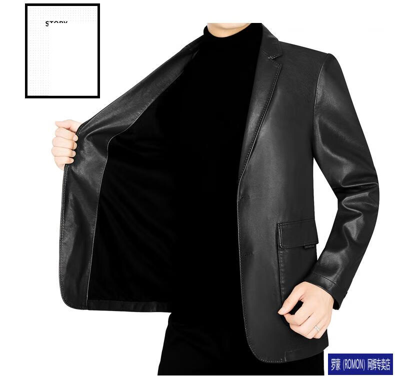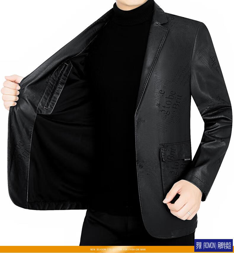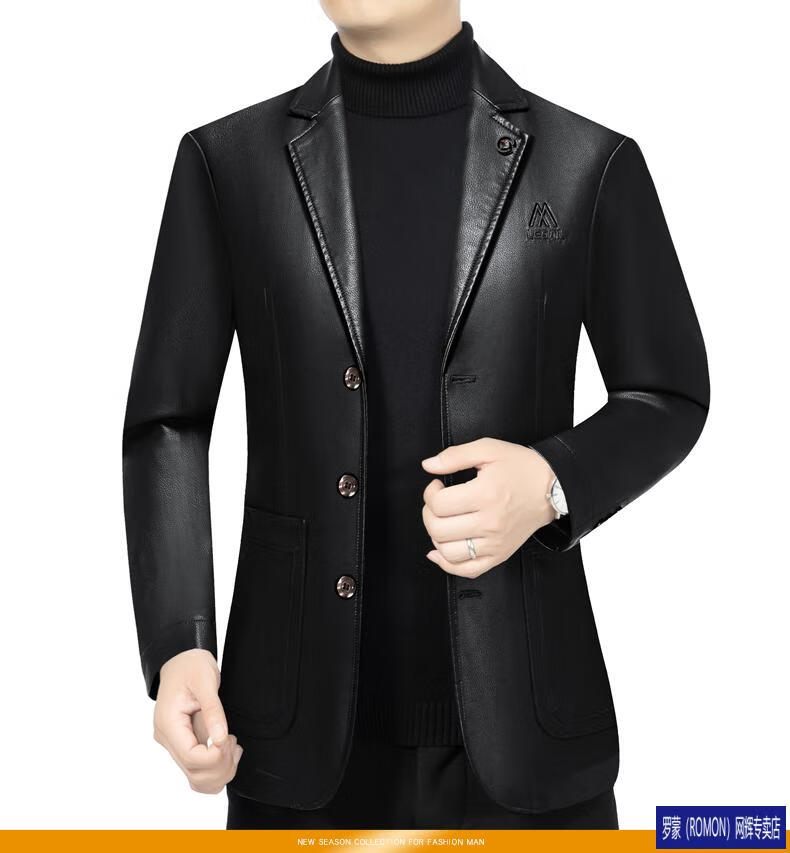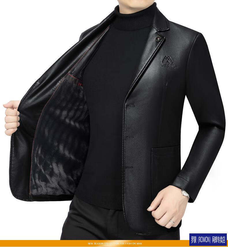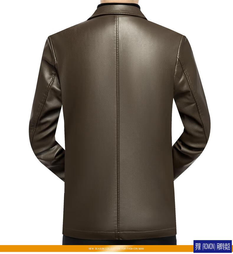 ROMON simulated leather jacket for men 2026 autumn new suit jacket spring and autumn middle-aged velvet suit dad black 72325 without velvet L 175 recommended 115-135 Jin Jin equals 0.5 kg