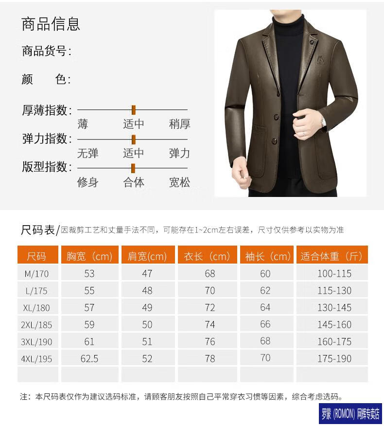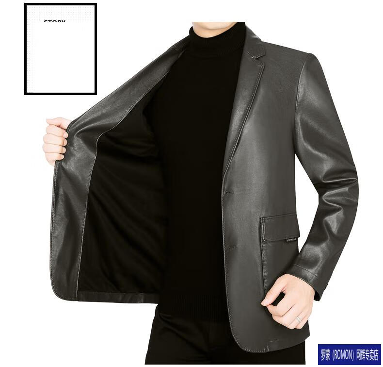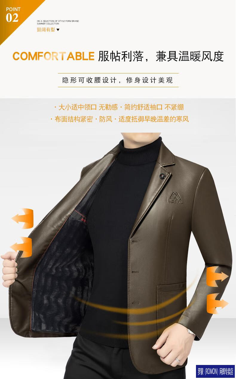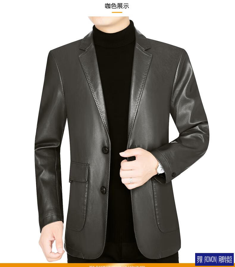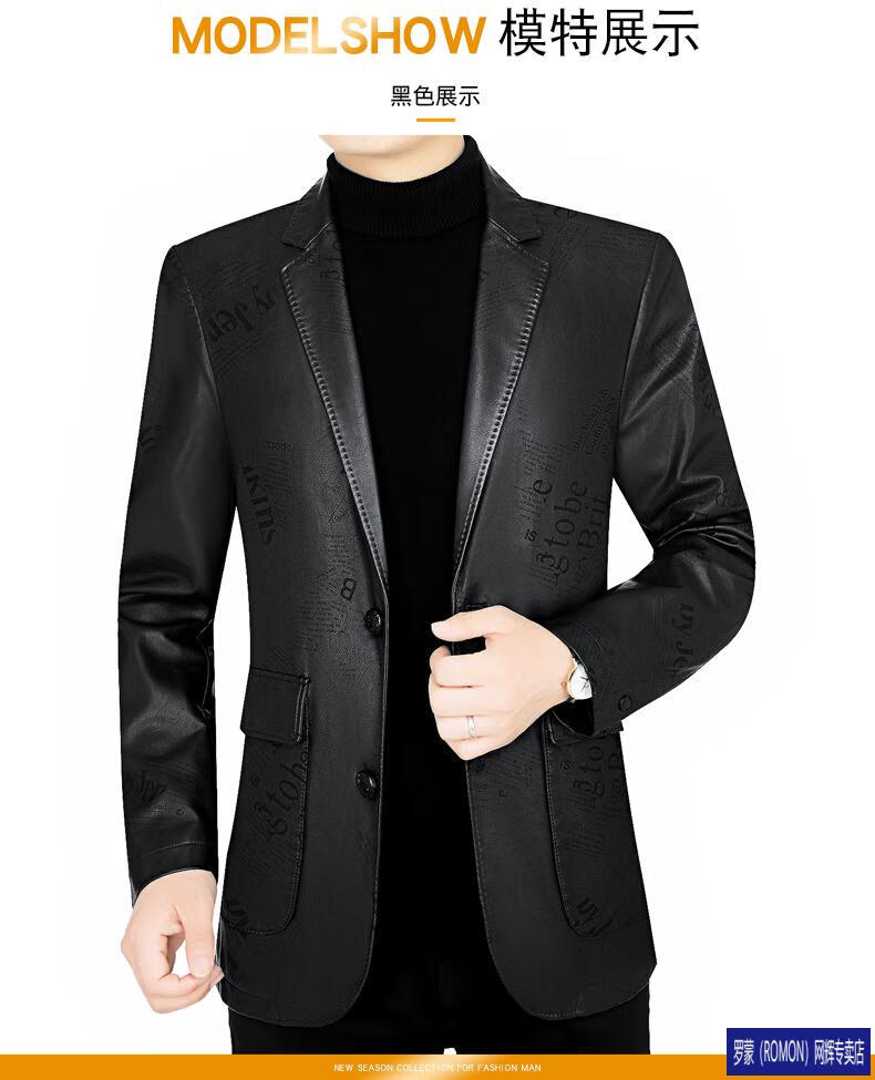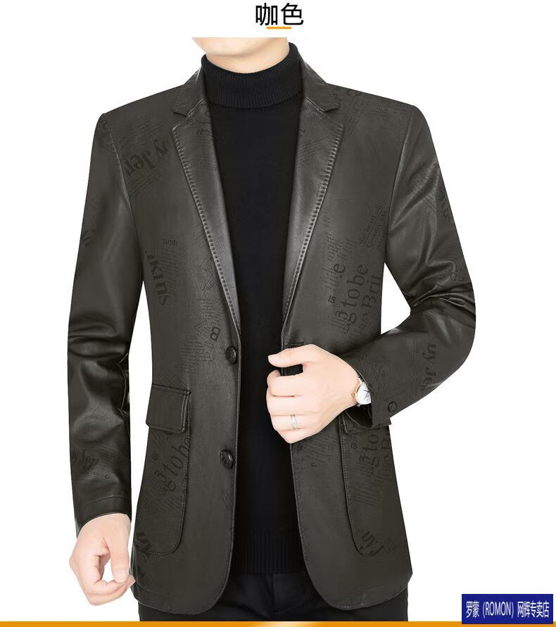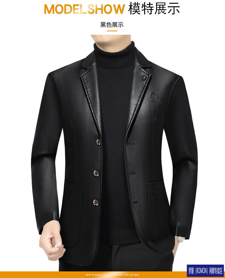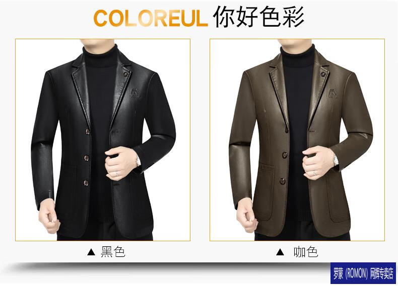 ROMON simulated leather jacket for men 2026 autumn new suit jacket spring and autumn middle-aged velvet suit dad black 72325 without velvet L 175 recommended 115-135 Jin Jin equals 0.5 kg