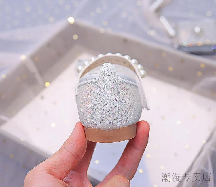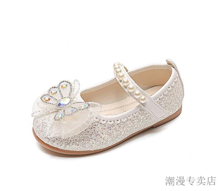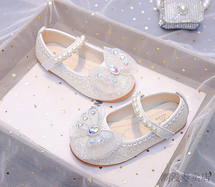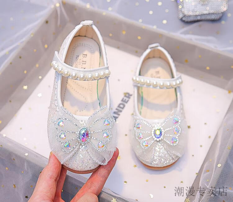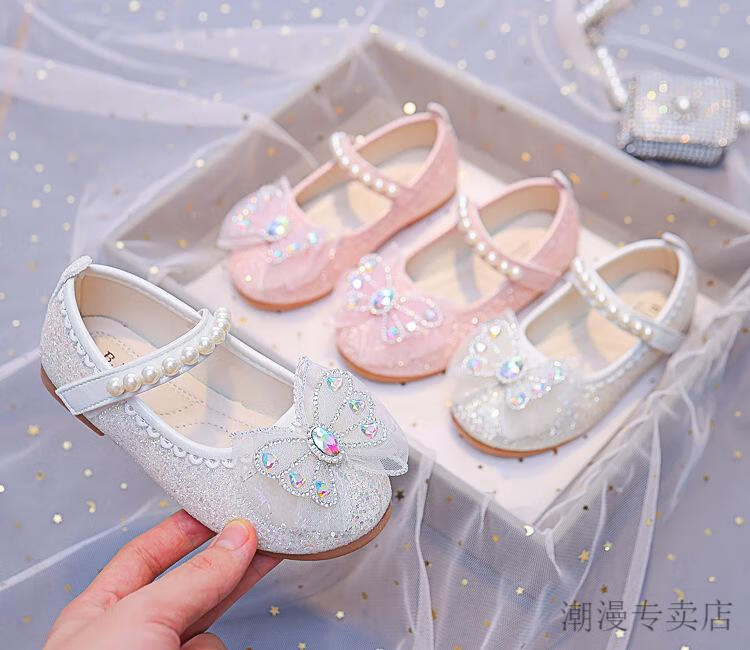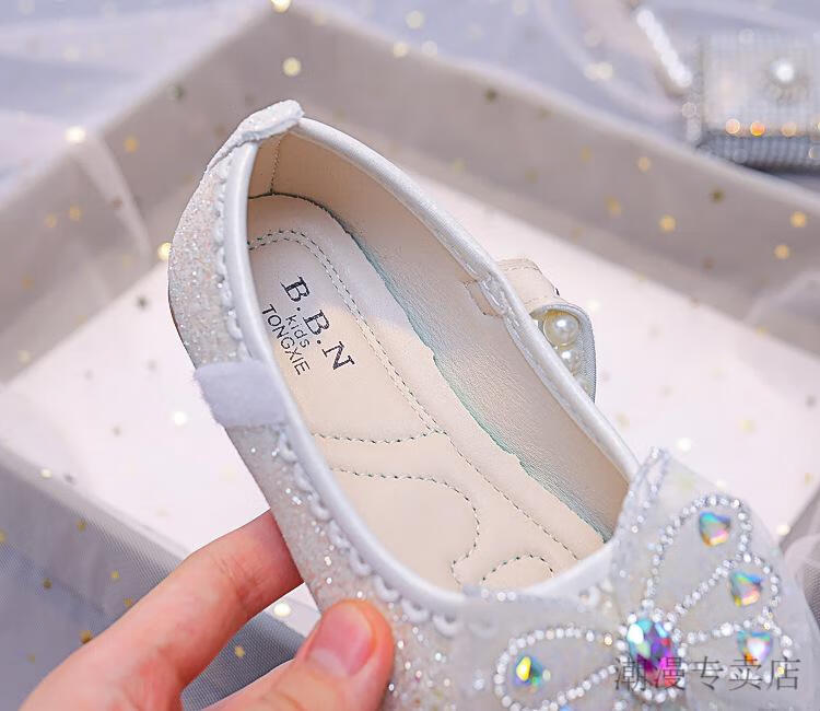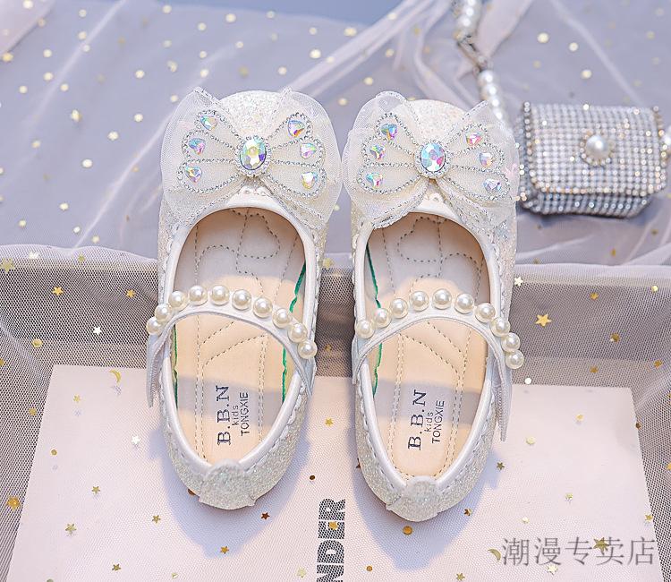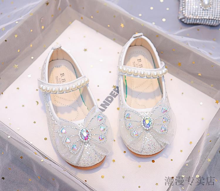 G.duck Girls Princess Elsa Shoes 2025 New Korean Style Bow Little Girls Soft Sole Shoes Pearl Crystal Small Leather Shoes RX116 Pink 29
