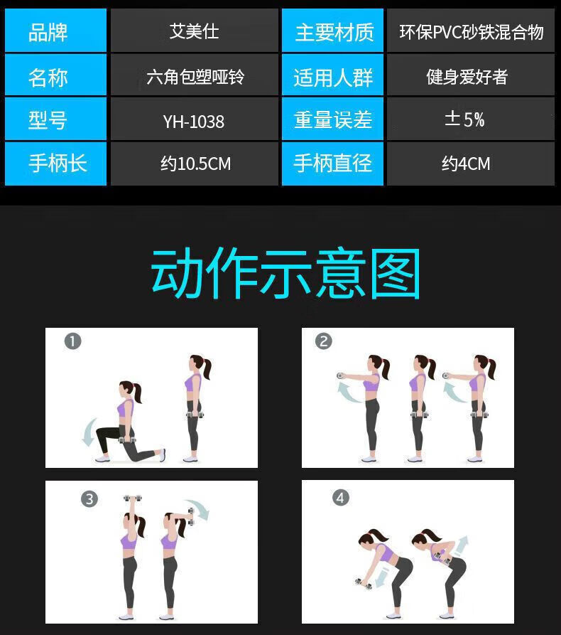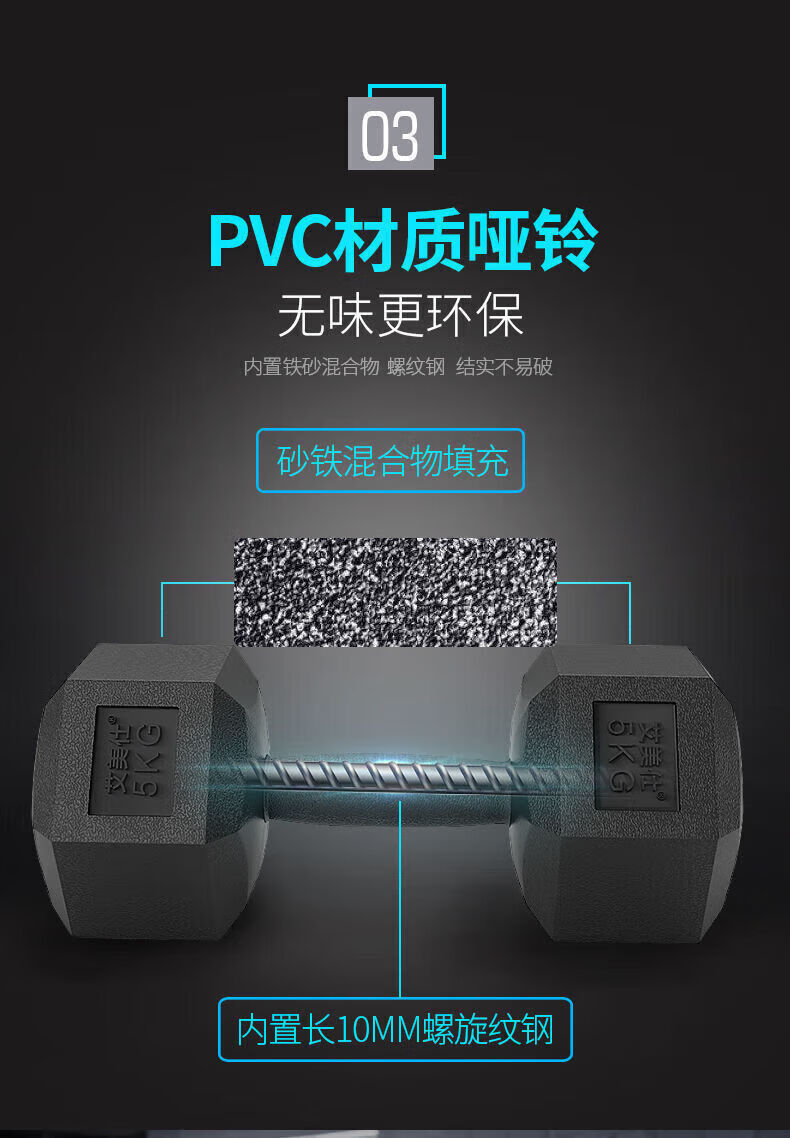 Lixiang weightlifting equipment hexagonal dumbbells for men's fitness students 2kg 5kg household 10kg rubber-coated arm training for women, total weight 20Jin Jin is equal to 0.5kg, one pair (10Jin Jin is equal to 0.5kg 2)