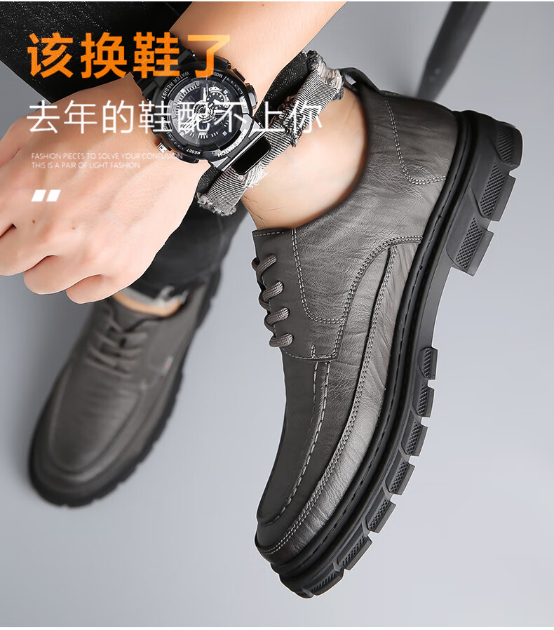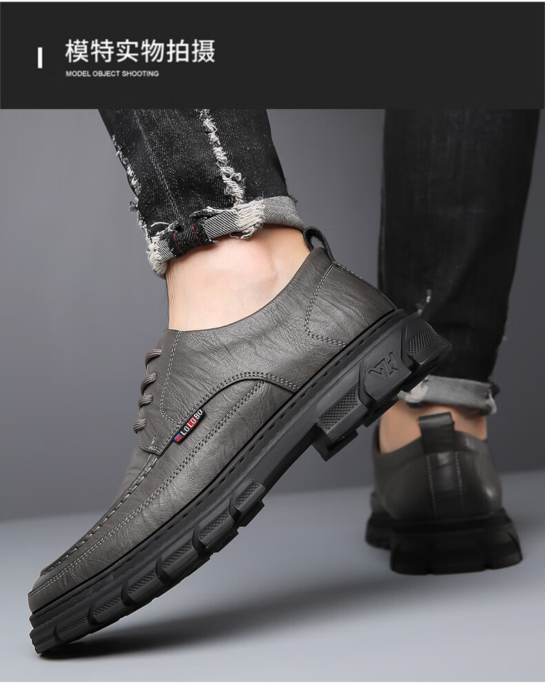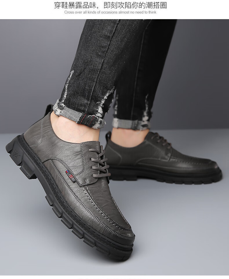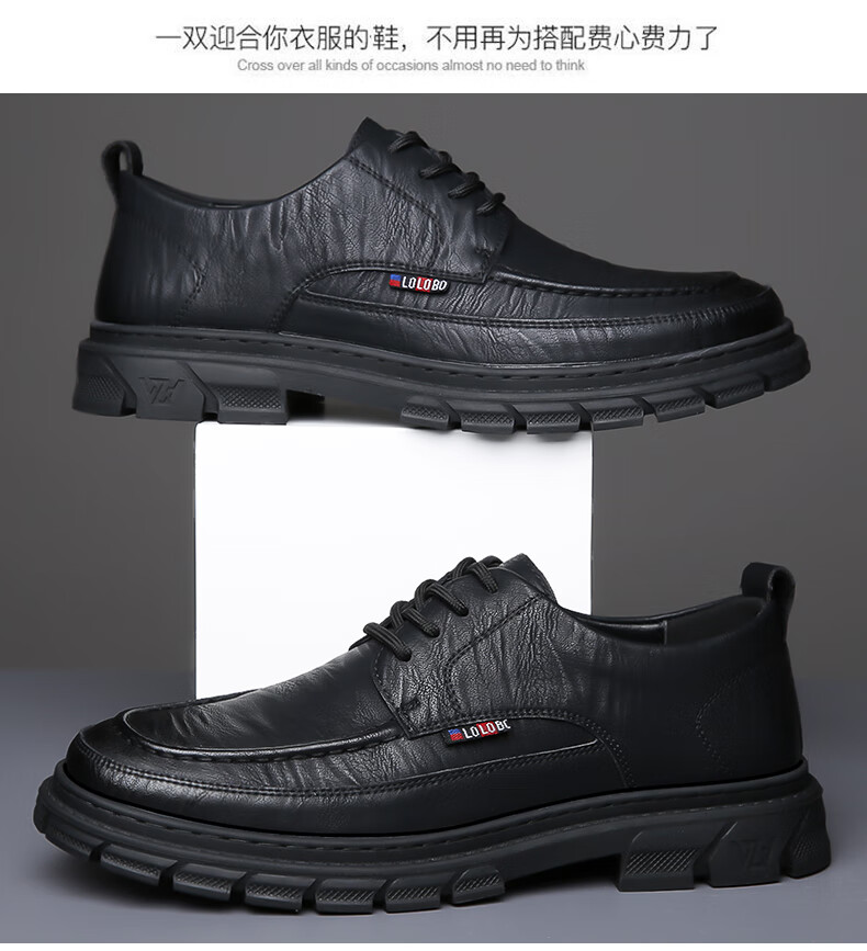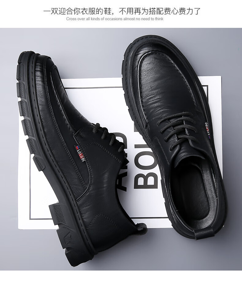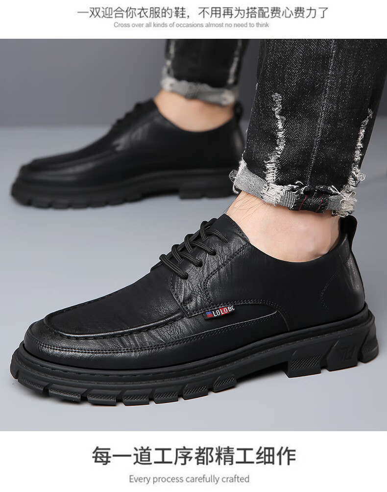 Woodpecker casual leather shoes for men genuine leather spring and summer breathable British business formal wear non-slip work soft sole black big toe trendy shoes black 40