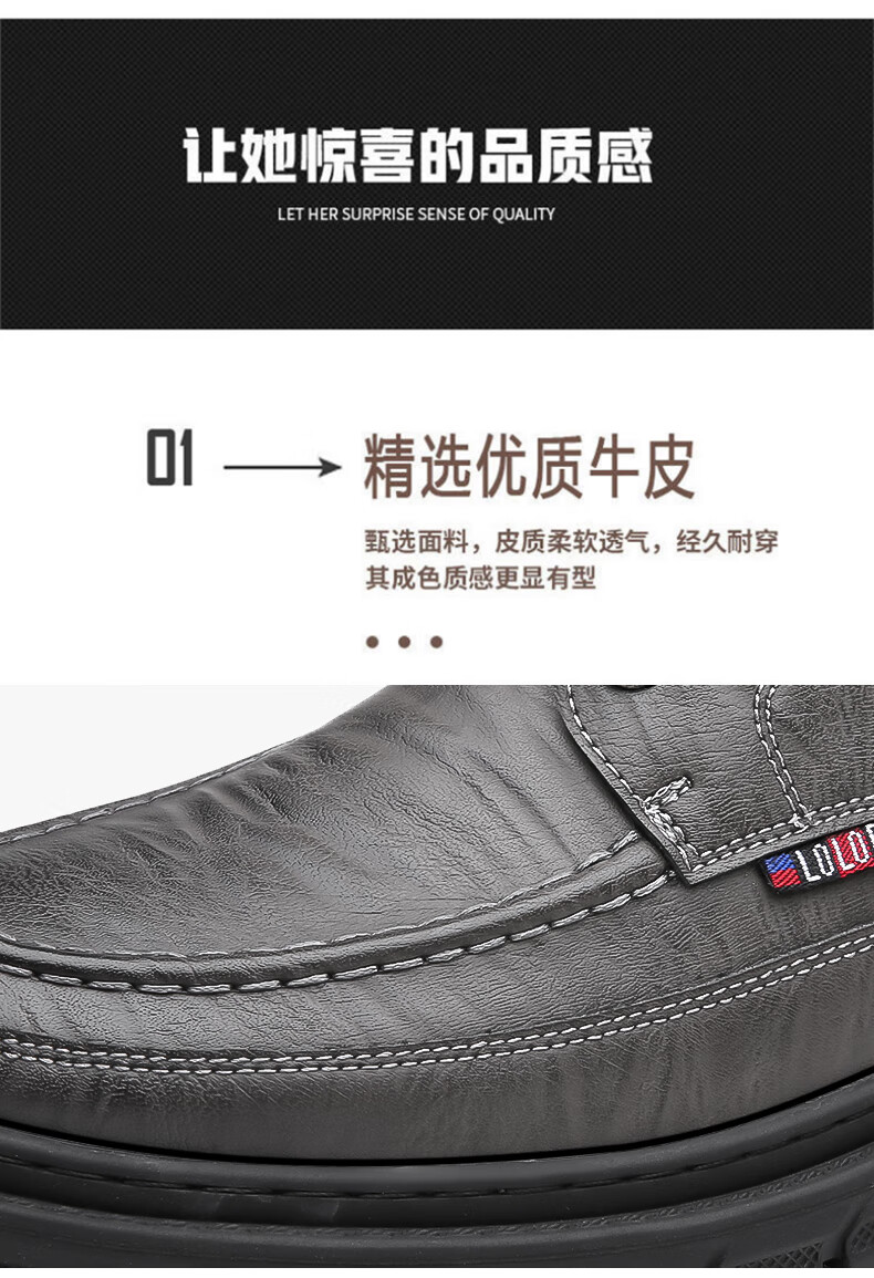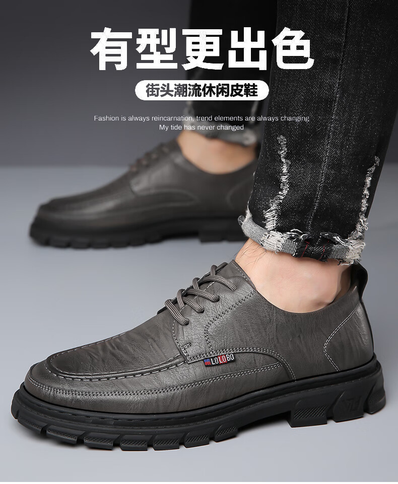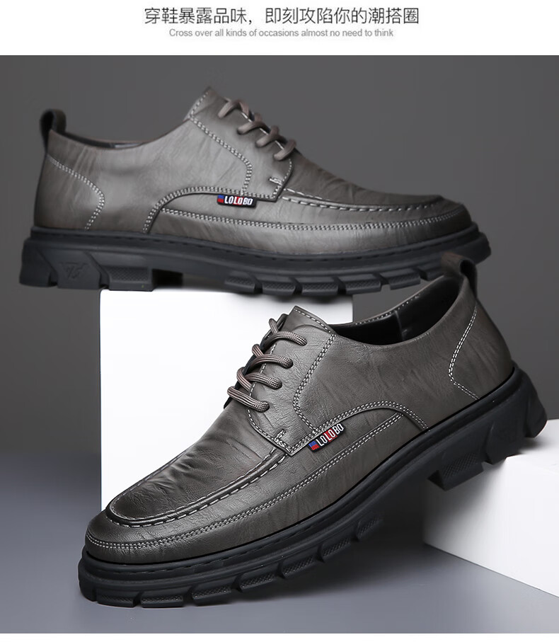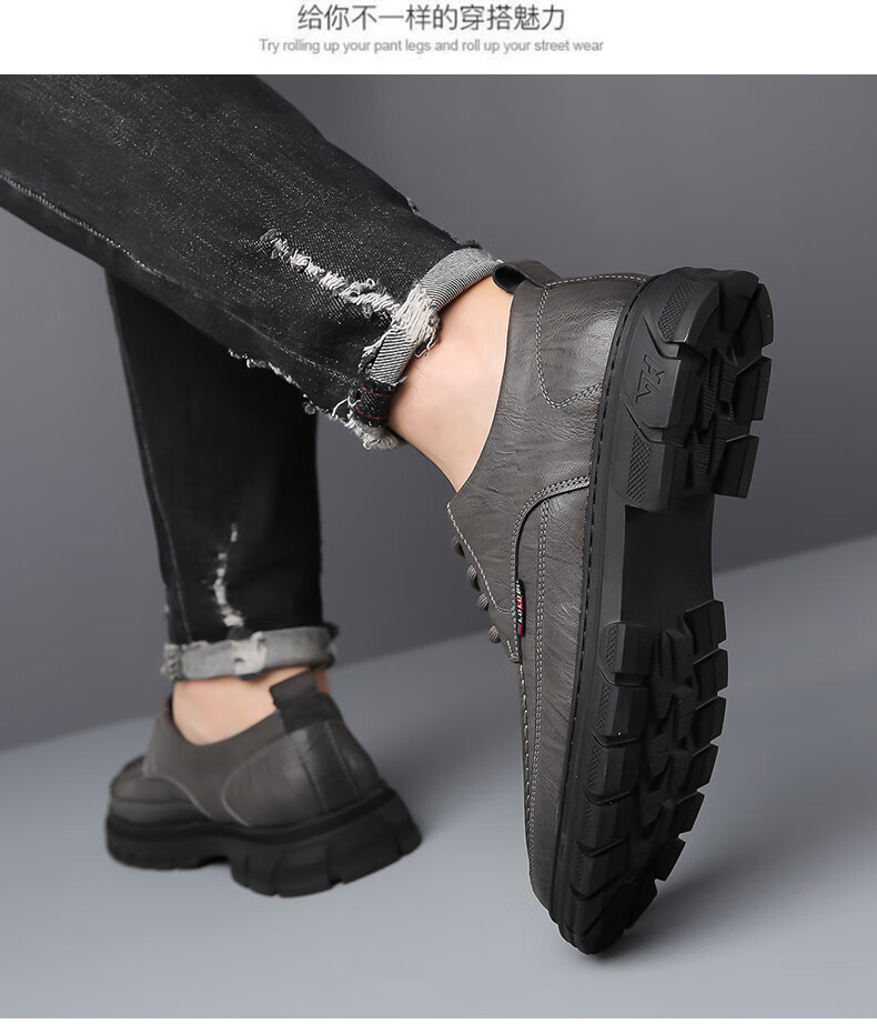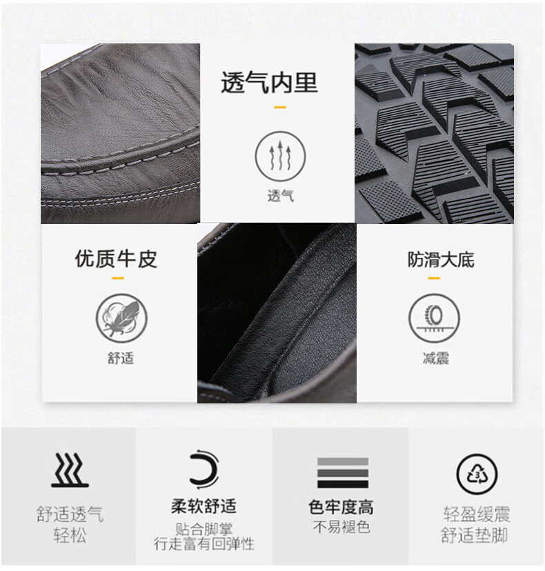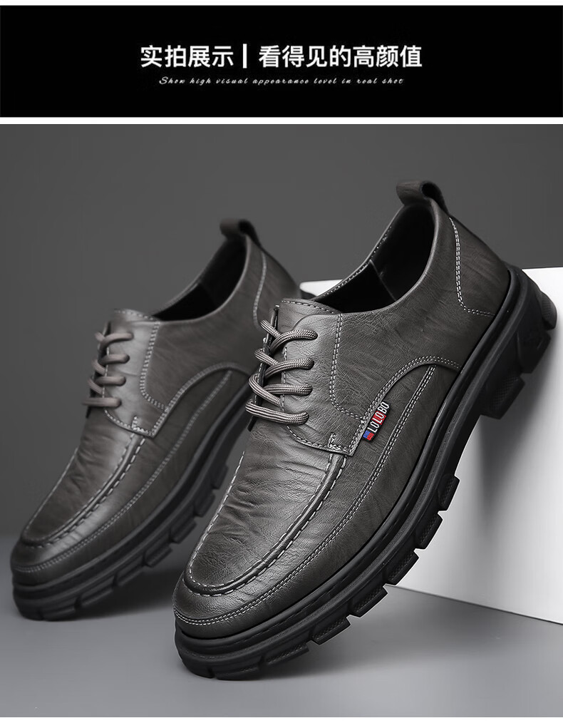 Woodpecker casual leather shoes for men genuine leather spring and summer breathable British business formal wear non-slip work soft sole black big toe trendy shoes black 40