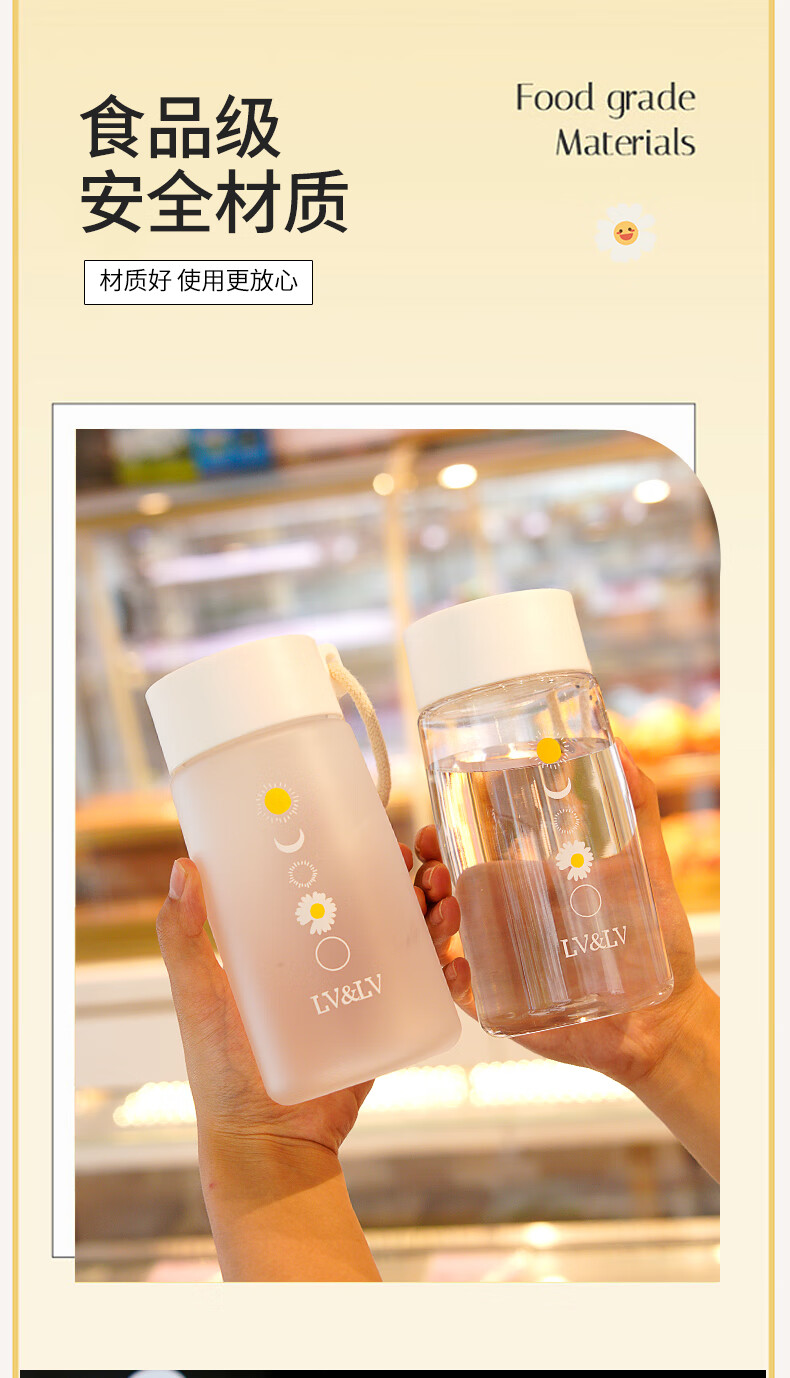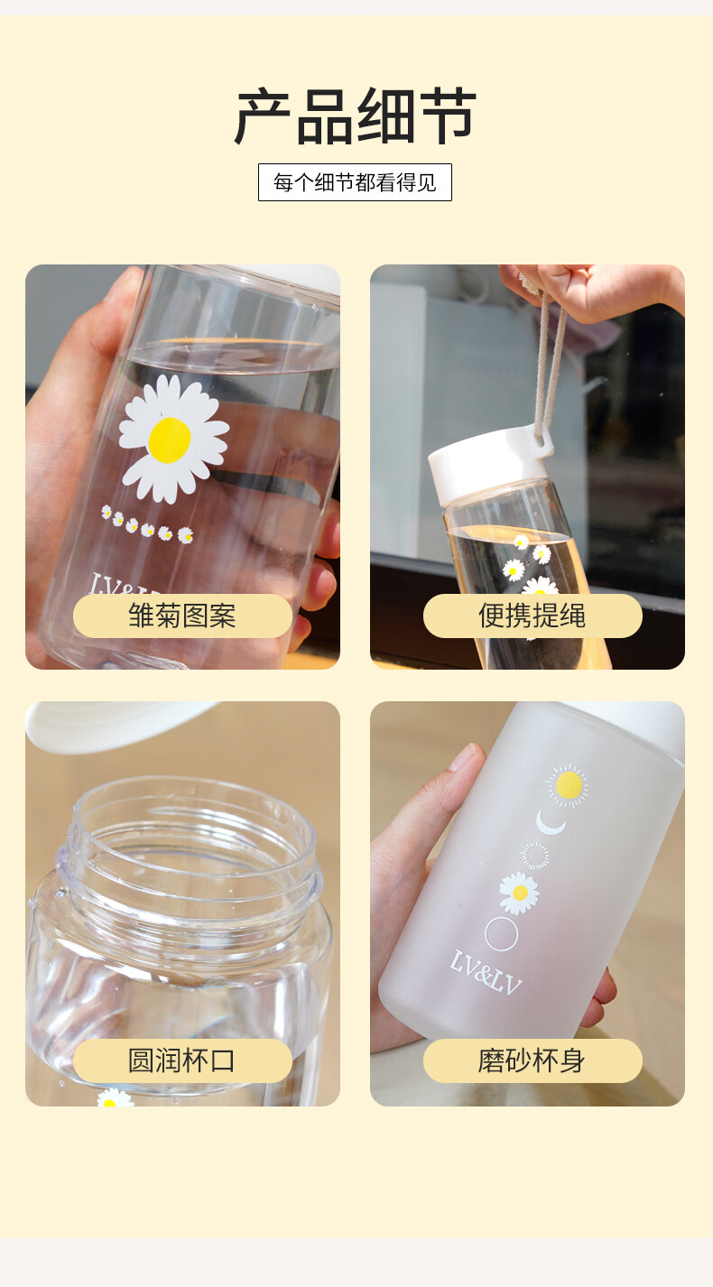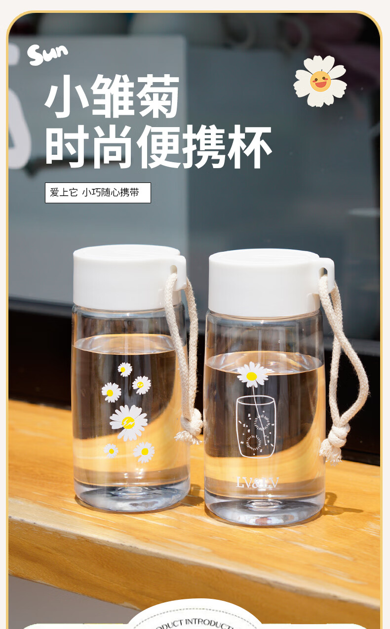 Daisy plastic cup, simple and creative, anti-fall water cup for male and female students, outdoor trendy forest cup, flower in cup (transparent) 480ml