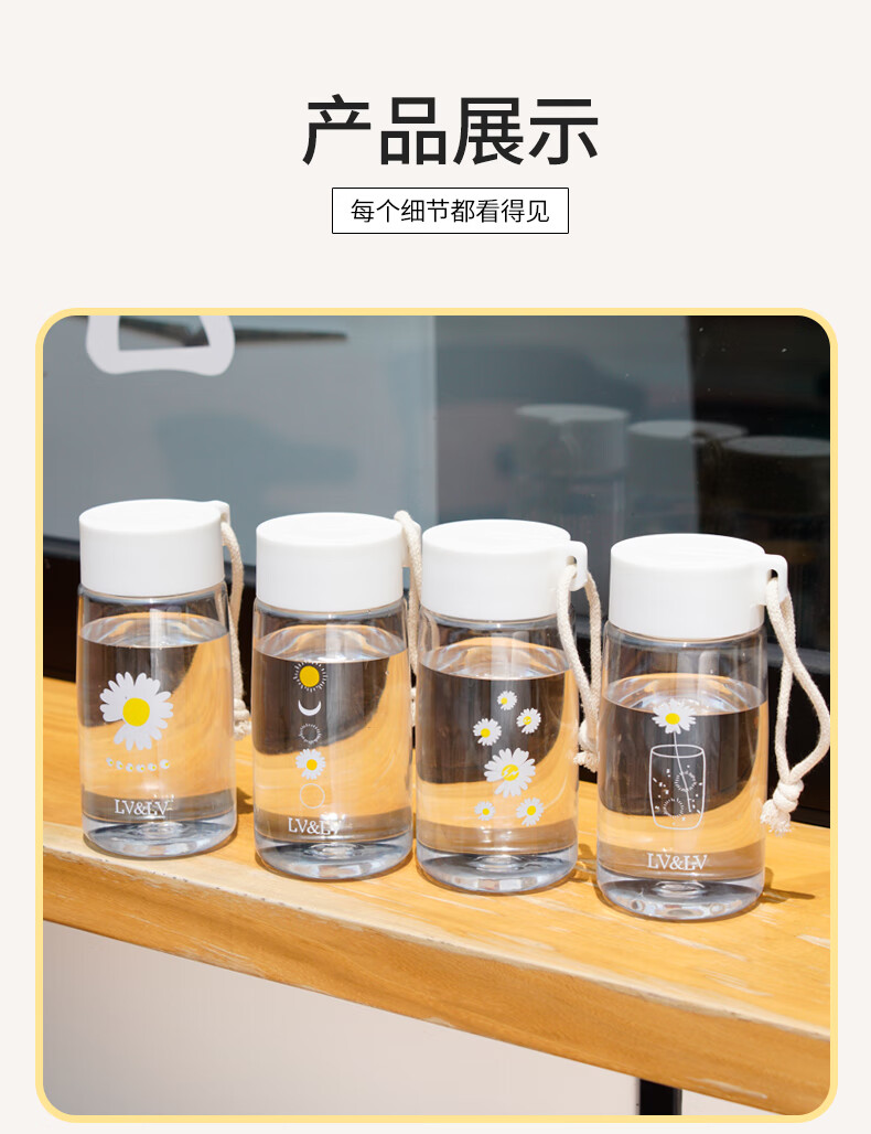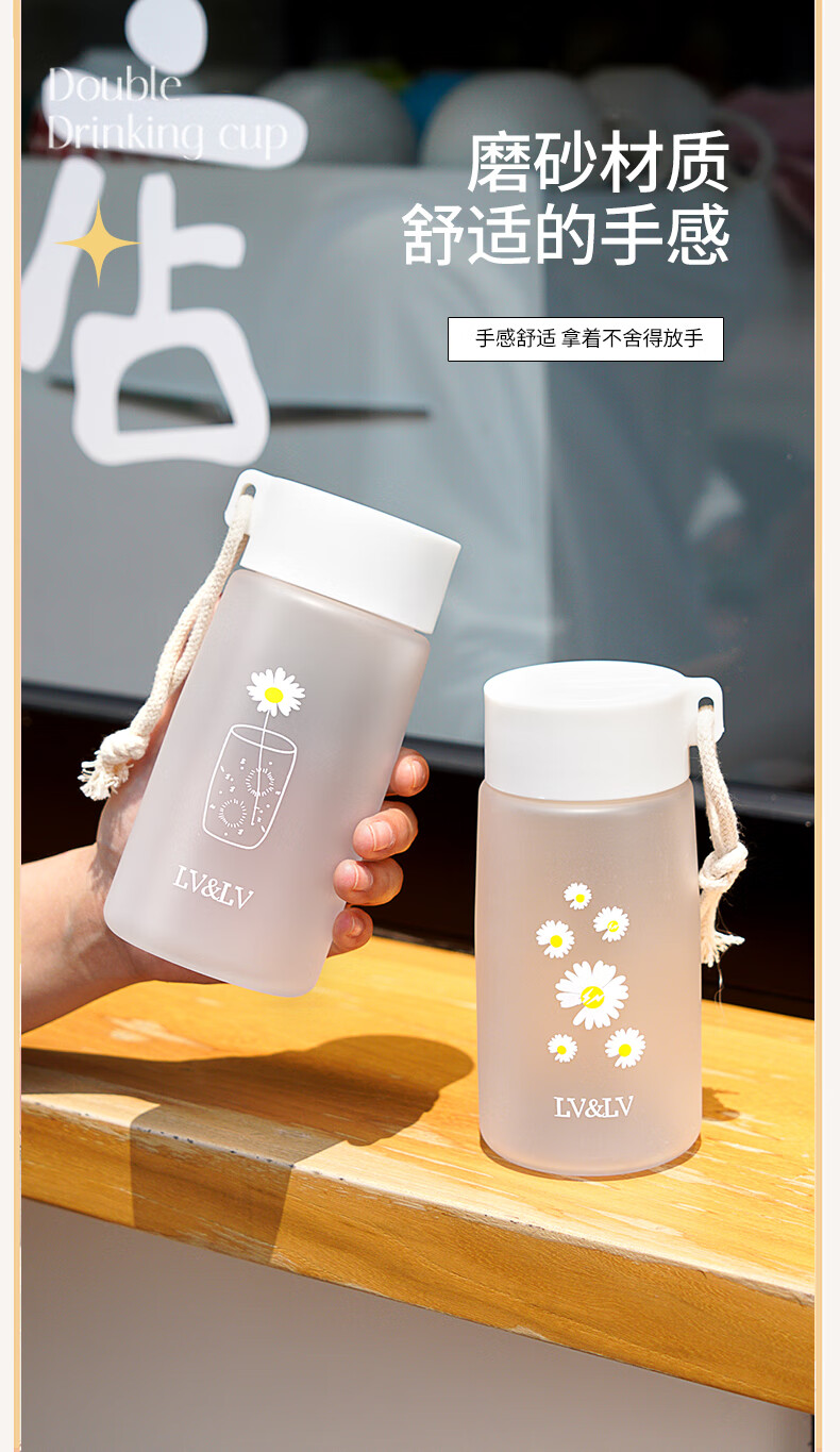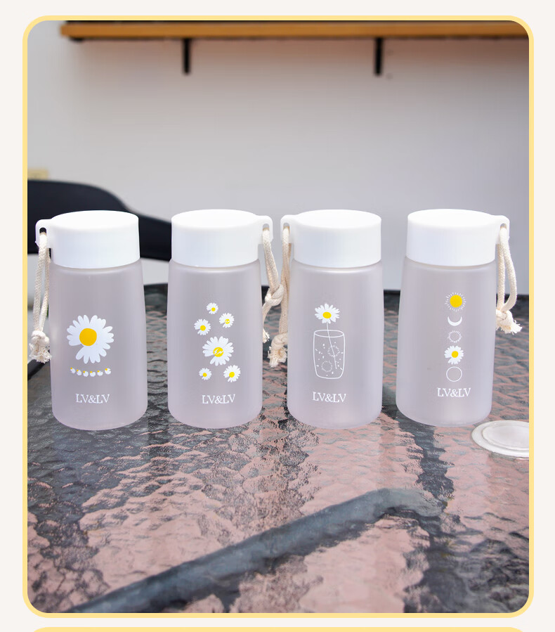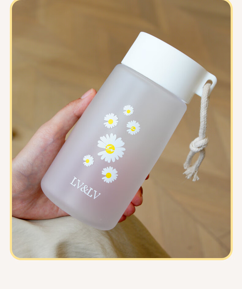 Daisy plastic cup, simple and creative, anti-fall water cup for male and female students, outdoor trendy forest cup, flower in cup (transparent) 480ml