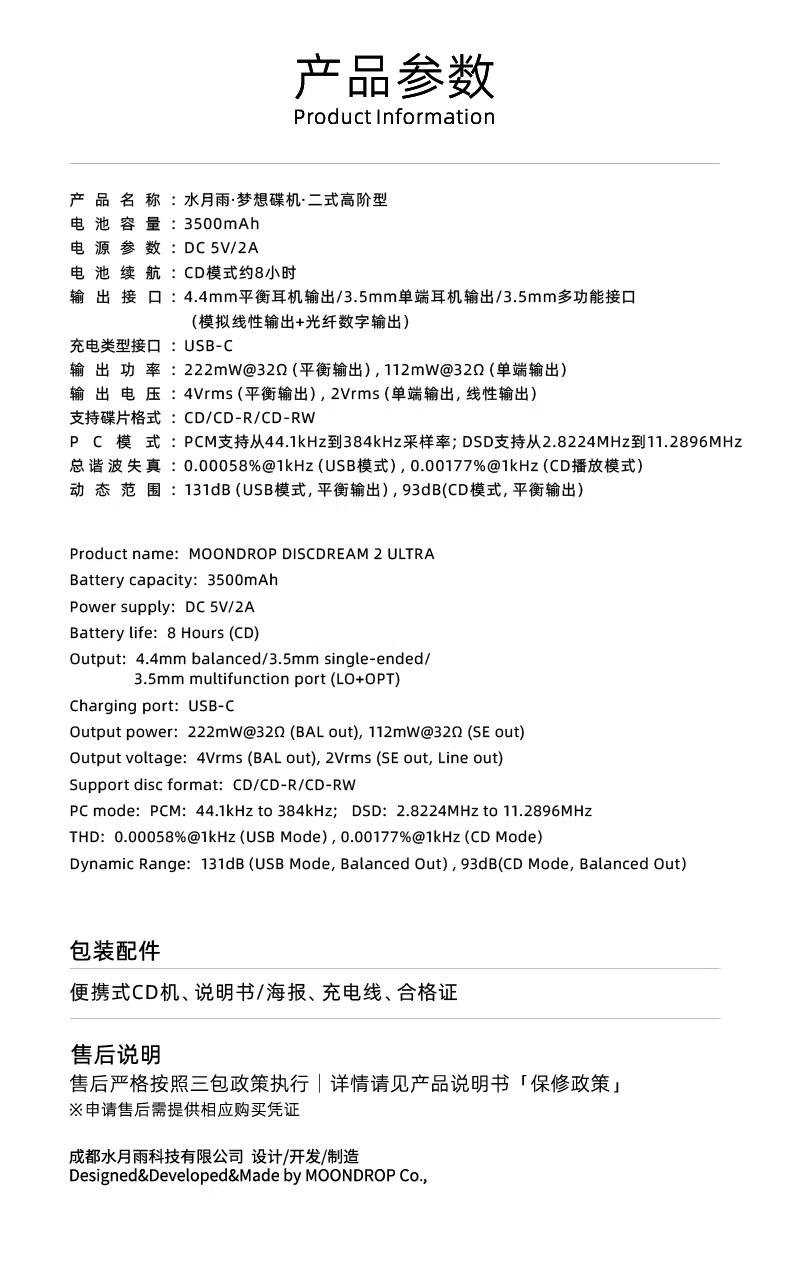 Shuiyueyu Dream Disc Player 2 ULTRA DiscDream2 CD player HiFi level fully balanced multi-purpose portable disc disc music player enthusiast level pocket for dreams storage bag