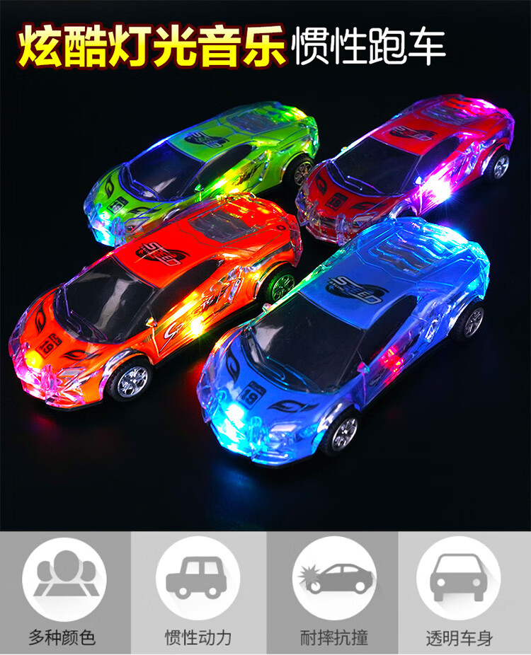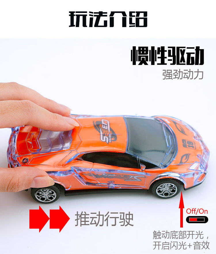 Boys car toy children's fall-resistant inertia car car 2 years old and 3 years old baby running racing model light music car 33905 inertia sound and light sports car (1 color mixed)