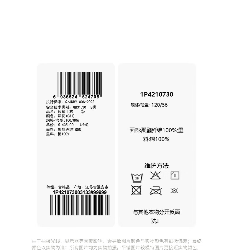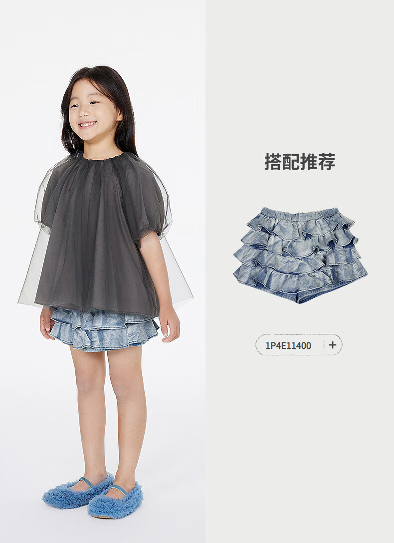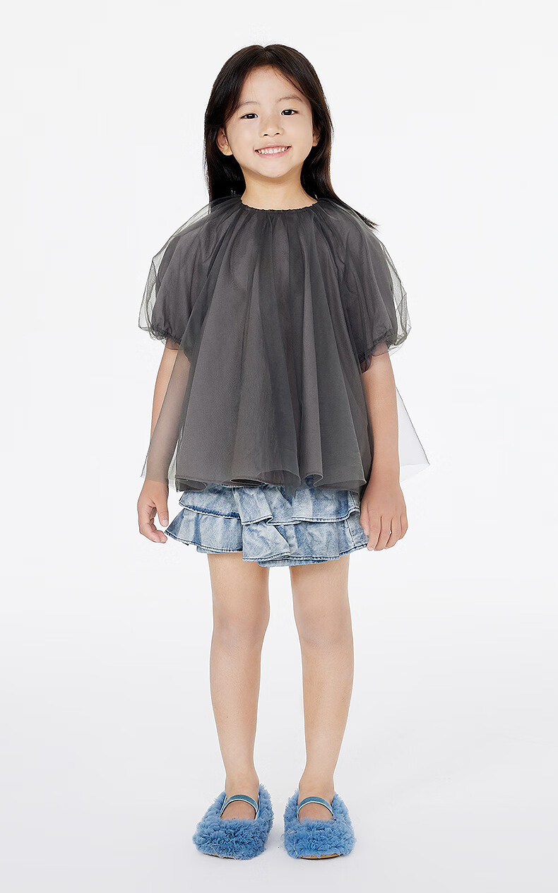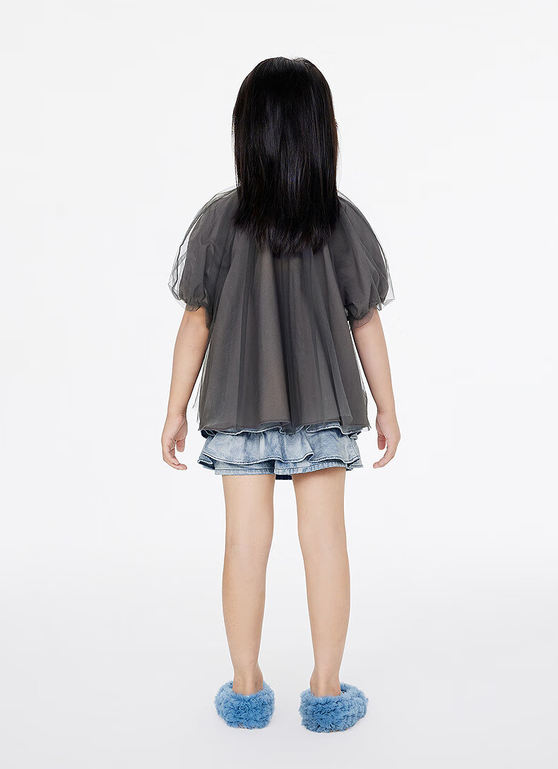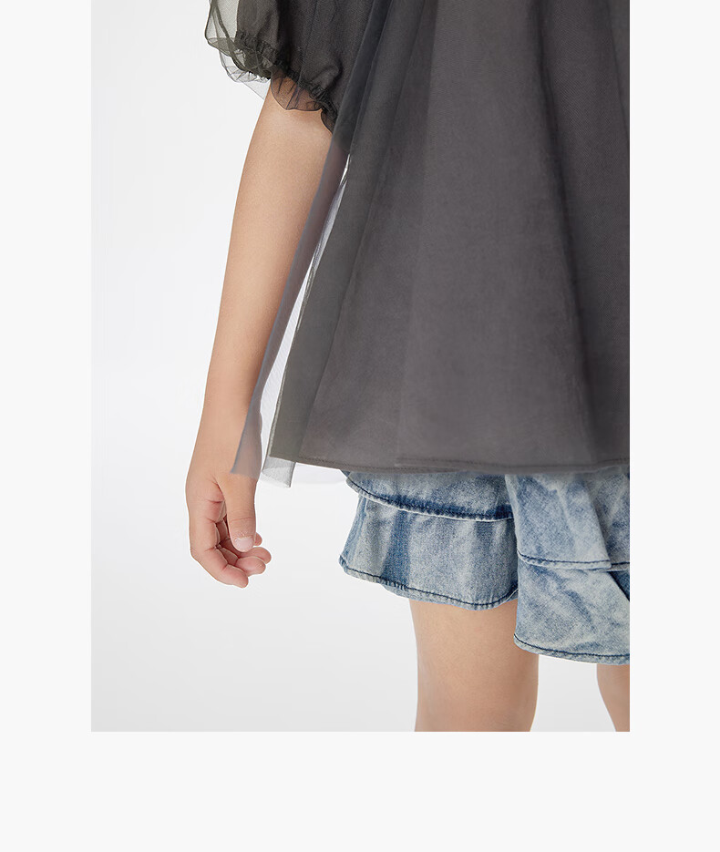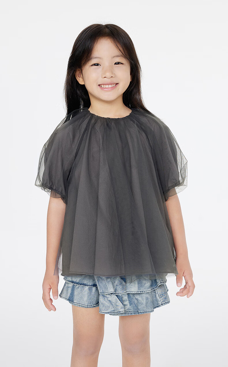 Jnby by JNBY Jiangnan Buyi children's clothing A-type short-sleeved shirt solid color round neck summer girls 1P4210730 031/dark gray 120 cm