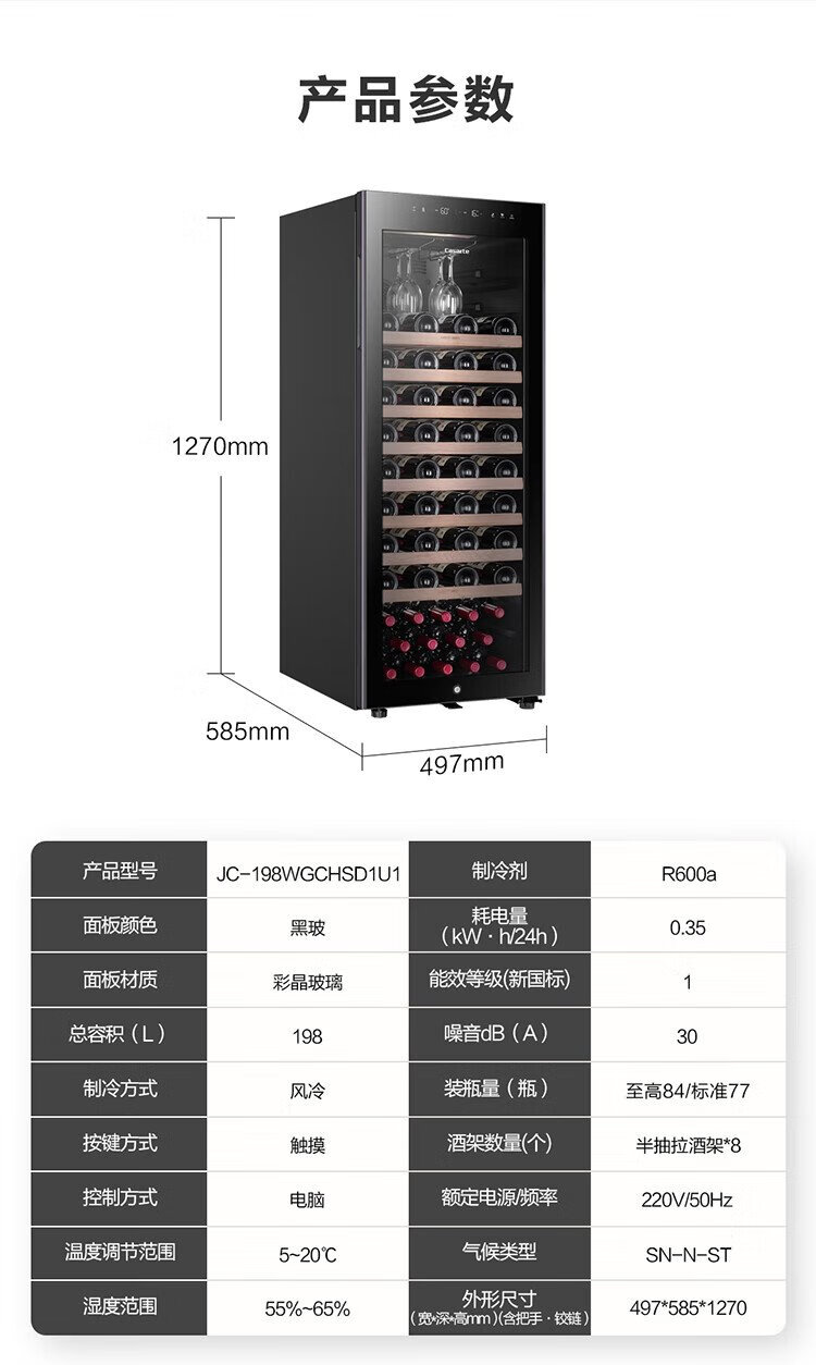 Casarte State Subsidy Wine Cabinet Home Display Cabinet Living Room Villa President Office Constant Temperature and Humidity Shockproof Cigar Tea Cabinet Red Wine Cigar Cabinet Refrigerator Fresh Cabinet Black 118L