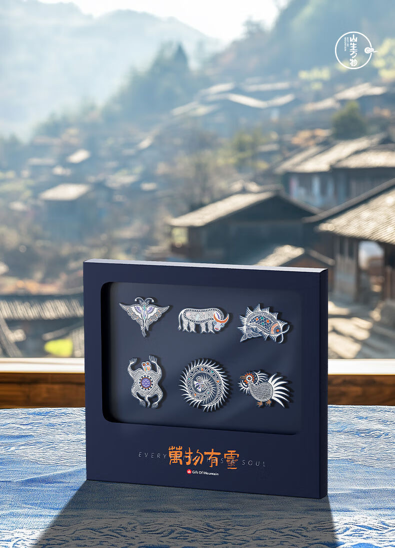 YWZR All things born in the mountains/blue intangible cultural heritage metal brooch corsage high-end retro Chinese style Guizhou Miao Village tourist souvenir butterfly pattern