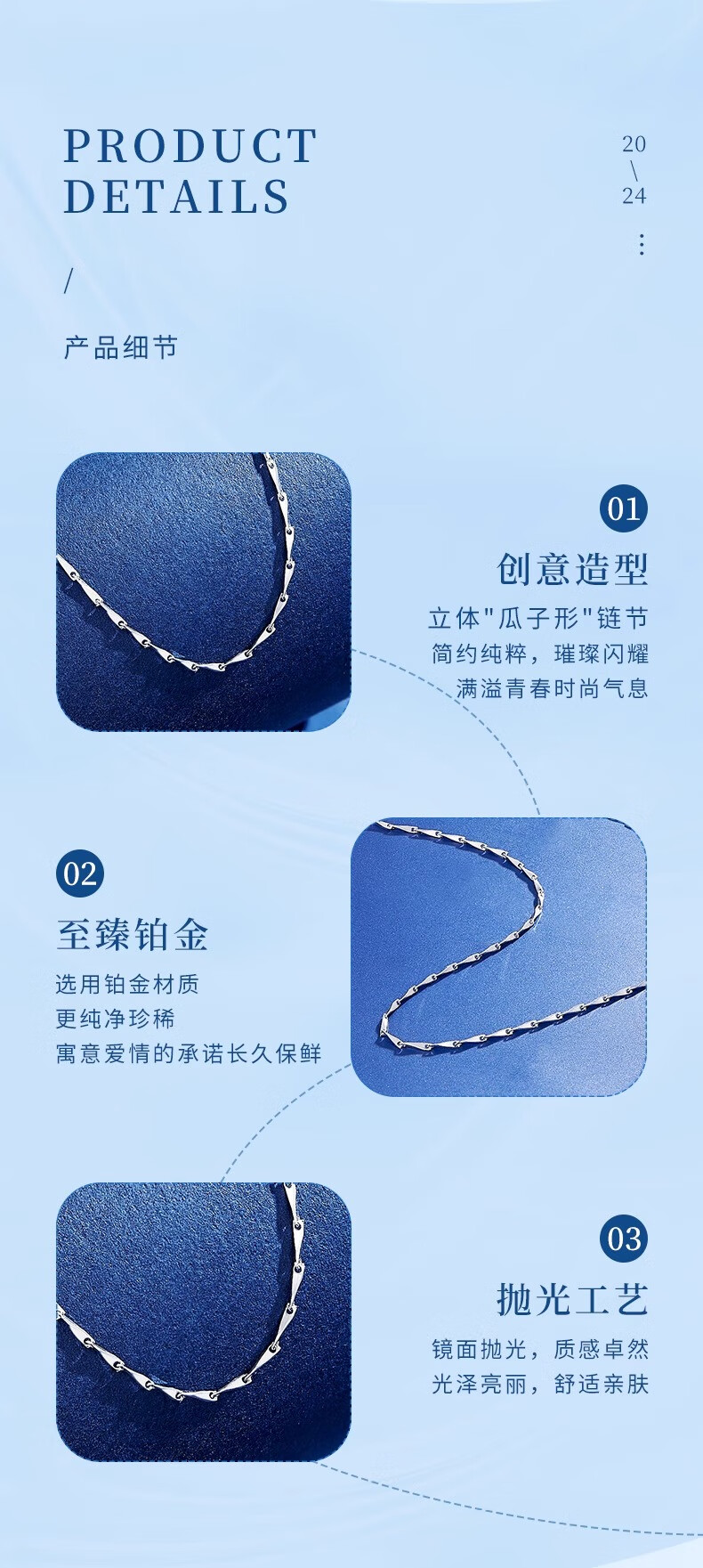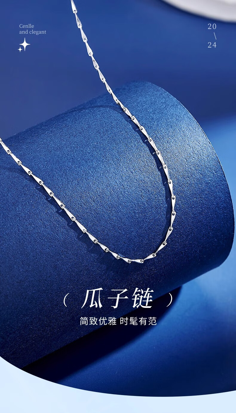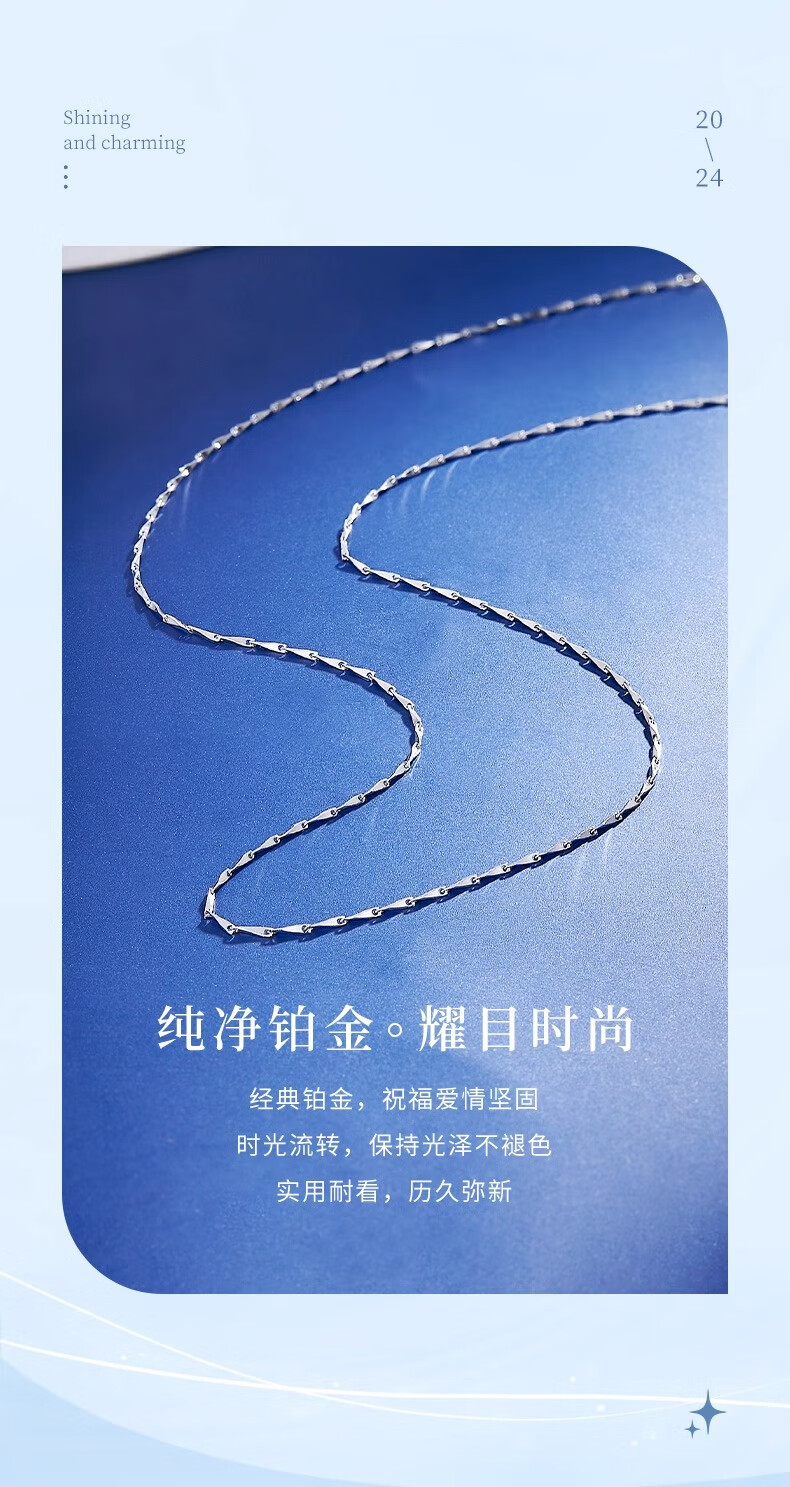 China gold PT950 platinum necklace for women platinum plain chain without pendant sweater clavicle chain holiday birthday gift for friends PT950 platinum melon seed chain about 3.5g