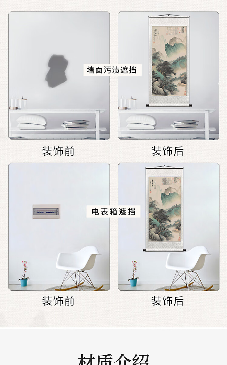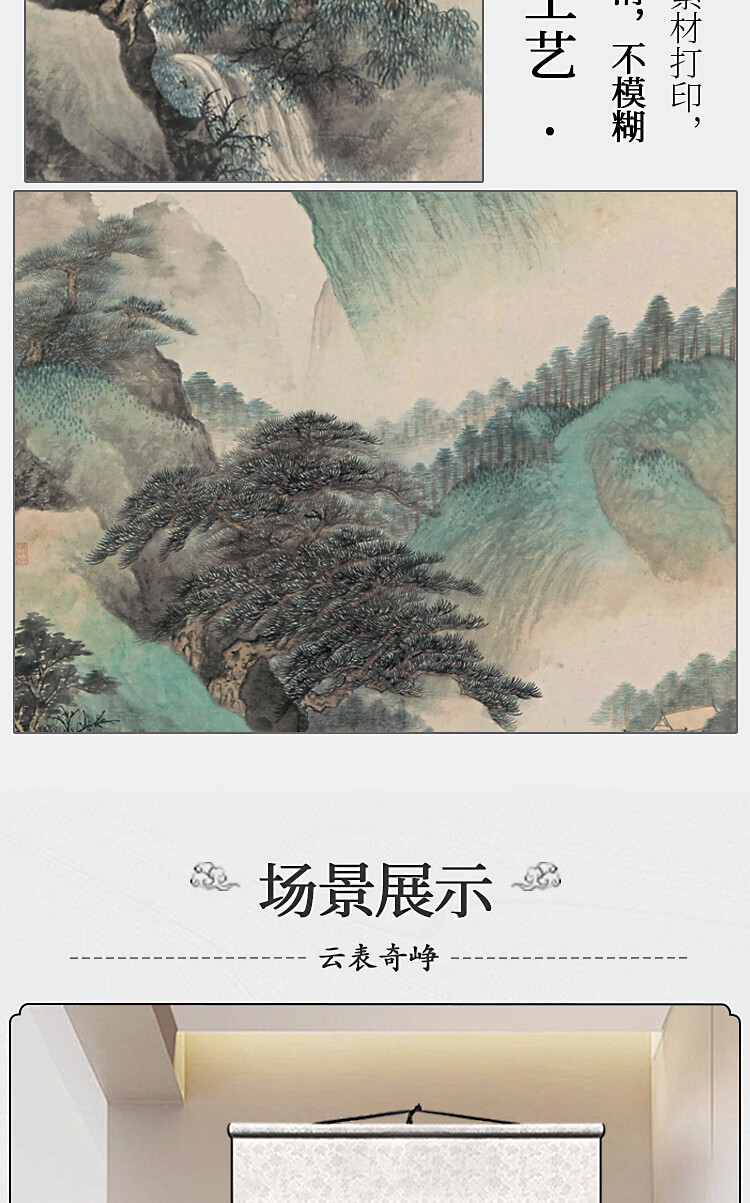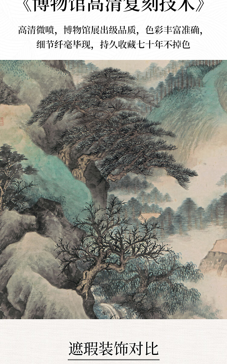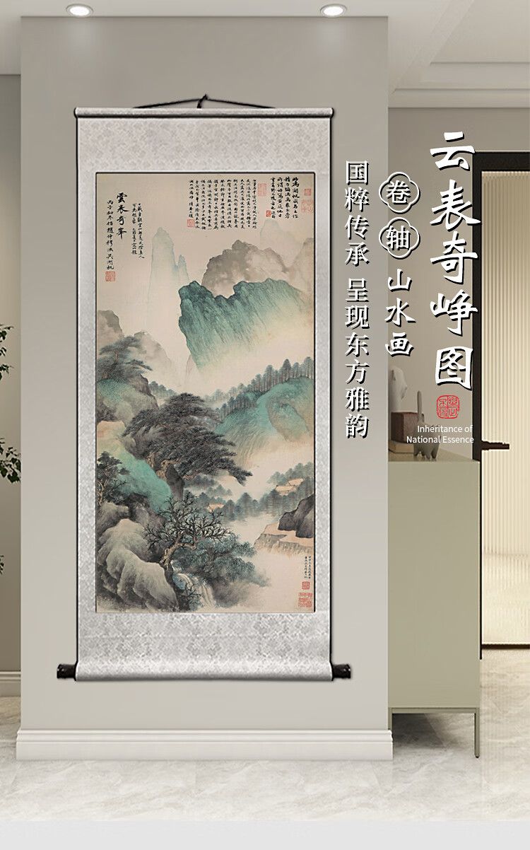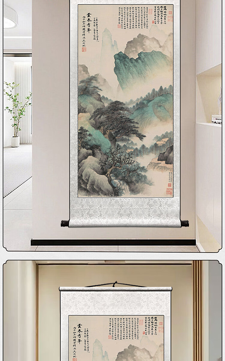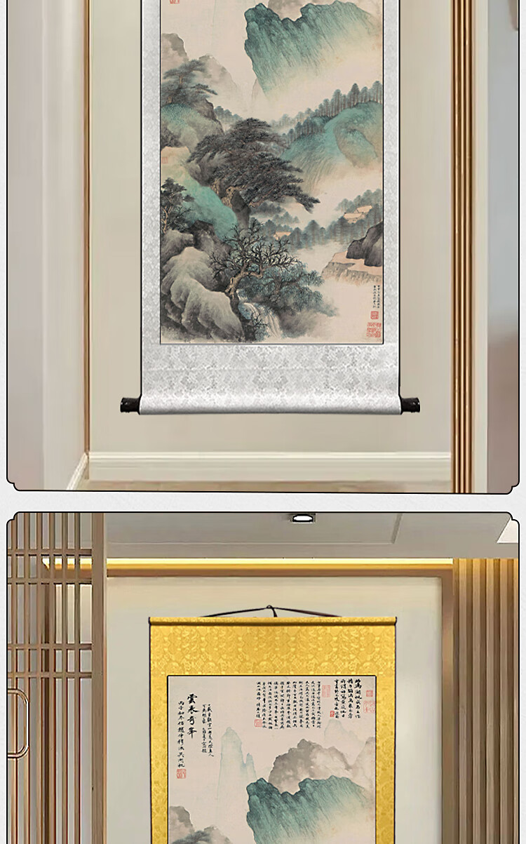 Shuwutang Wu Hufan landscape painting hanging painting celebrity ink green mountain scenery picture guest restaurant entrance tea room study room decoration calligraphy and painting cloud table Qizheng-Wu Hufan-vertical version-silver white overall size Width 50 cm Height 100 cm (comes with hook)