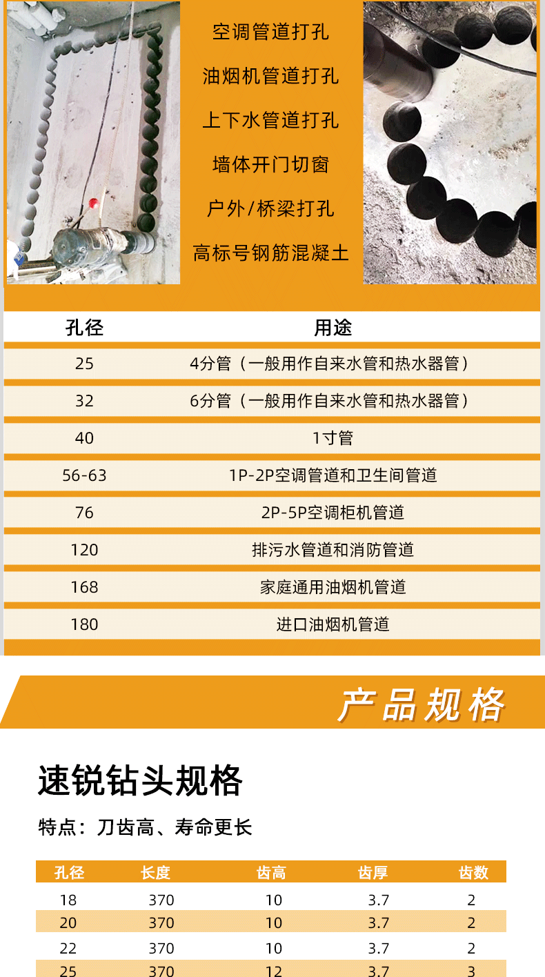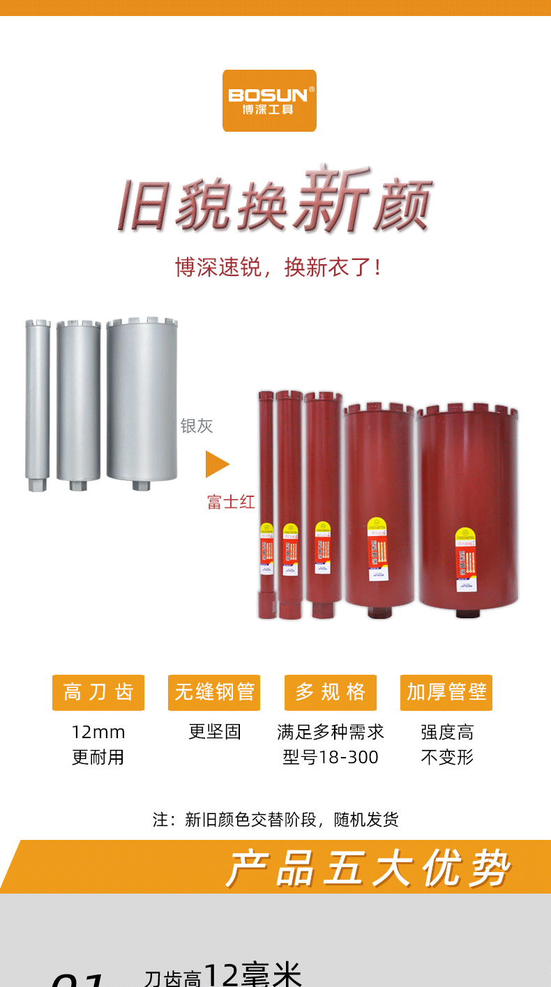 Bosun Tools Water Drill Bit Air Conditioning Water Drill Machine Concrete Wall Opening Hole Punch Diamond Water-to-Rhinestone Drill Bit 160 350mm Red Model