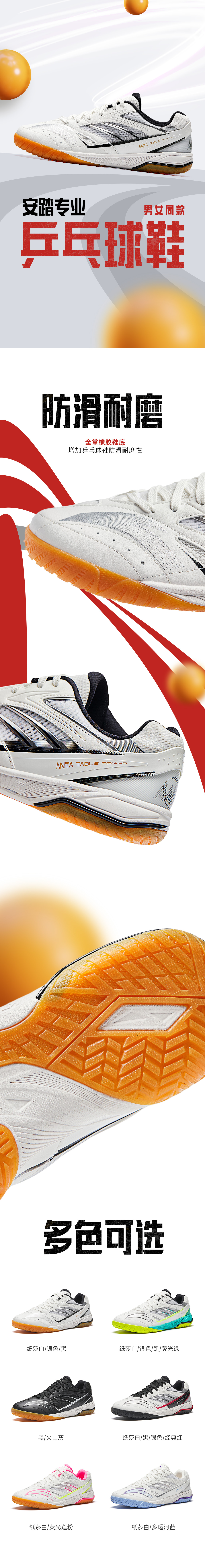 ANTA Rotor丨Table tennis shoes for men and women, autumn non-slip, wear-resistant, breathable training shoes, practical sports shoes, Papery White/Danube Blue-6 37.5