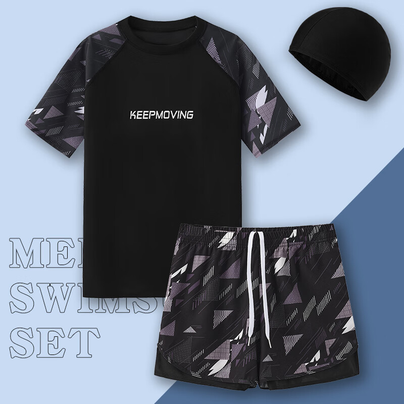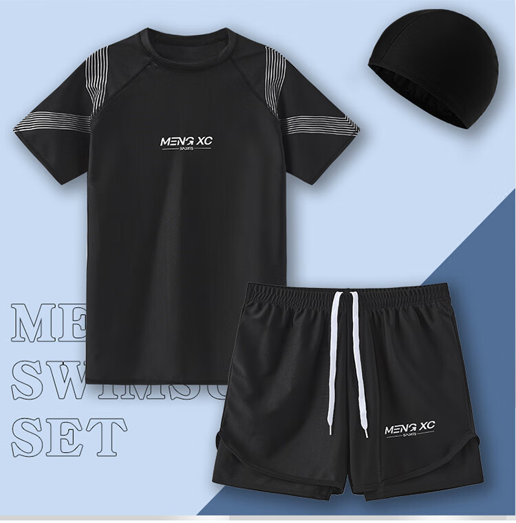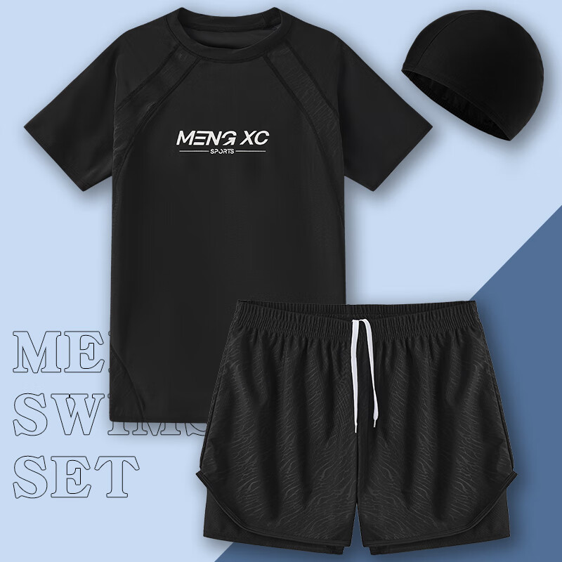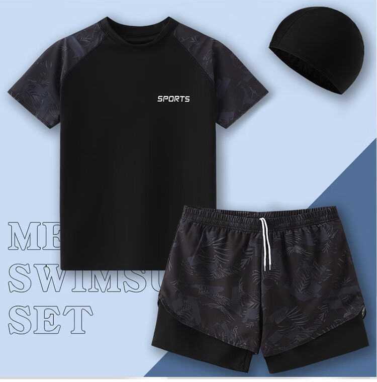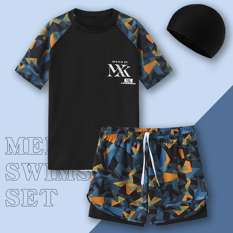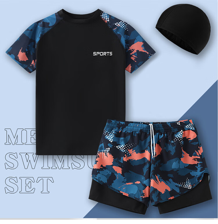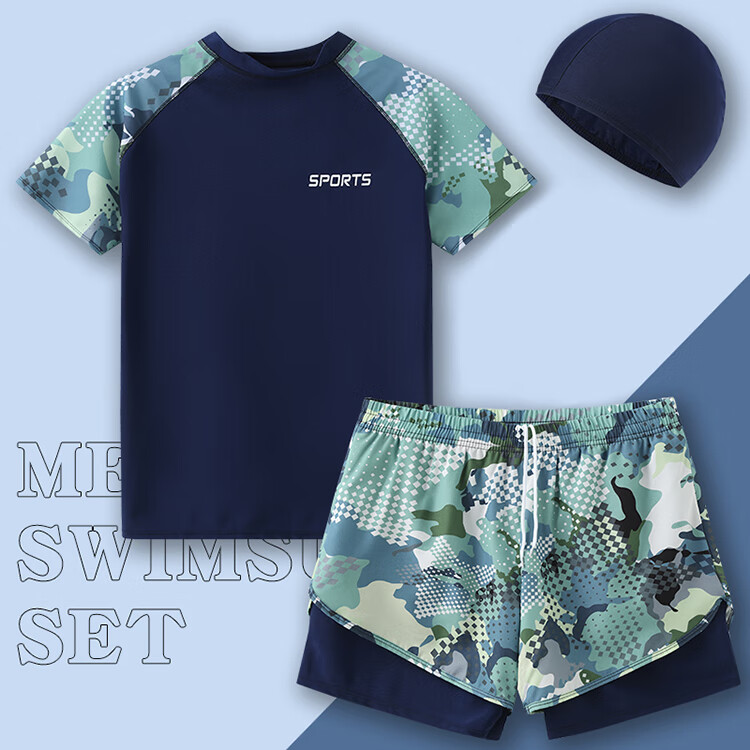 Manson Snow Lotus Swimsuit Men's 2025 New Anti-Embarrassing Swimming Pants Hot Spring Tops Boys Full Equipment Men's Swimsuit Suit 9807-Blue Camouflage Storage Bag Six-piece Set 888 XL 180 (160-190Jin Jin is equal to 0.5 kg)
