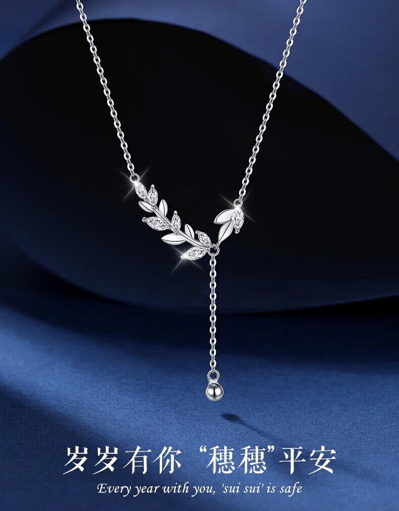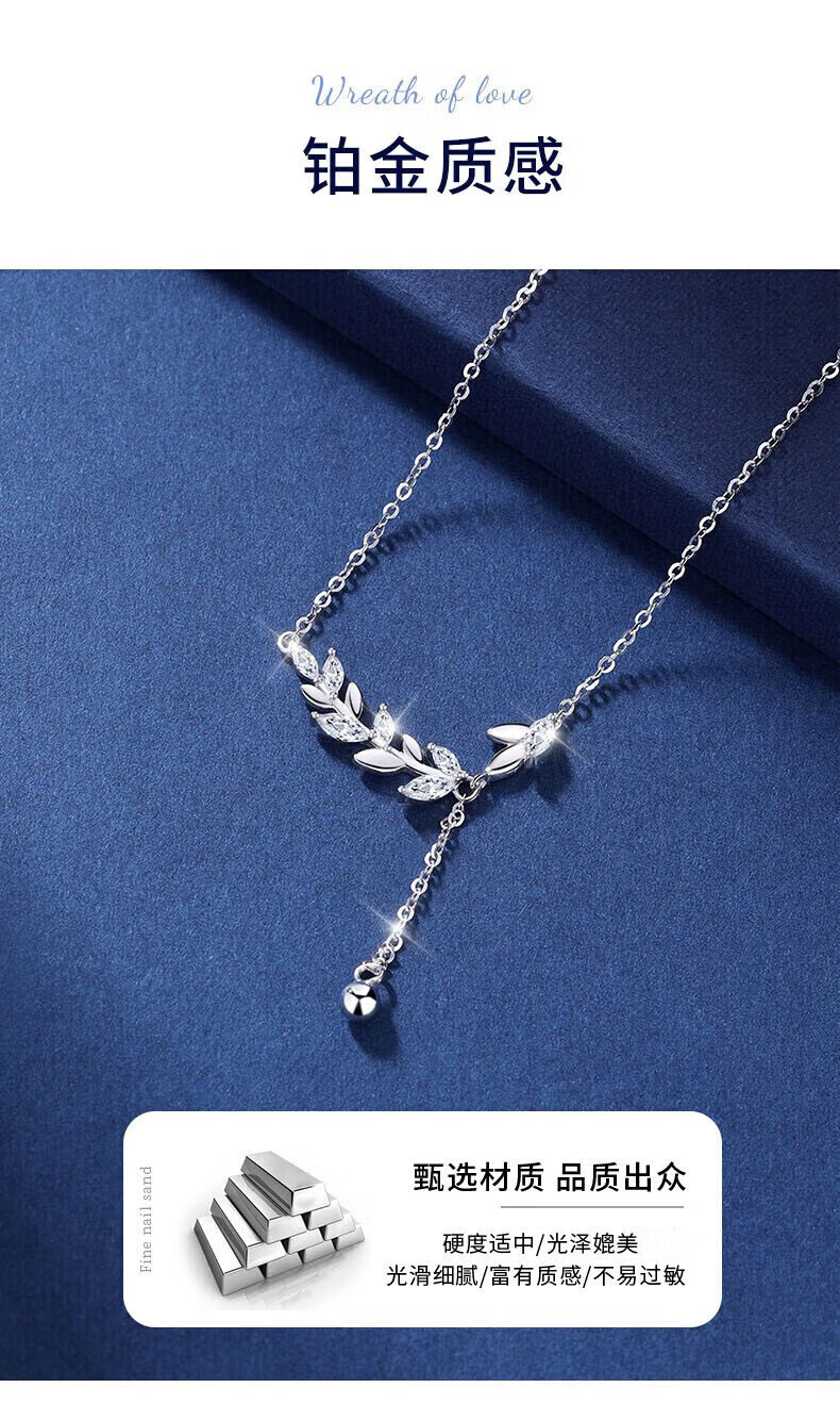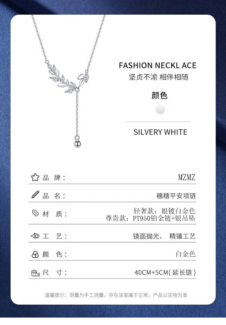 MZMZ wheat ear platinum necklace women's pt950 platinum neck chain clavicle chain Valentine's Day birthday gift for girlfriend and wife light luxury model - local warehouse tomorrow delivery/wheat ear necklace