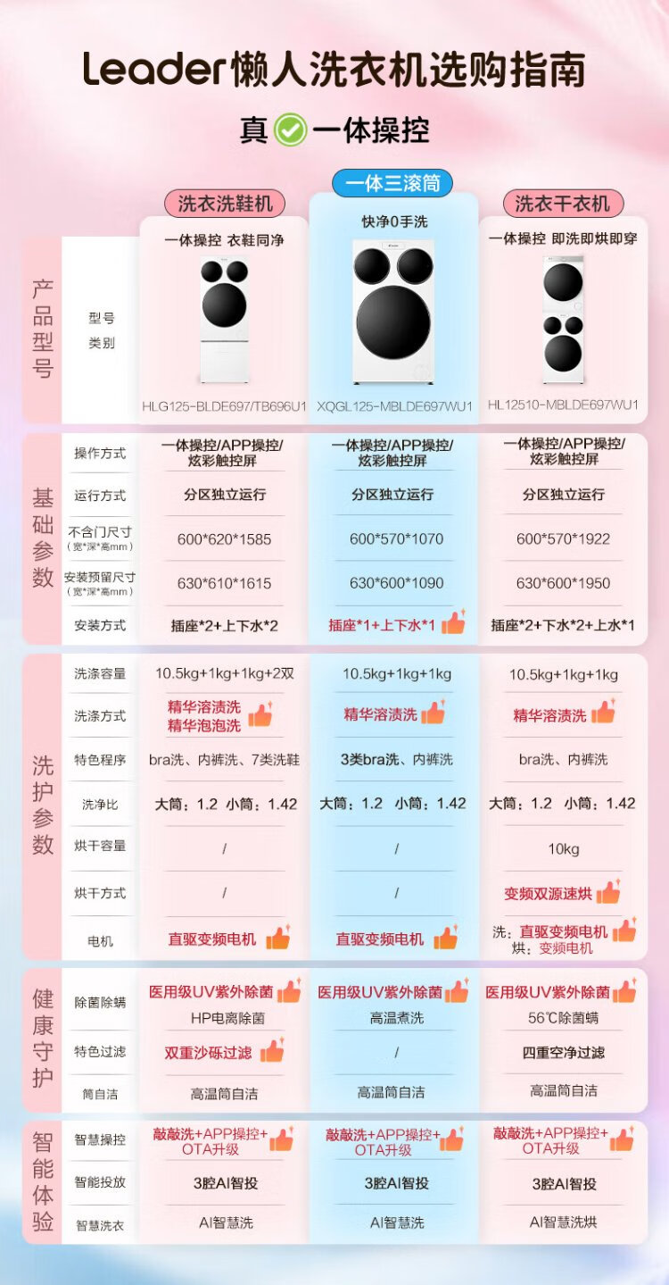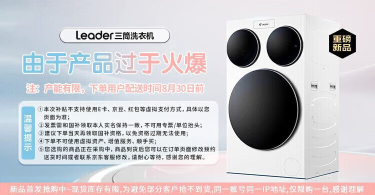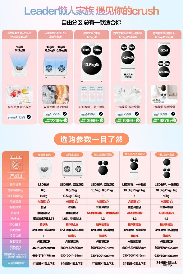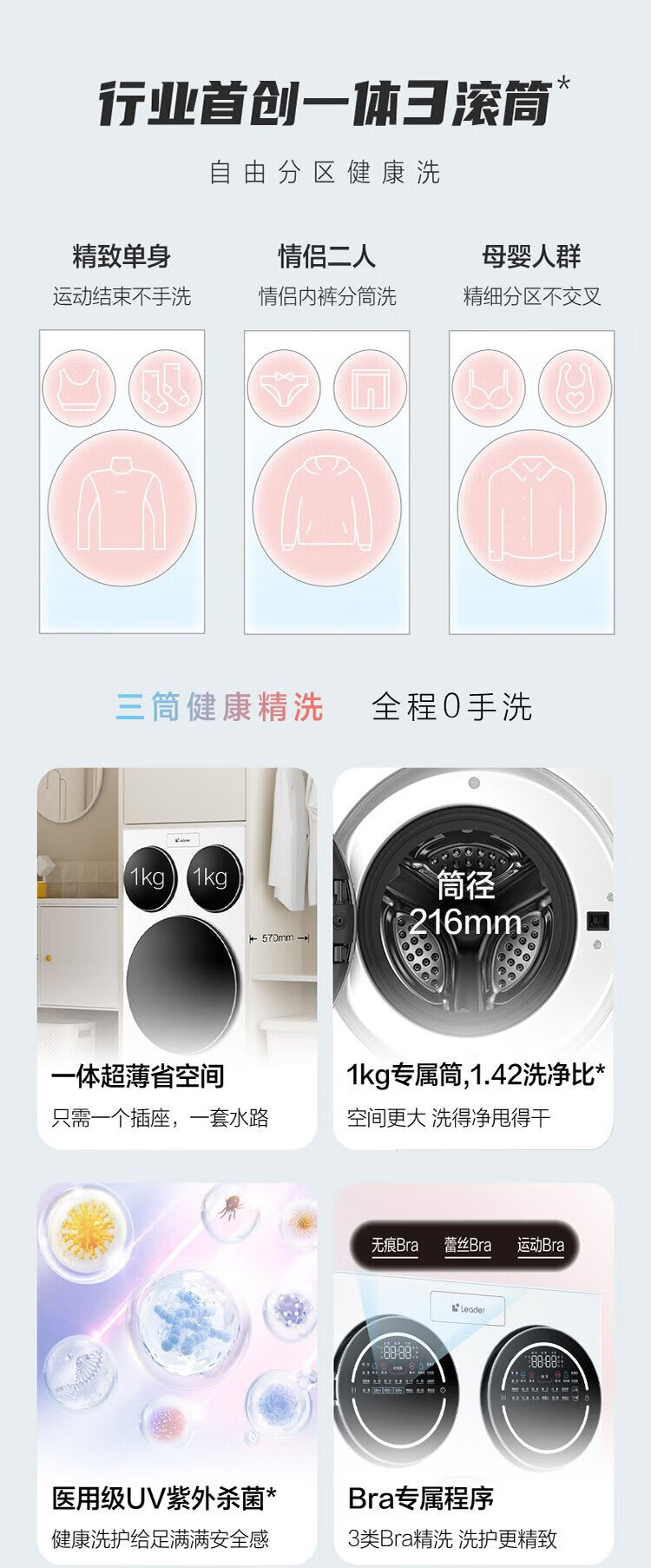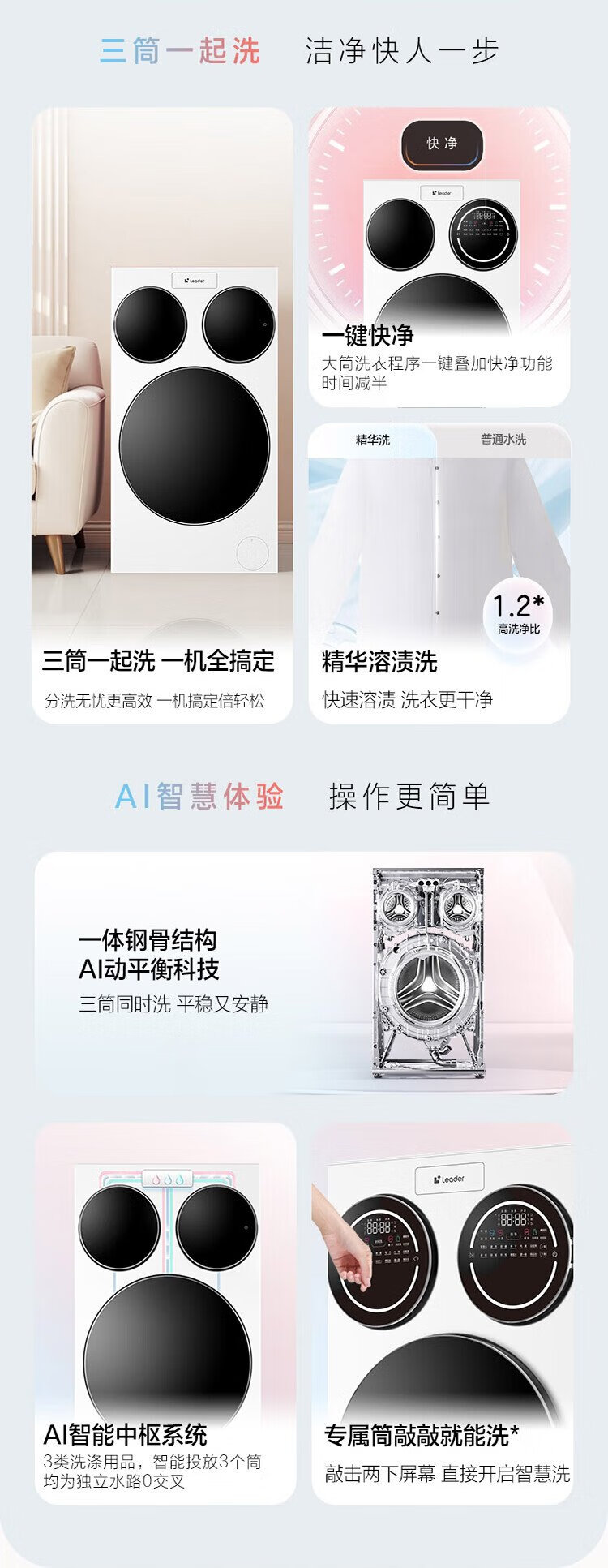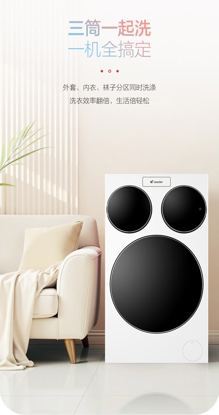 Leader lazy three-tub washing machine ProMax, replacement subsidy and extra pounds, quick clean 0 hand wash, fully automatic washing machine, produced by Haier Smart Home, zoned washing, same model as Lin Gaoyuan, three-tube