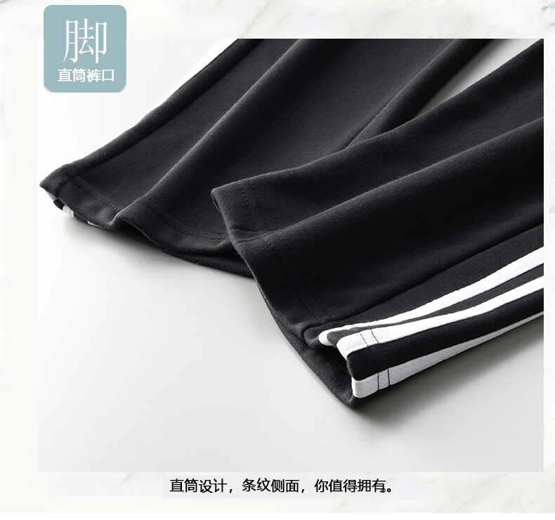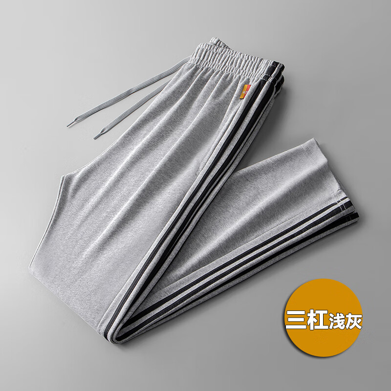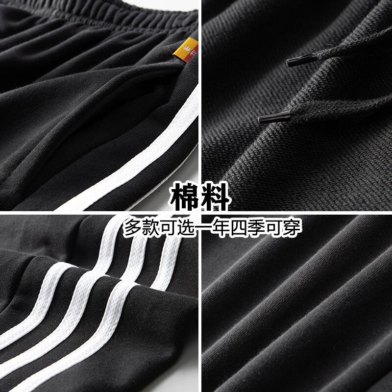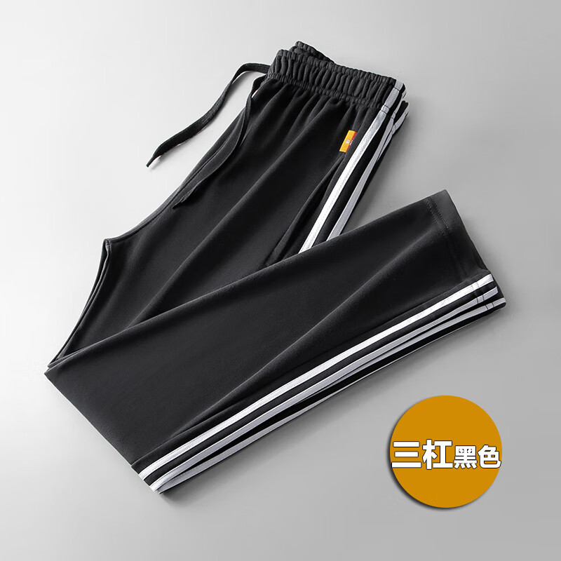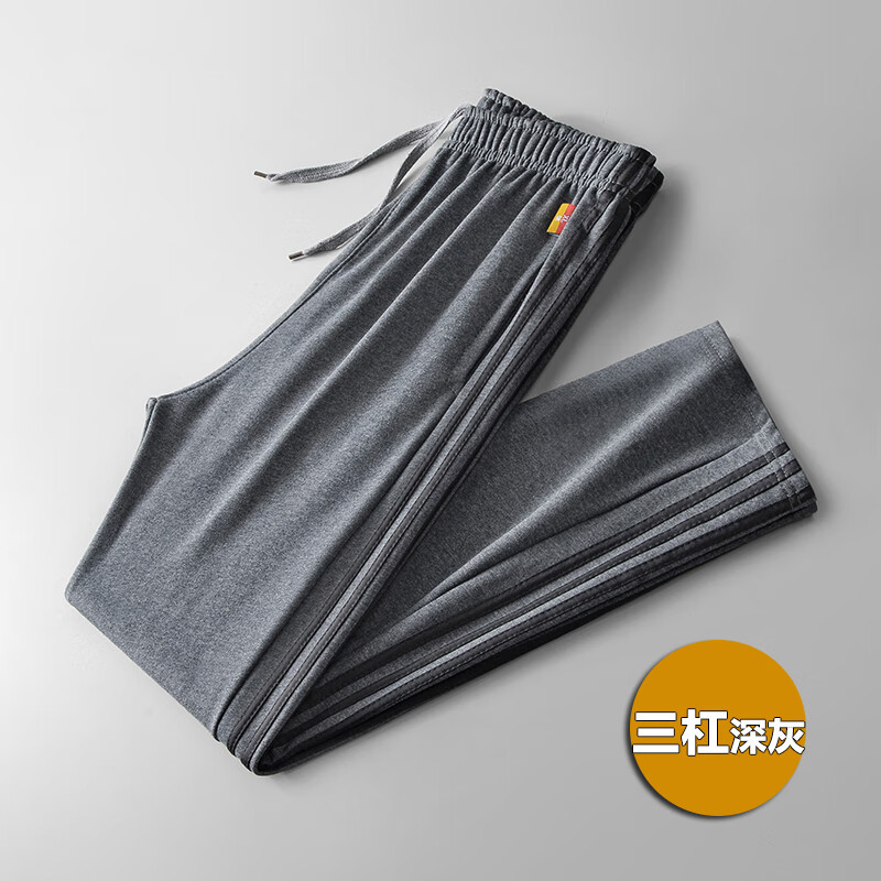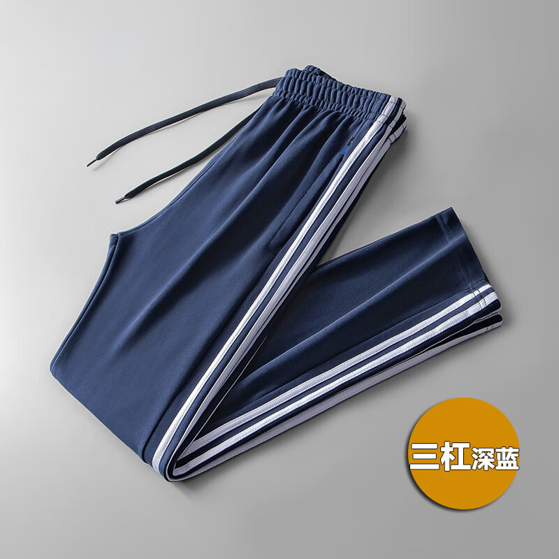 ROMON spring striped sports pants men's cotton versatile loose straight casual pants wide leg pants men's trousers dark blue summer thin three-bar straight XL size 135-165 Jin Jin equals 0.5 kg wear