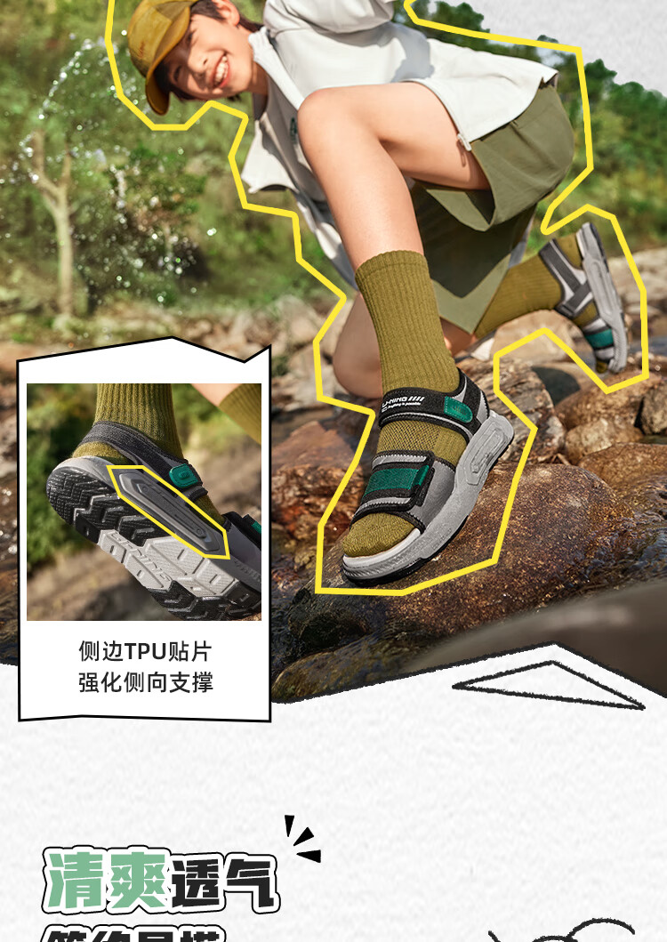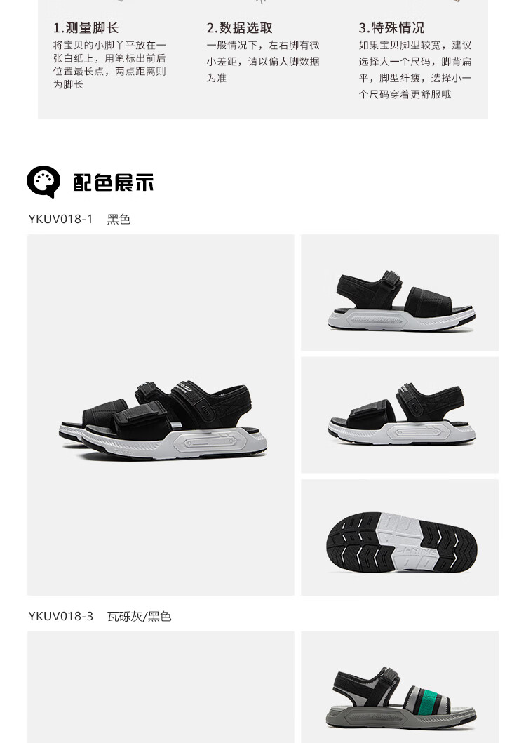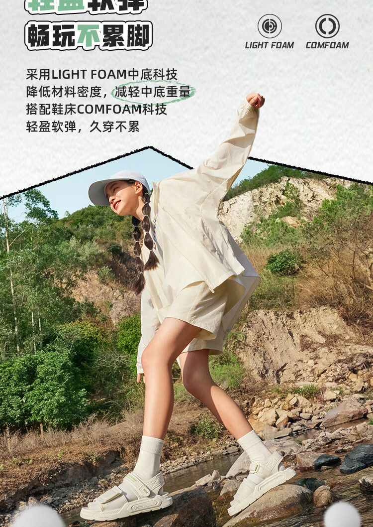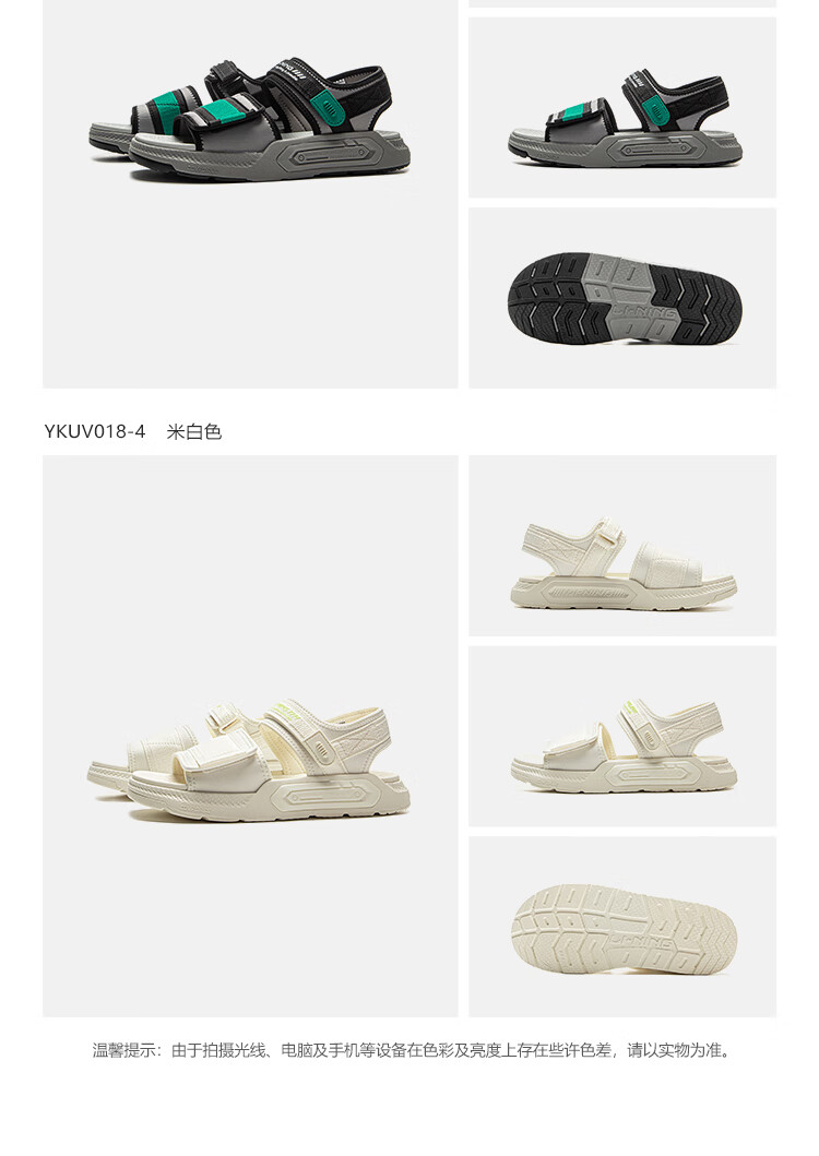 Li Ning Children's Shoes Children's Sandals Men's and Women's Lightweight Soft Velcro Sports Sandals YKUV018 Rubble Gray/Black-3 32
