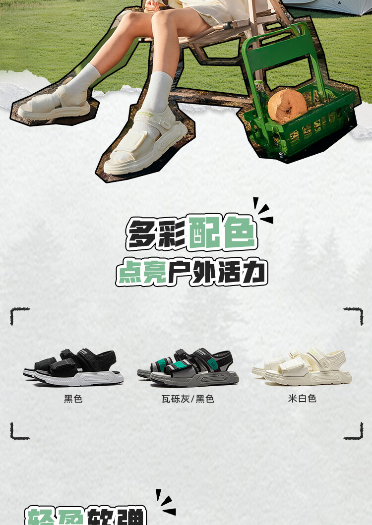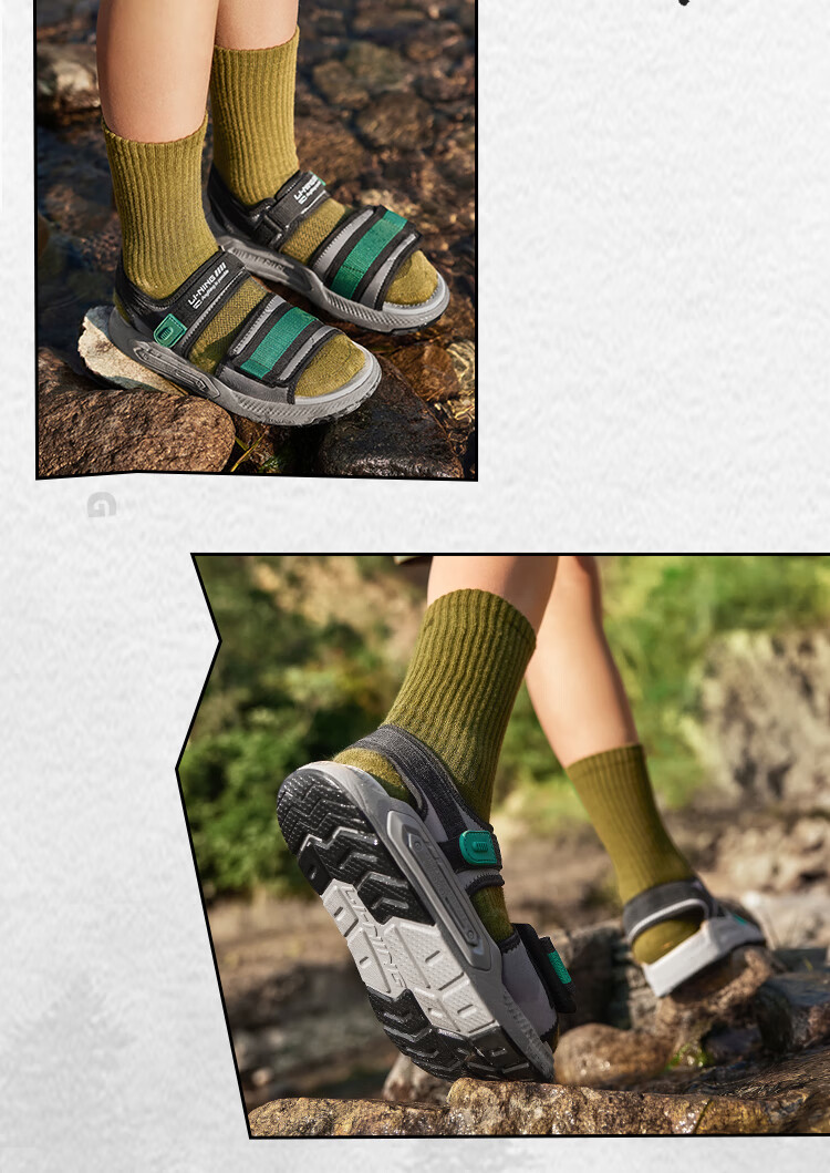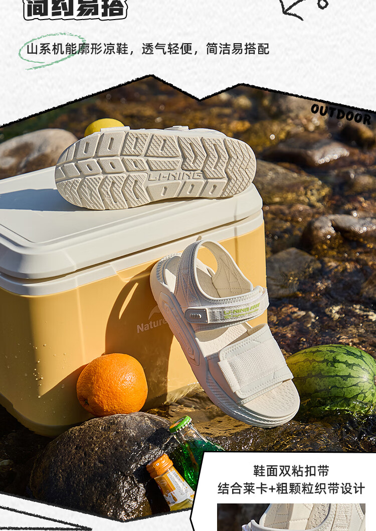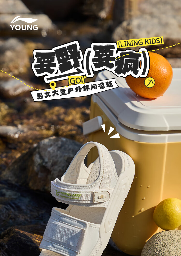 Li Ning Children's Shoes Children's Sandals Men's and Women's Lightweight Soft Velcro Sports Sandals YKUV018 Rubble Gray/Black-3 32