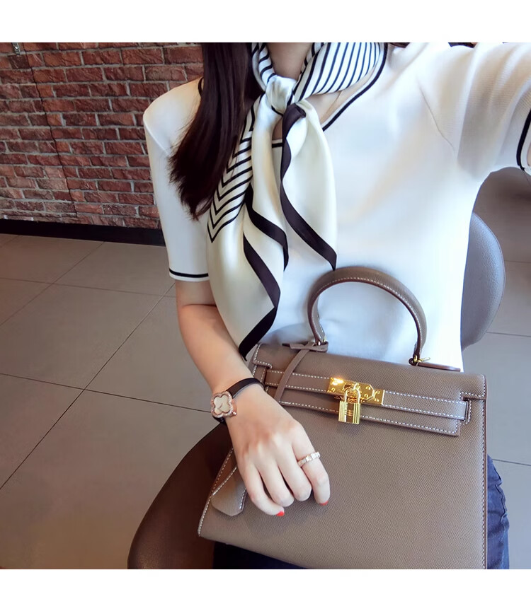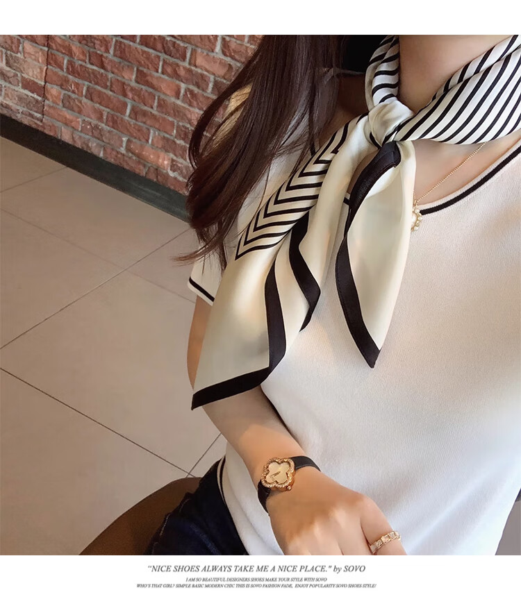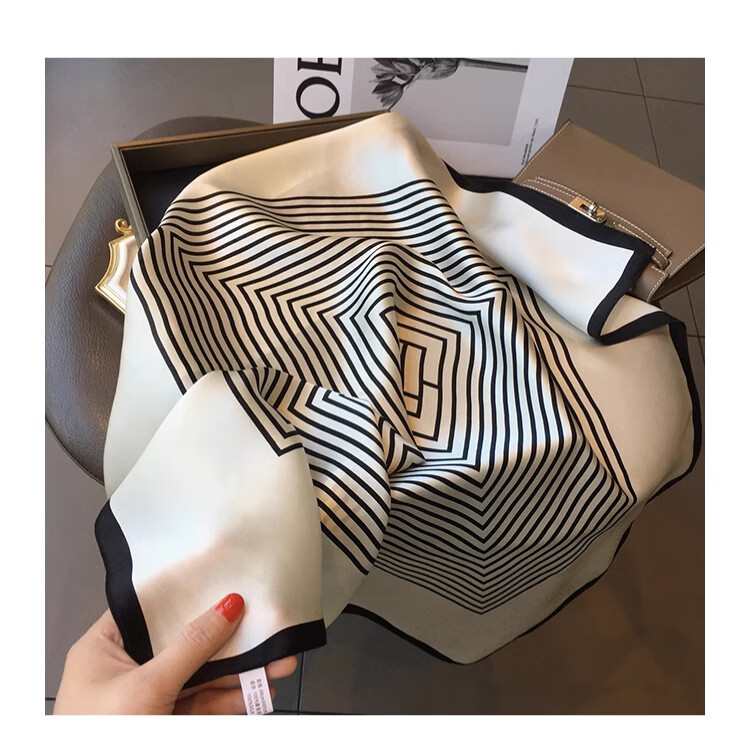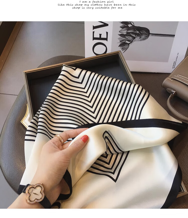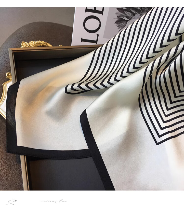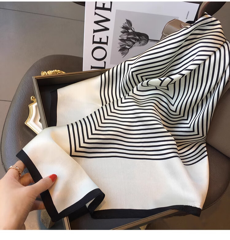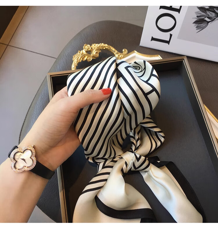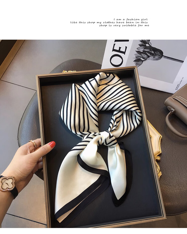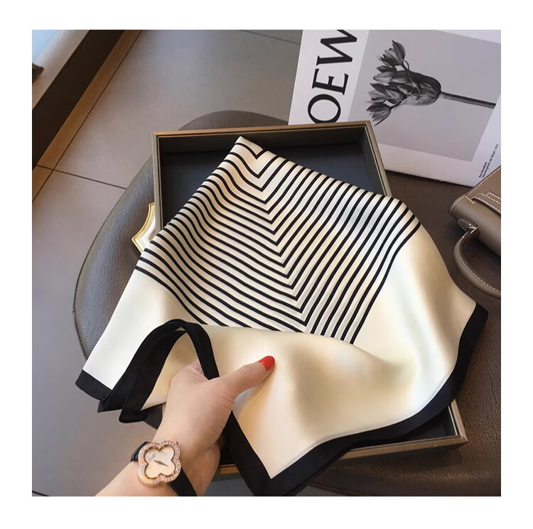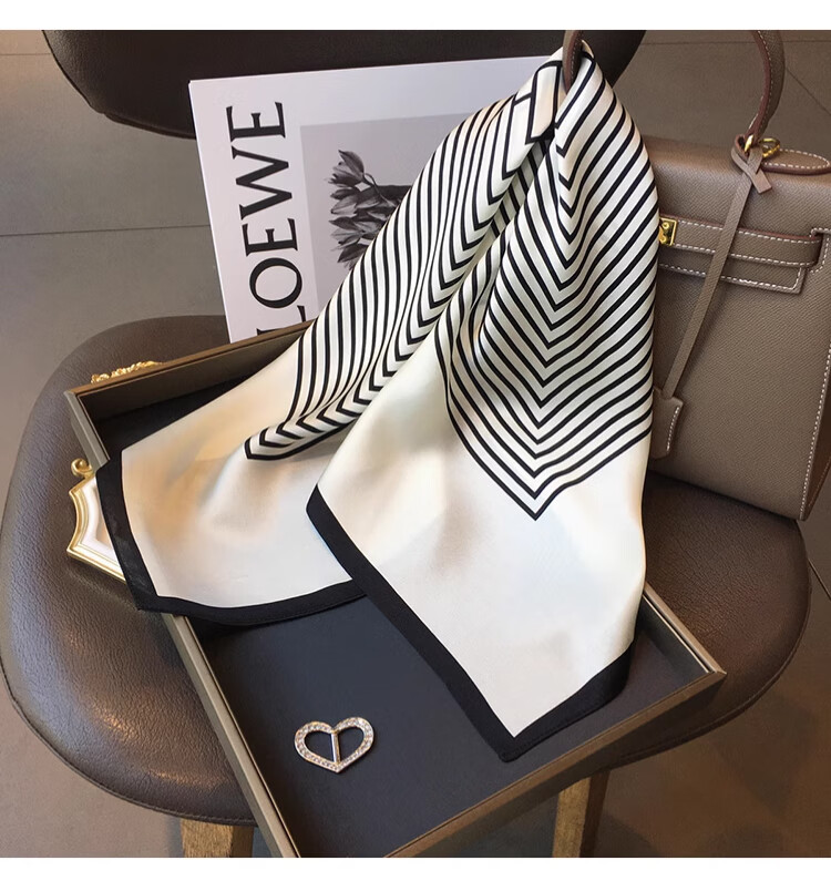 Calznklien silk scarf 100% mulberry silk small square scarf fake collar shawl birthday gift for mother leader souvenir off-white striped high-end gift box high-end
