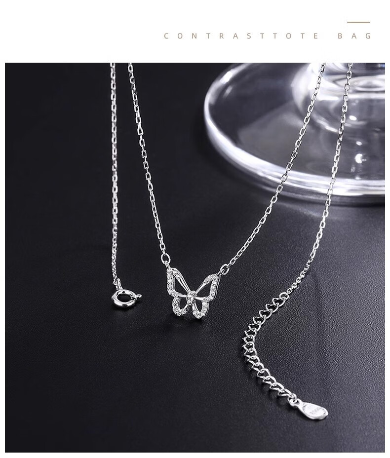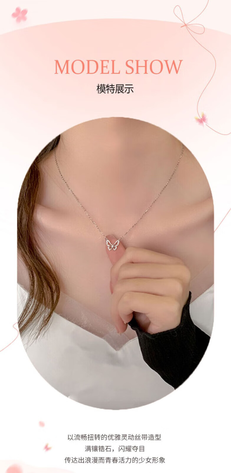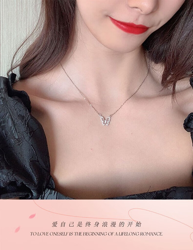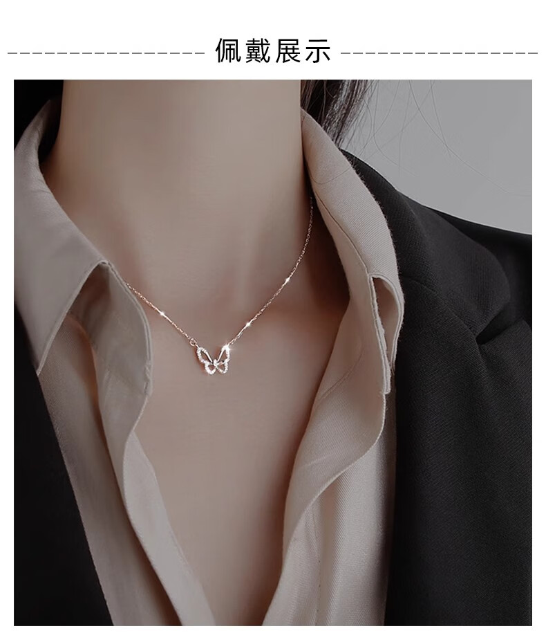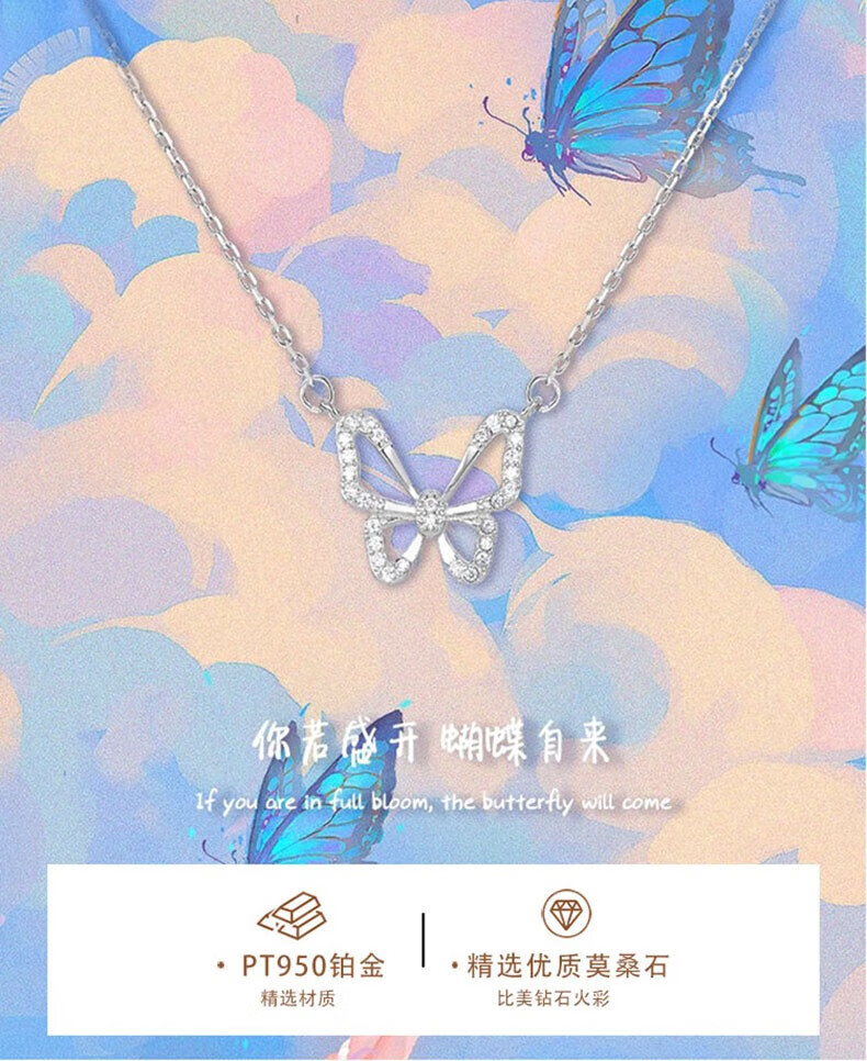 MZMZ Butterfly Platinum Necklace Women's pt950 Platinum Necklace Clavicle Chain Valentine's Day Birthday Gift for Girlfriend or Wife Premium Model-Local Warehouse Tomorrow Delivery/Butterfly Necklace
