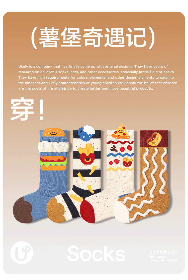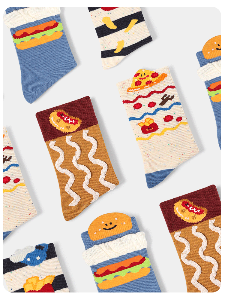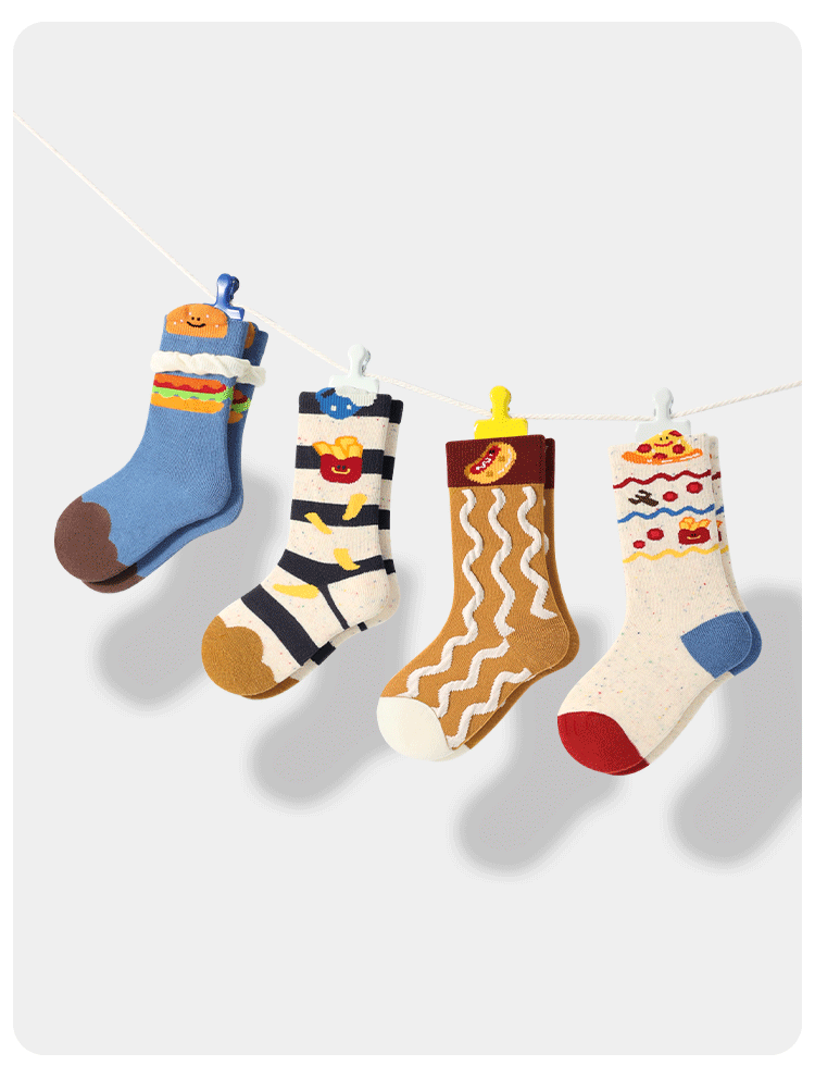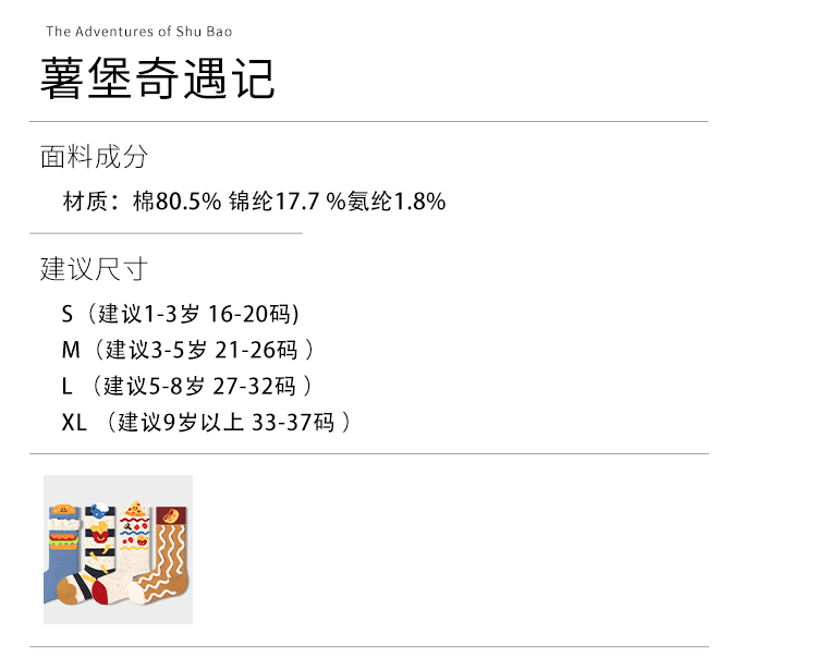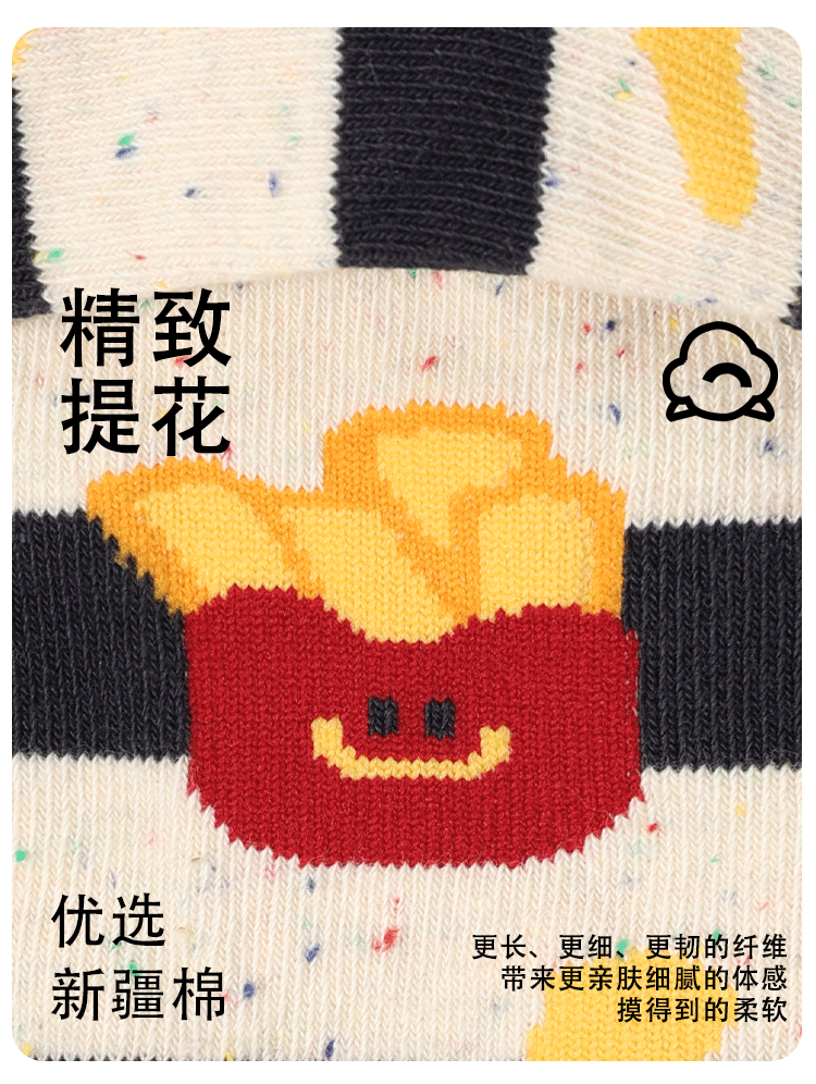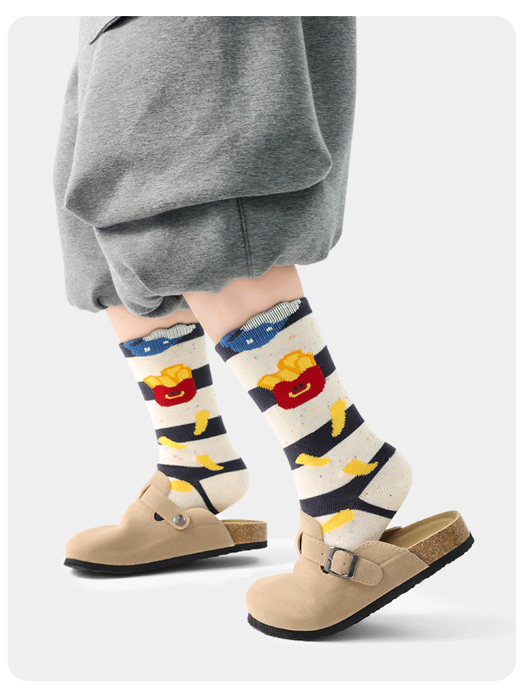 Youkeli Children's Socks Spring and Autumn Cartoon Cute Girls Baby Fashion Socks Winter Style Pure Cotton Deodorant and Sweat-Absorbent Boys Mid-Tube Socks Potato Burger Adventures 1-3 years old (S) Suitable for sizes 16-20