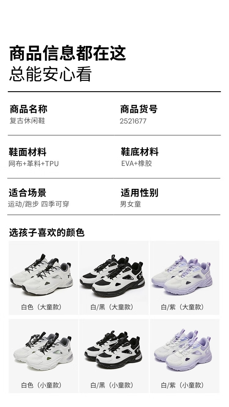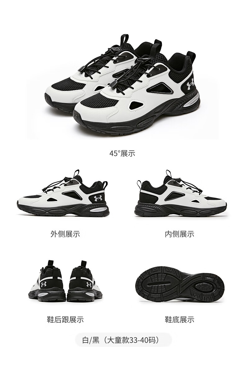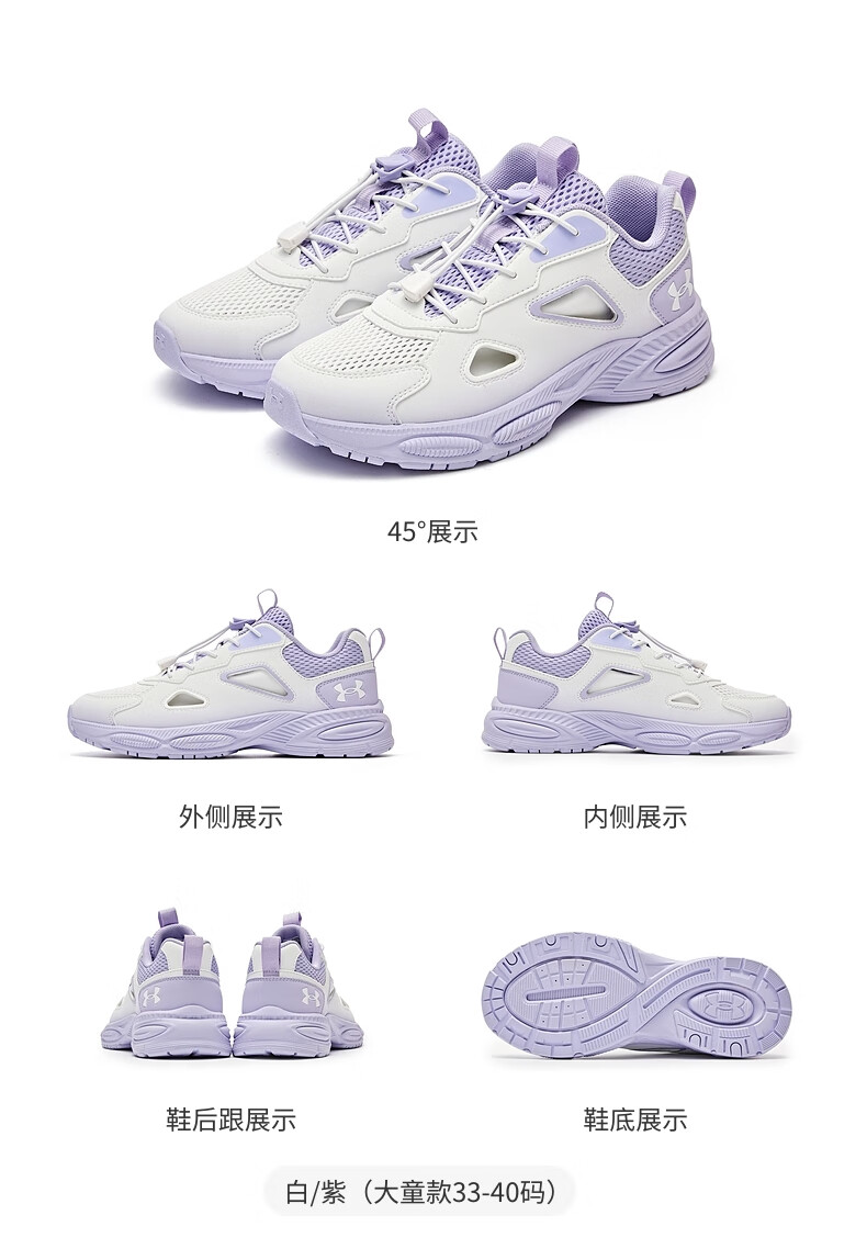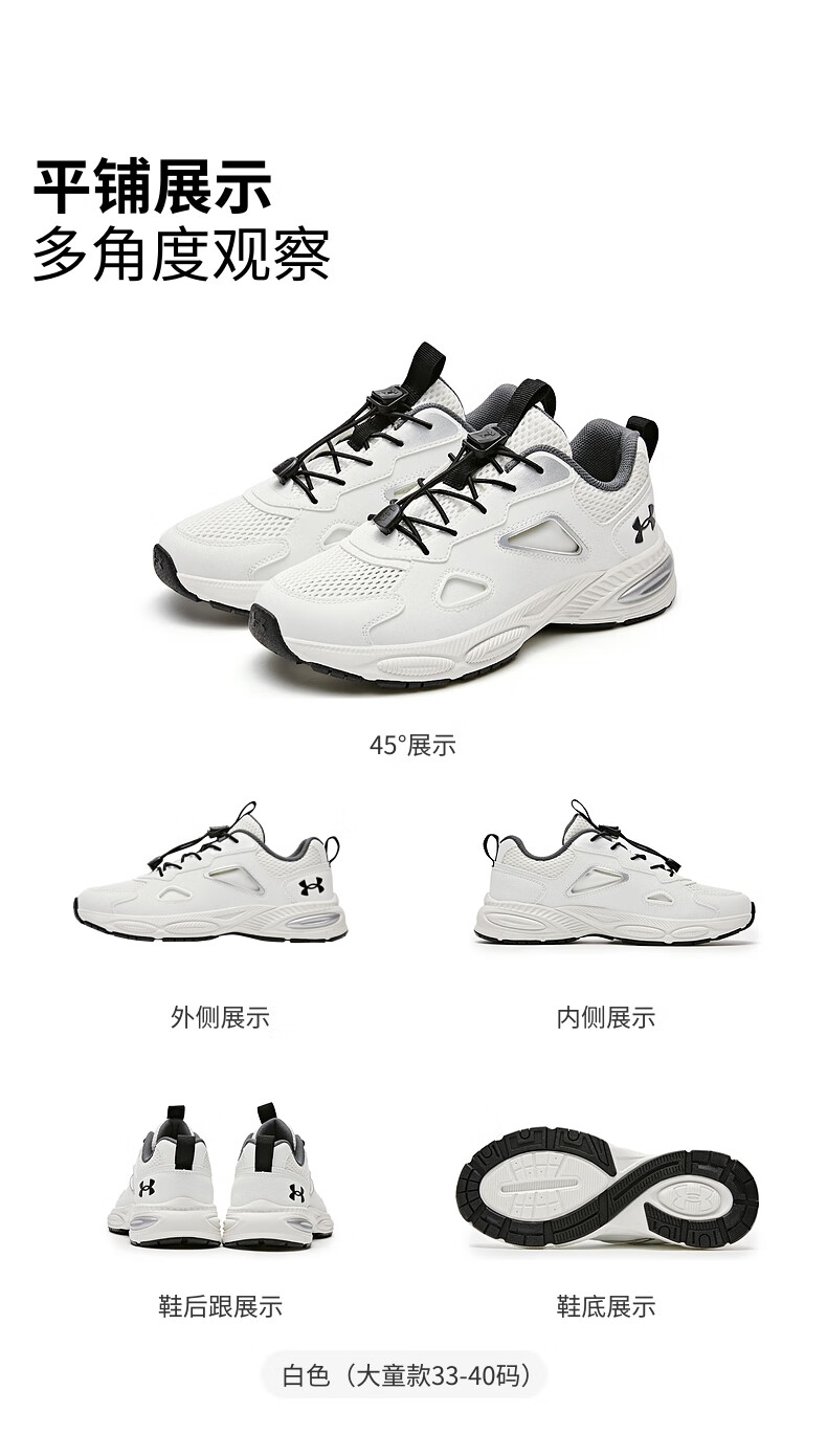 Under Armor Children's Retro Casual Shoes for Boys and Girls Summer Daily Casual Versatile Breathable Casual Sports Sandals 2521677 White 36 (Big Children)